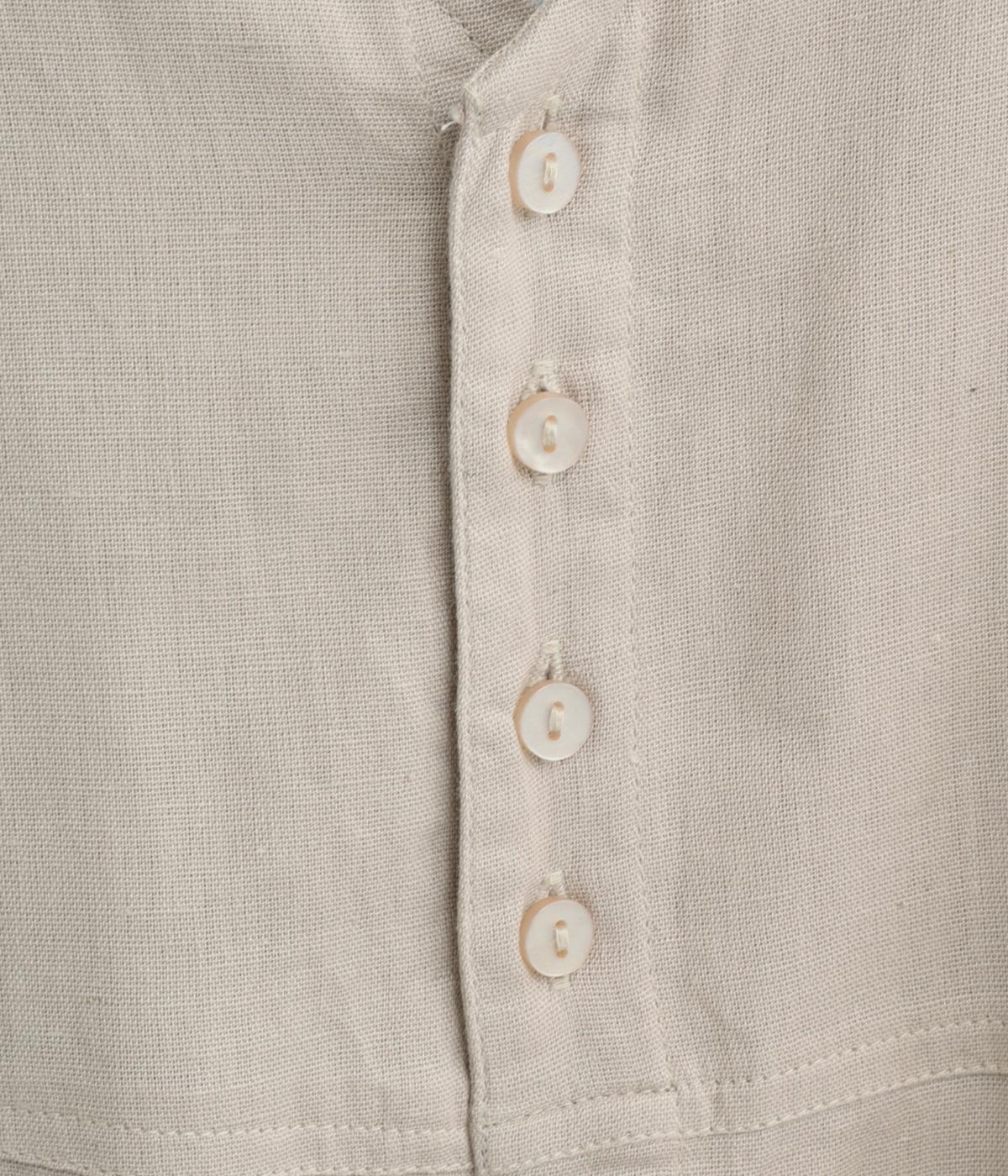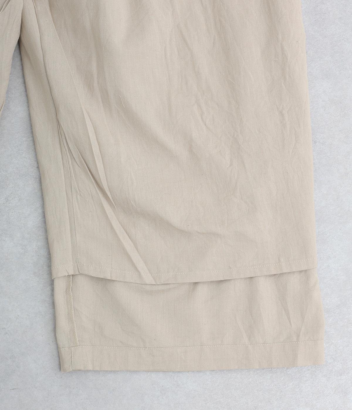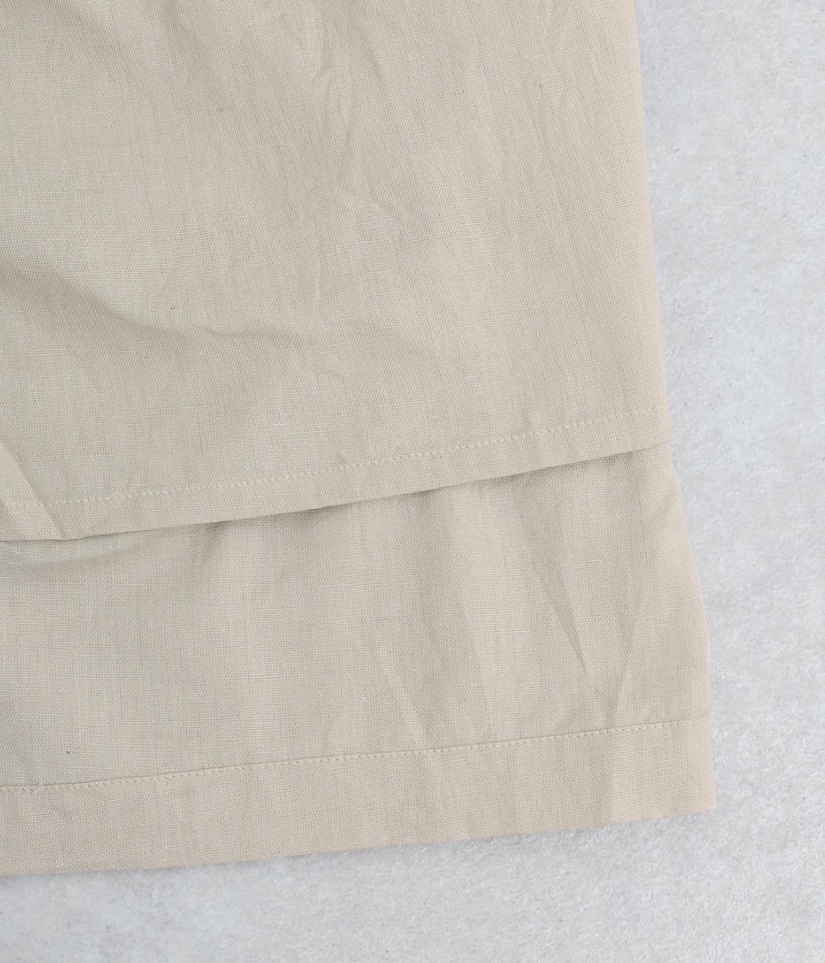 さらりと軽やかなコットンリネン生地です。麻を混紡することで、清涼感のあるドライな肌ざわりと通気性を備えました。空気を含んだような軽やかな質感が魅力です。