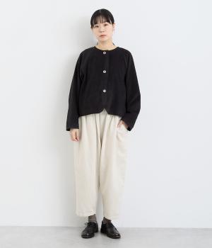 軽めのコーデュロイ素材は肌になじむようなやわらかさ。着込んでいくうちに質感の変化を楽しめるのもこの生地の魅力です。ニットとの相性がよく、日常使いのコーディネートにぴったり。