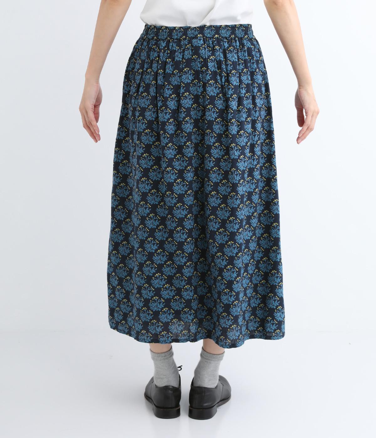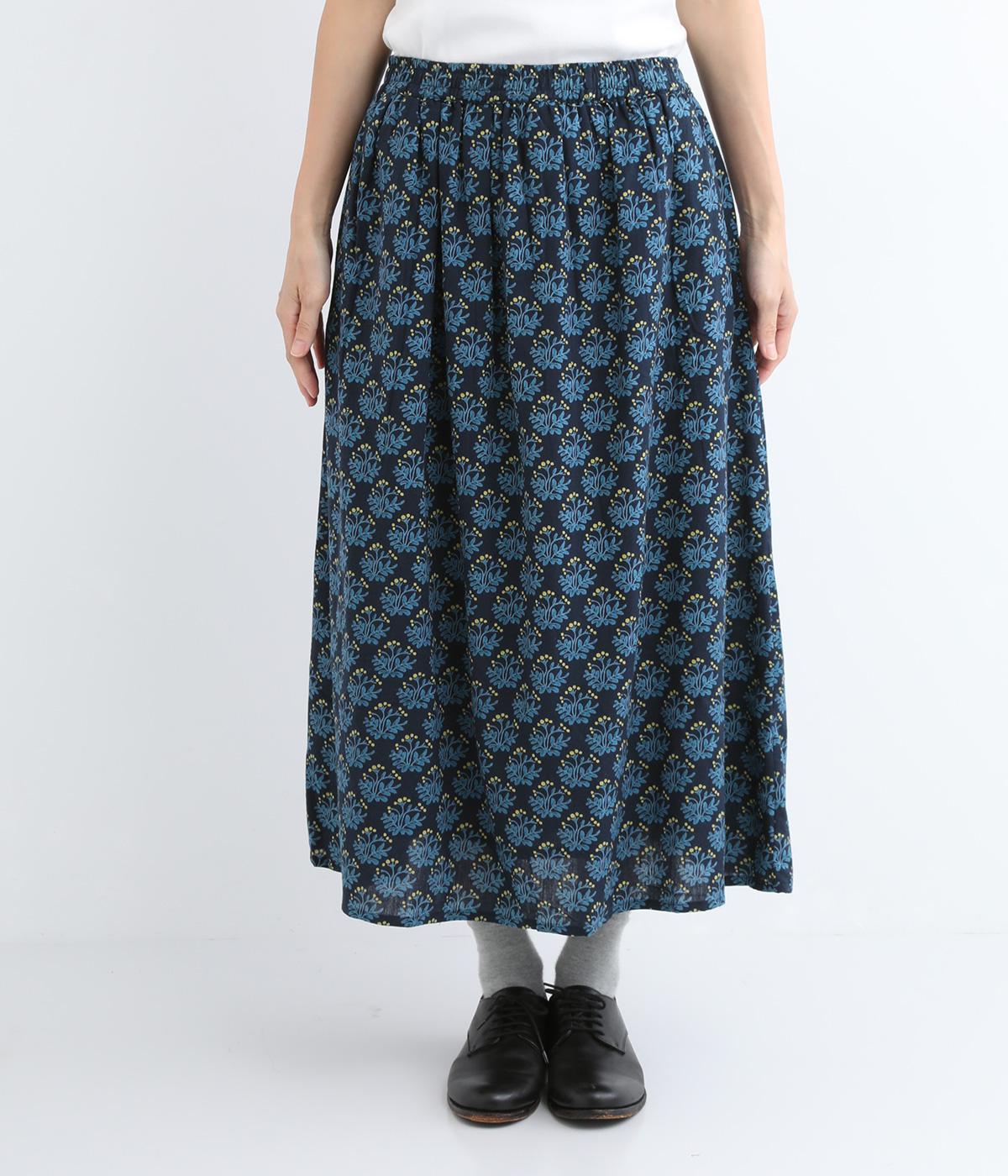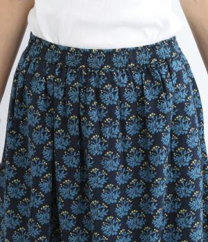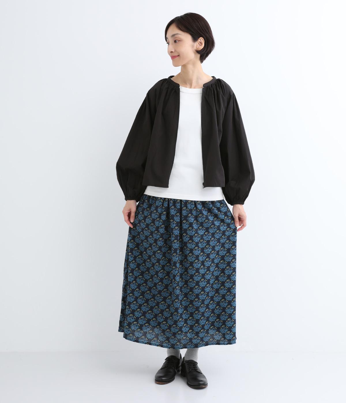 コットンのやわらかさは残しつつ、麻のシャリ感と清涼感をプラス。足さばきの良さをアップさせる軽やかな生地感です。小さな実が愛らしいチョークベリー柄をあしらっています。透け感をおさえる裏地つき。