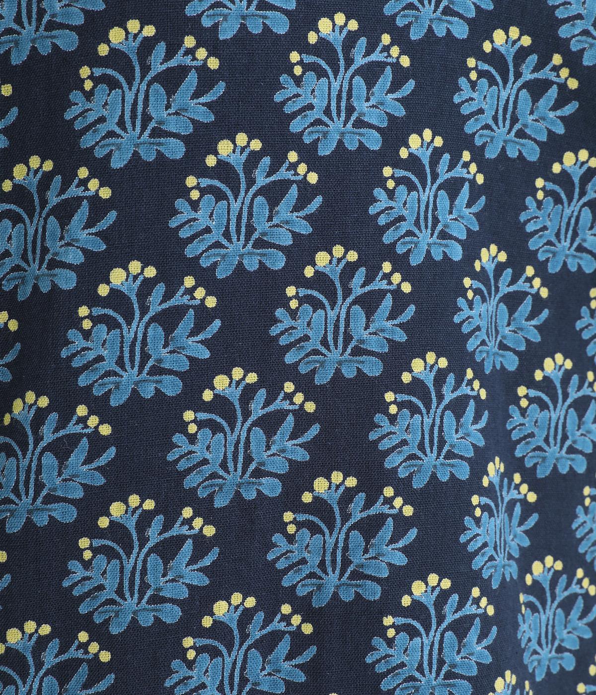 コットンのやわらかさは残しつつ、麻のシャリ感と清涼感をプラス。メイントップスにはもちろん、インナーとしても着まわしやすい薄手の生地です。小さな実が愛らしいチョークベリー柄をあしらっています。