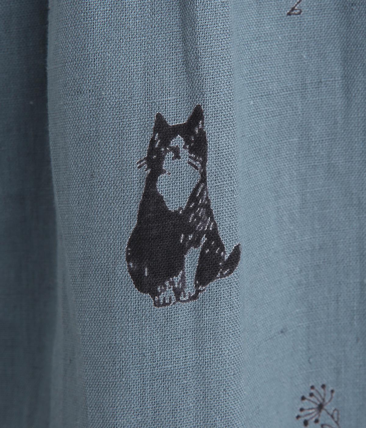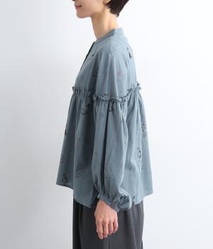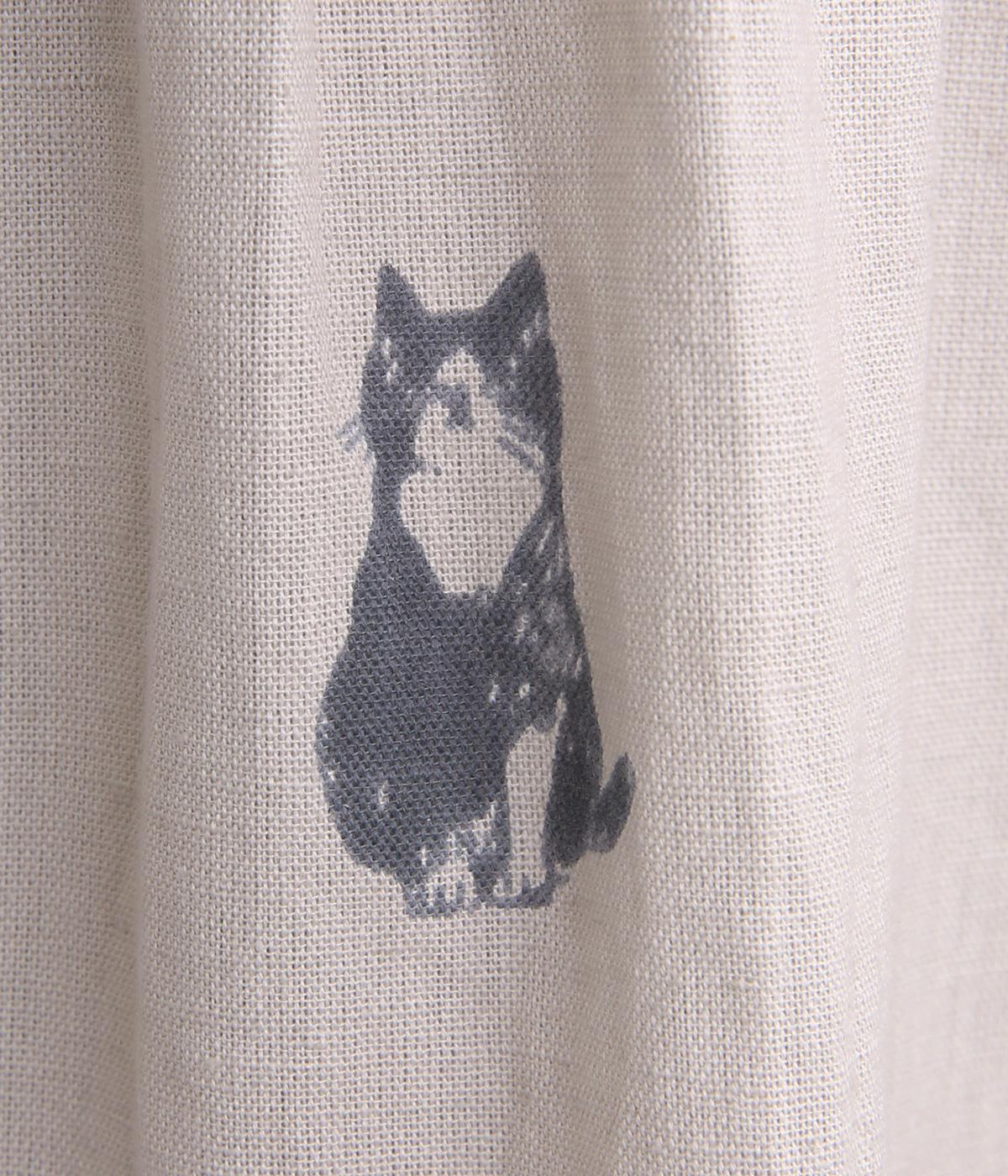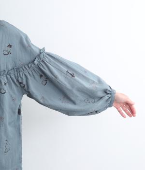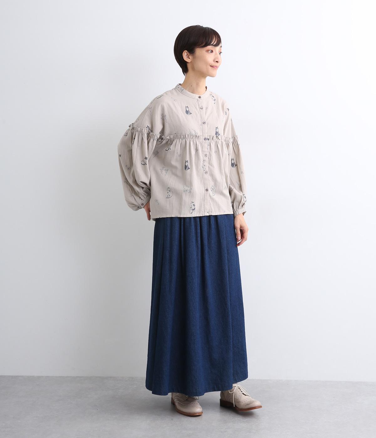 ネコとフラワーをモチーフにしたプリントが主役のブラウスです。ぐるりと一周フリルをあしらって、大人かわいいアクセントを加えています。ふんわりとしたボリューミーな袖もポイントに。