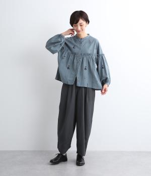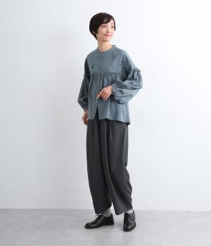 さらりとした、やさしい肌ざわりが特徴的なコットンリネン素材で仕立てました。ロングシーズン着まわせて、着るほどにやわらかくなじんでいくのも魅力です。
