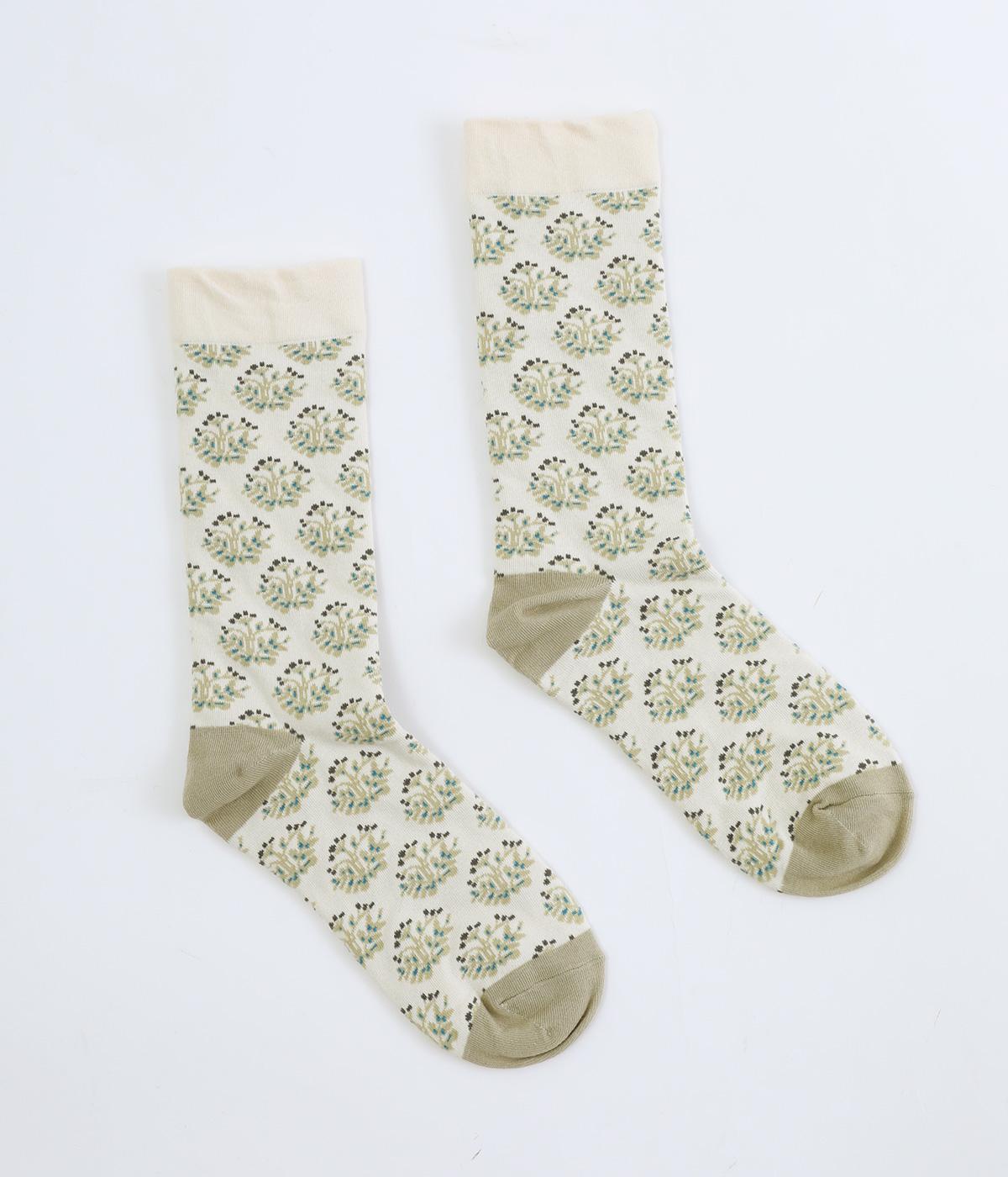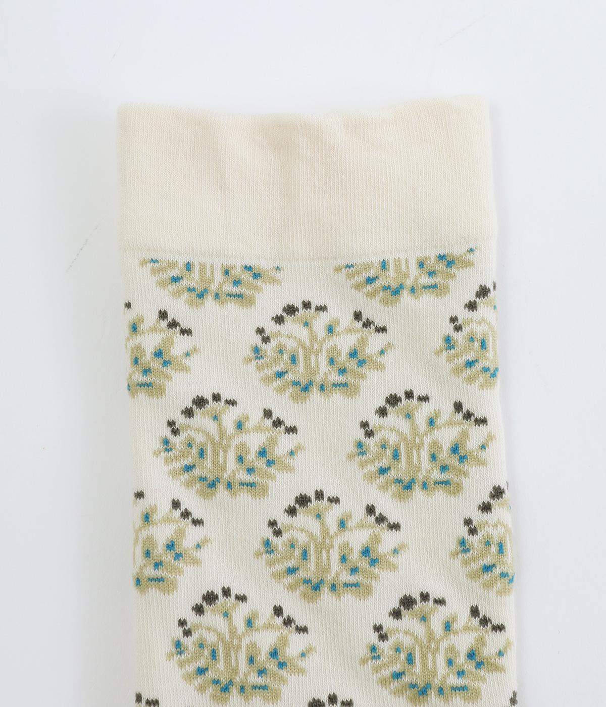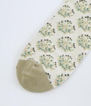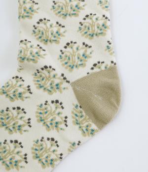 ブランドのオリジナル柄をあしらったソックス。小さな実が愛らしいチョークベリーをモチーフに、さまざまなコーディネートになじみやすいよう色使いをおさえて柔らかなムードに仕上げています。
