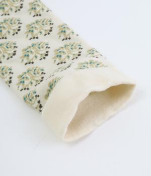 さらりとした滑らかな表面感と、心地よくフィットする伸びの良さが魅力のコットンブレンド素材。肌に当たる裏面は柄の部分にふっくらとした起毛感があります。