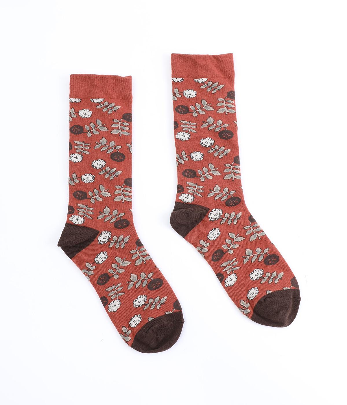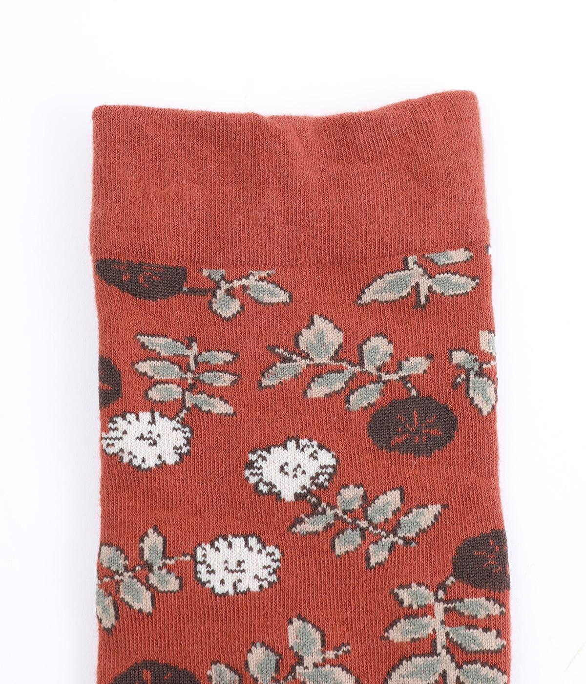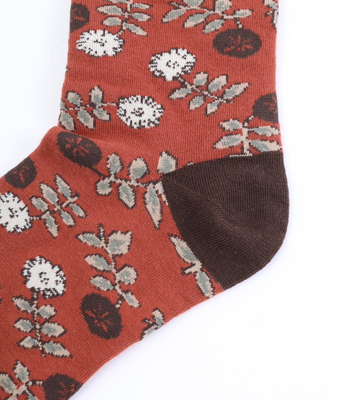 お花のイラストを規則的に回転させてできた、ブランドのオリジナル柄をあしらったソックスです。丸みのある愛らしいお花と大人っぽいカラーリングが好バランス。コーディネートの差し色にぴったりです。