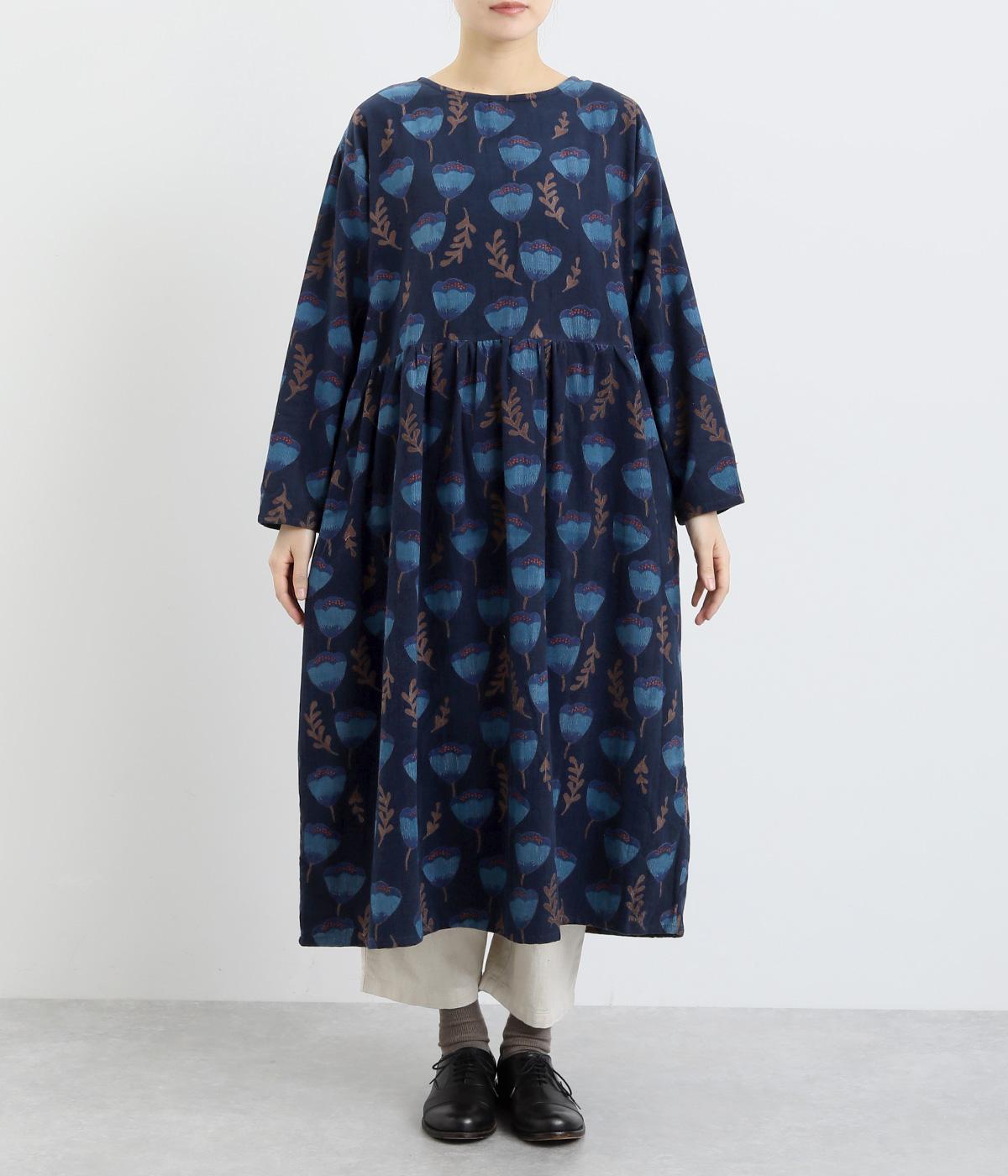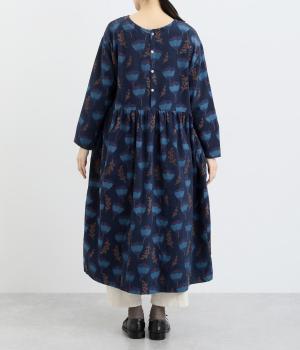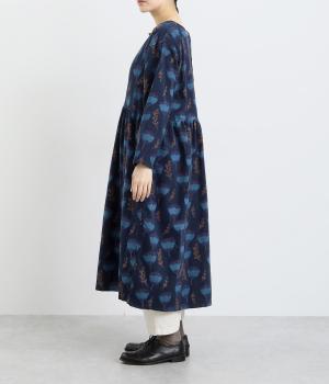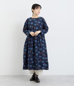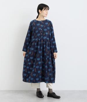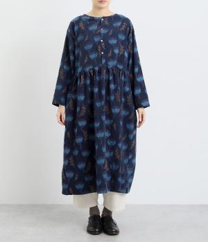 シンプルなプルオーバーとしても、ボタン開きのデザインでも、前後2wayで着まわせるワンピースです。ウエストにはギャザーを施し、ふんわりとしたシルエットに仕上げました。ハイネックのインナーをのぞかせたり、下にボトムをはいたりと、レイヤードのアレンジも楽しめます。