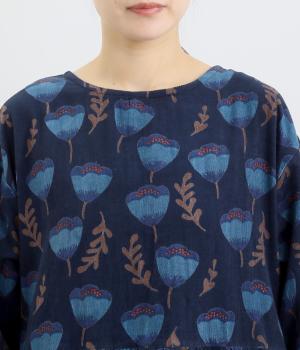なめらかな肌あたりと、快適な質感が特徴。ベルフラワーの模様がスイートな雰囲気をプラスしています。軽量かつしっかりとした編み地が上品で、着心地の良さも抜群です。