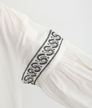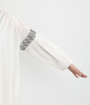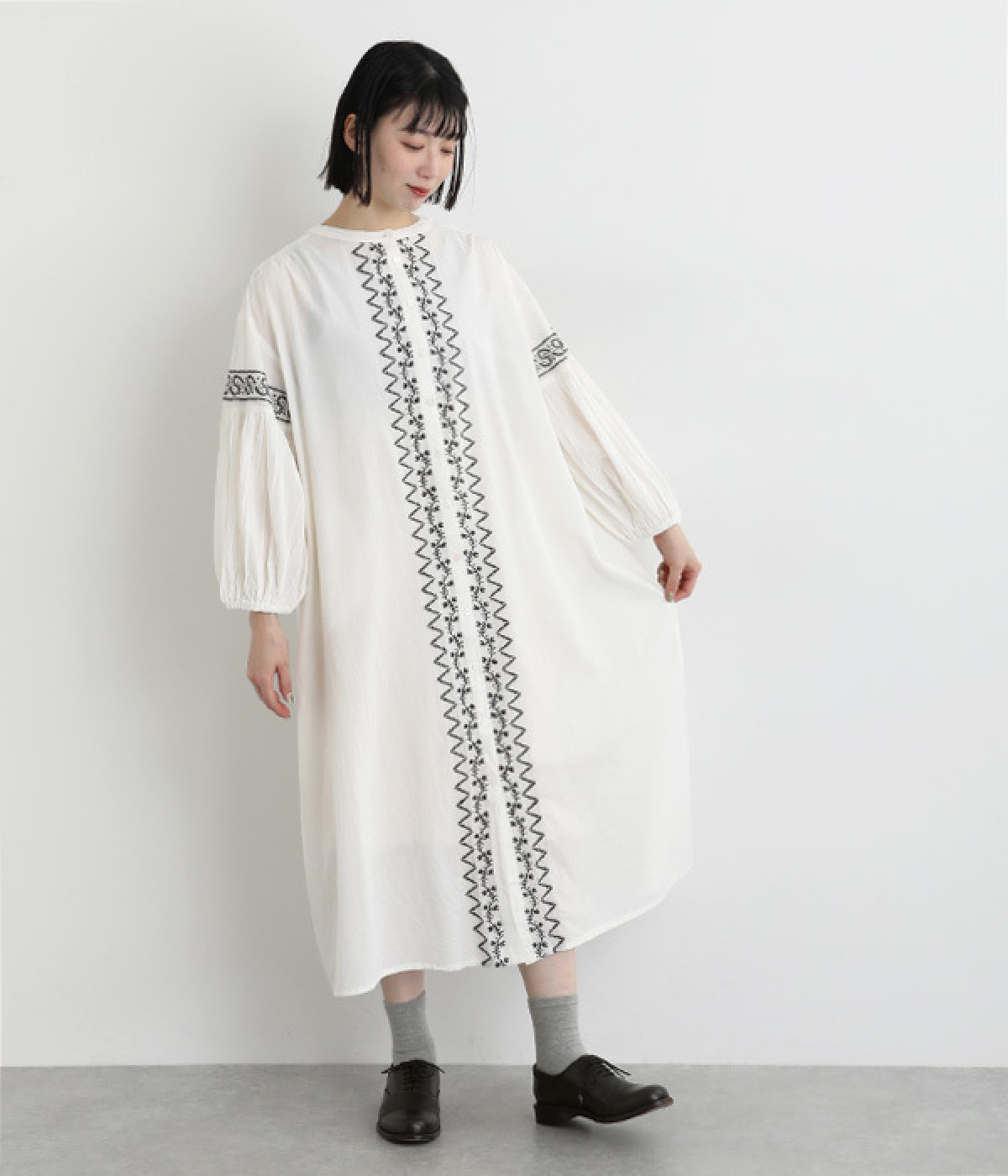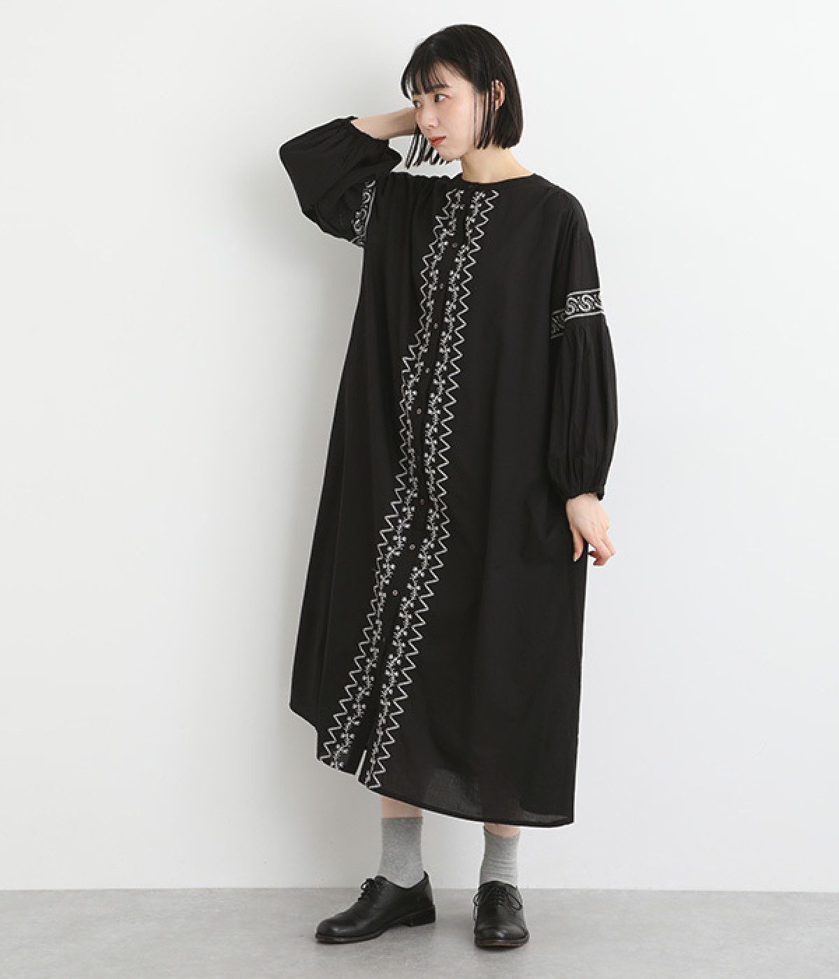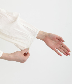 ボックスシルエット&ボリューム袖がラフでこなれた雰囲気に