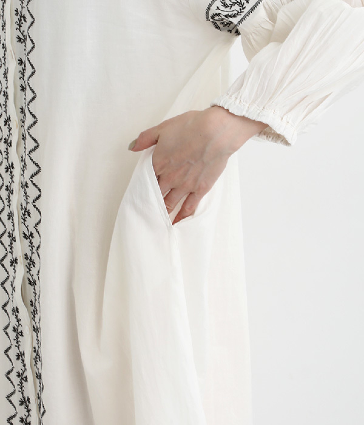 前立てに沿って刺しゅうを施すことでタテラインを意識