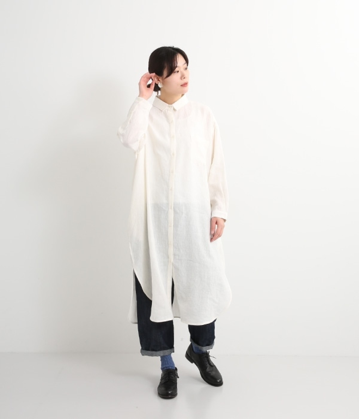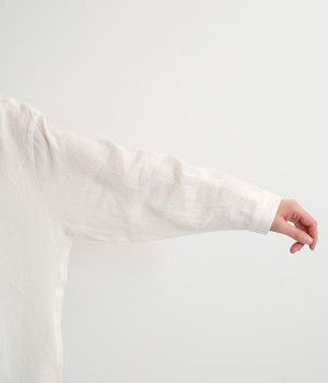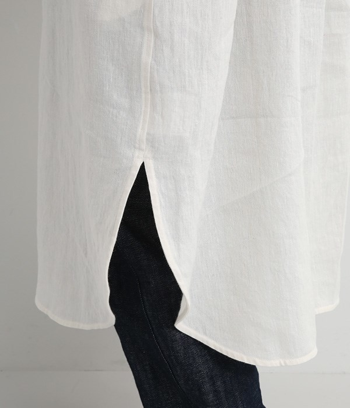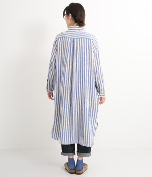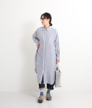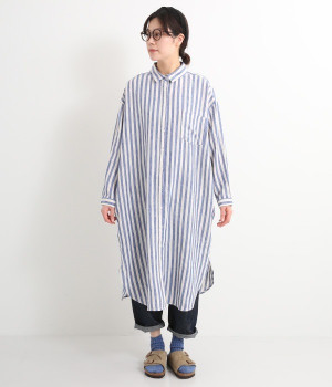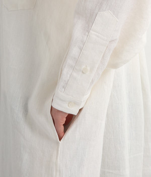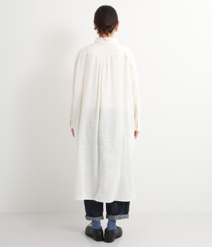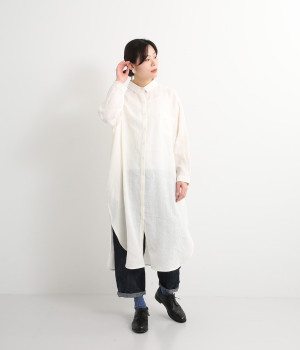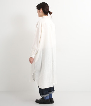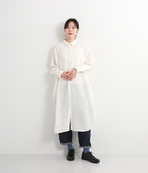 さらっとした肌触りが心地よい麻素材のシャツワンピースです。ポイントは身幅をたっぷりととったシルエットに、ラウンドさせたヘムライン。パンツも合わせやすく、こなれたカジュアルスタイルが決まります。やや長めの丈ですがサイドスリットを深めに入れているため足さばきもスムーズです。