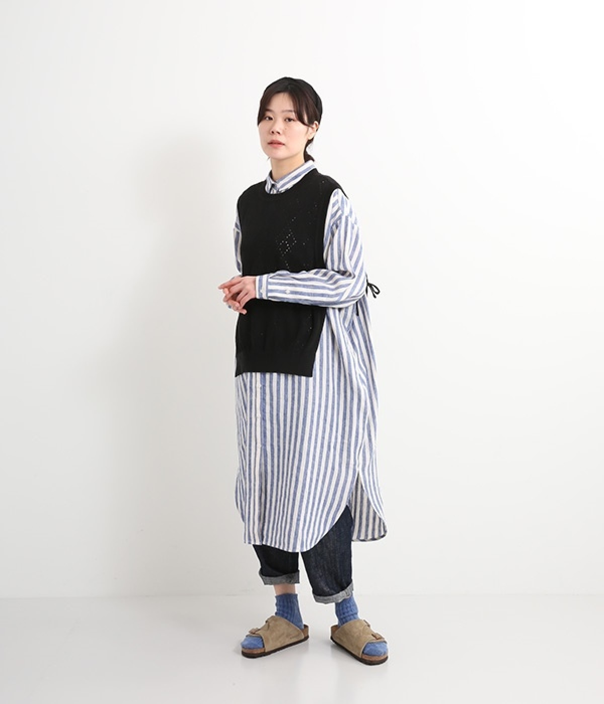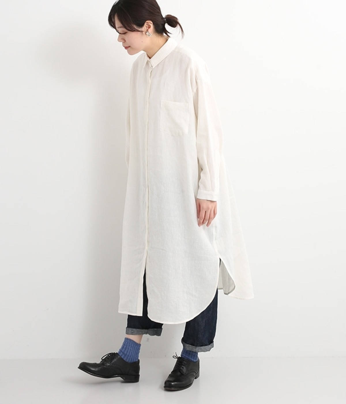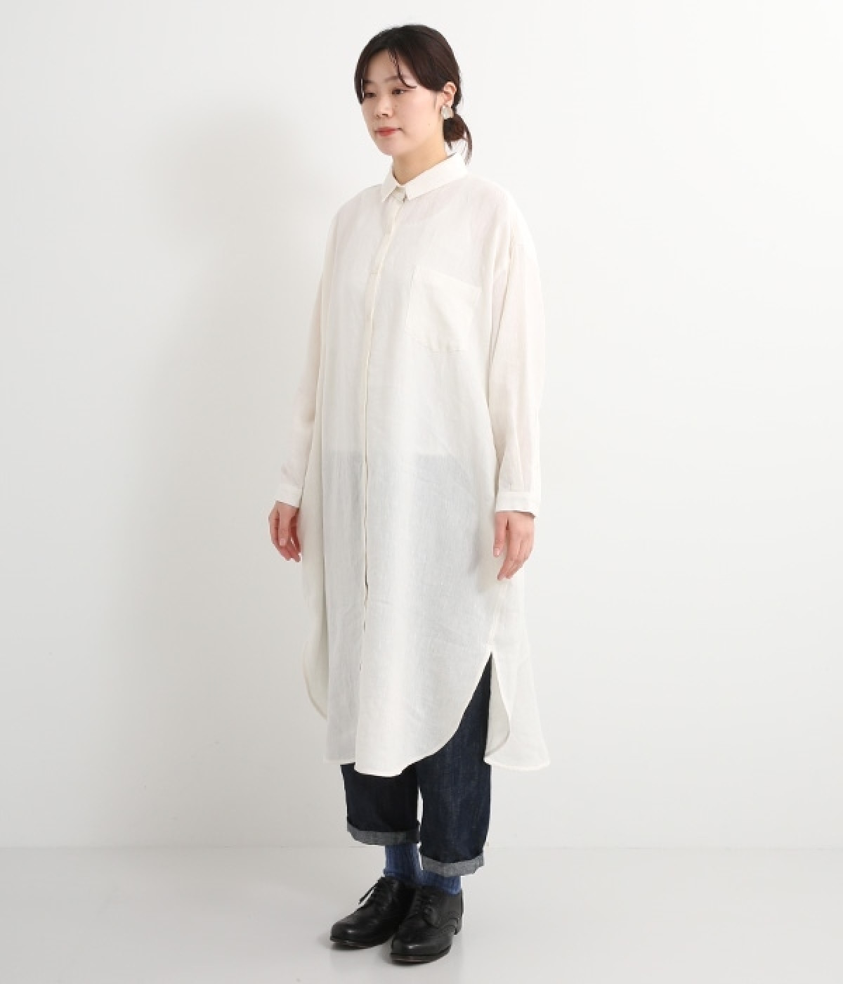 さらっとした肌触りが心地よい麻素材のシャツワンピースです。ポイントは身幅をたっぷりととったシルエットに、ラウンドさせたヘムライン。パンツも合わせやすく、こなれたカジュアルスタイルが決まります。やや長めの丈ですがサイドスリットを深めに入れているため足さばきもスムーズです。