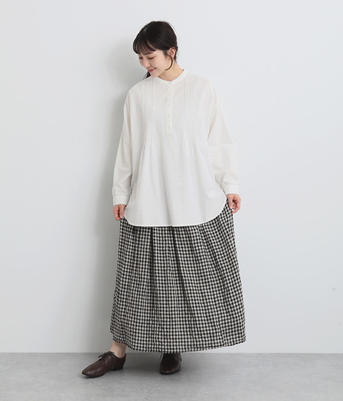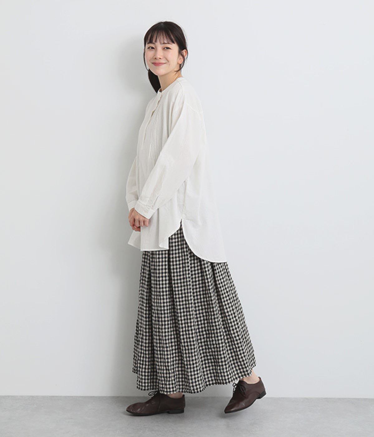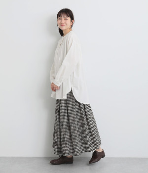体のラインを拾いにくい、裾に向かってふんわり広がるシルエット