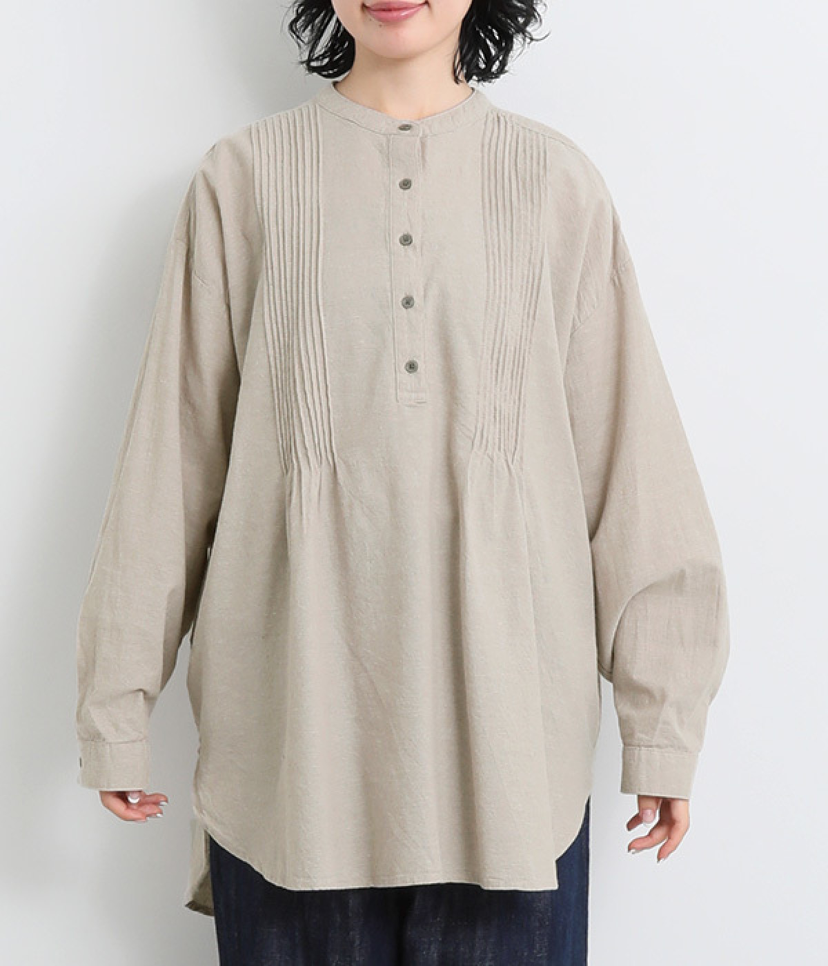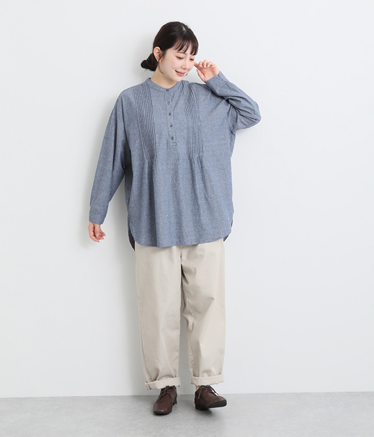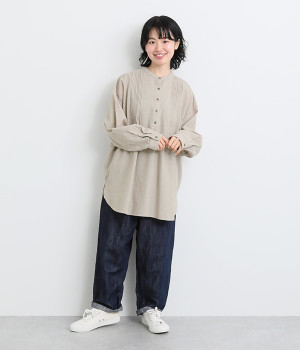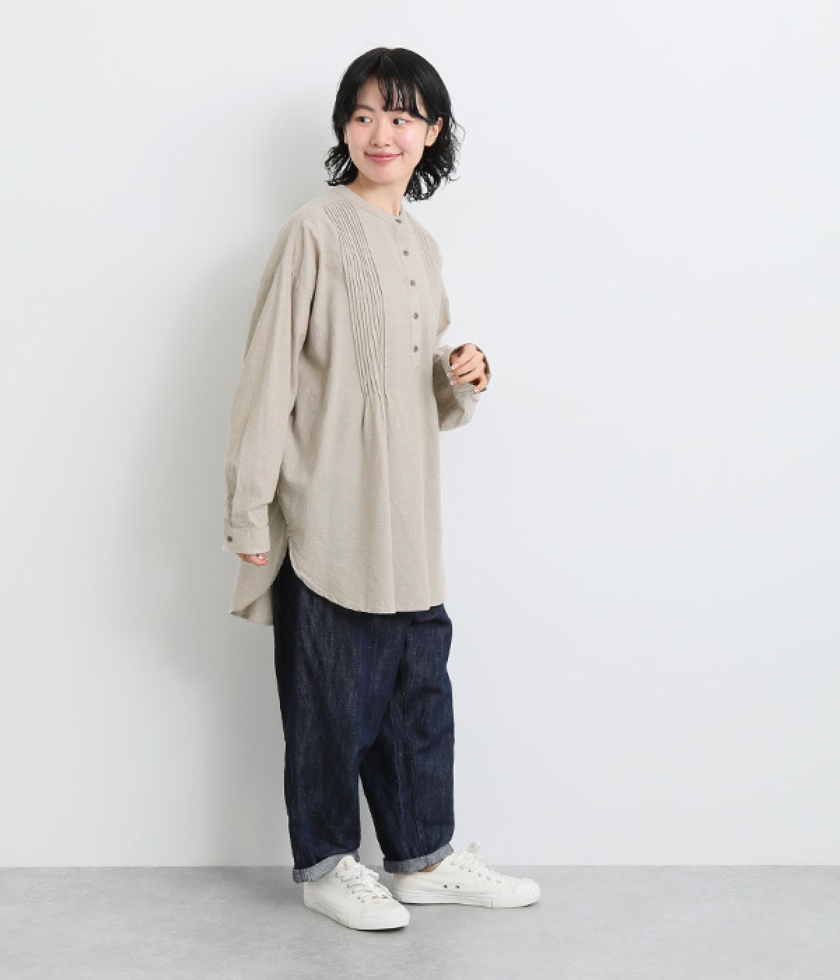 着こなしをやさしい印象にまとめるナチュラルな風合い