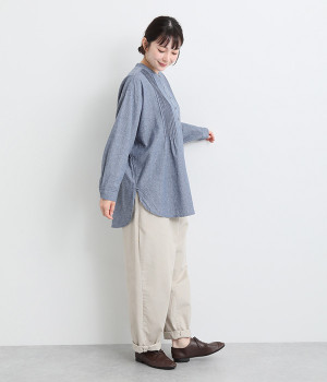 前後差をつけたラウンドヘムでボトム合わせもイージーに