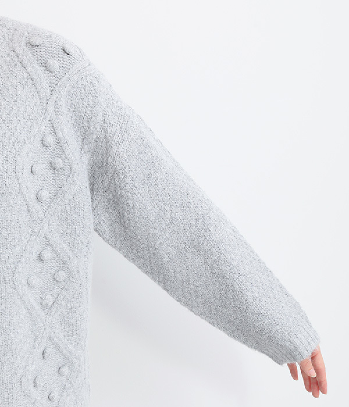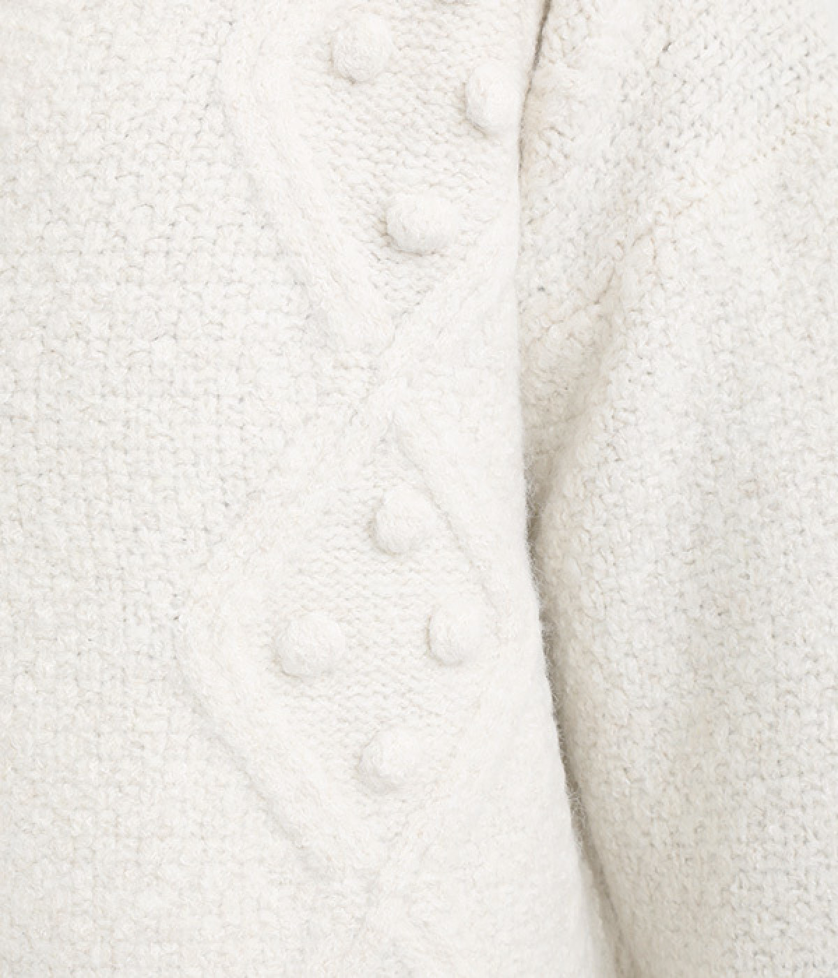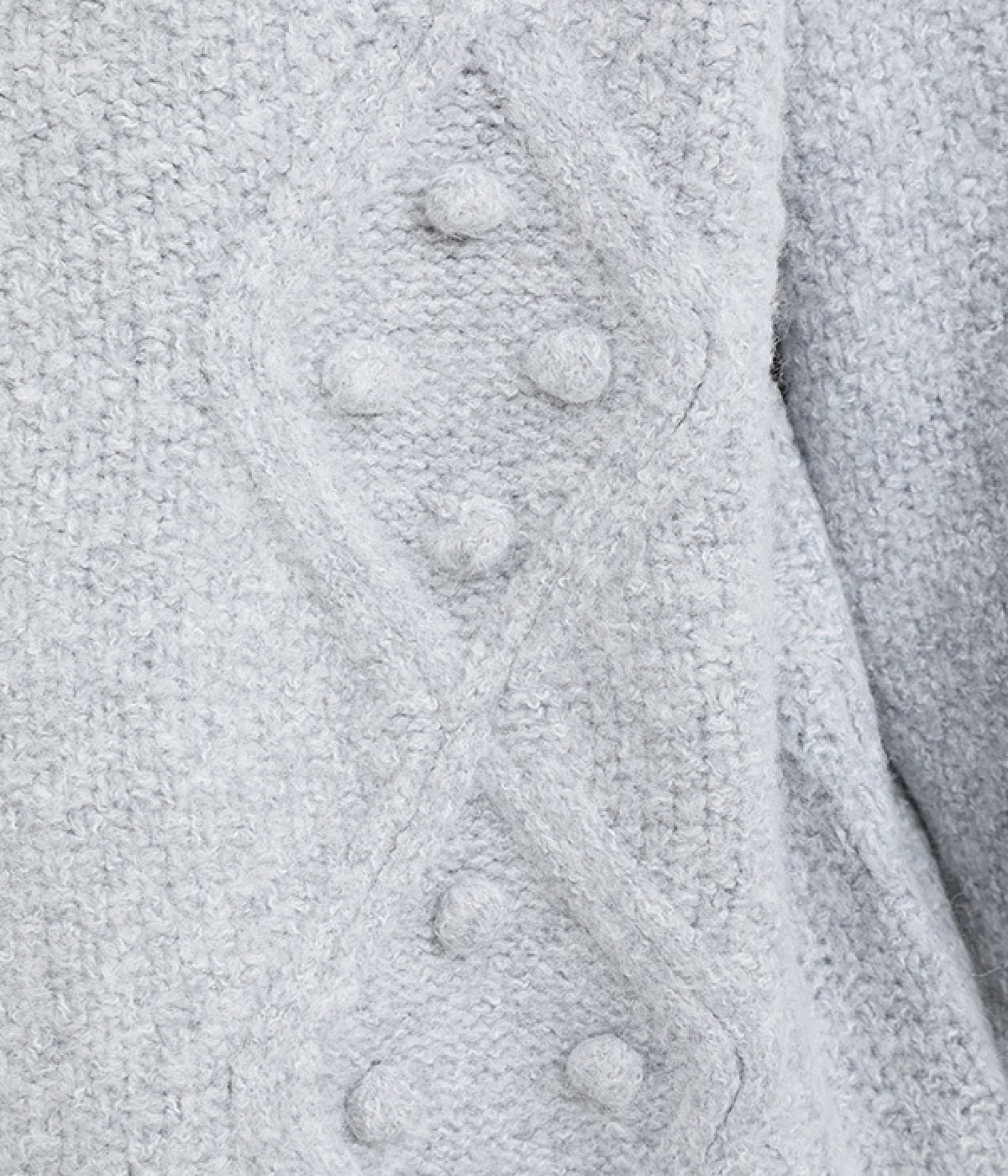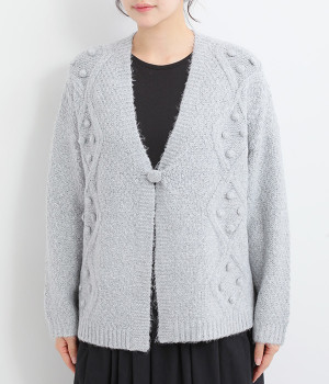 ダイヤ編みの内側にあしらったポンポンがポイント