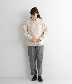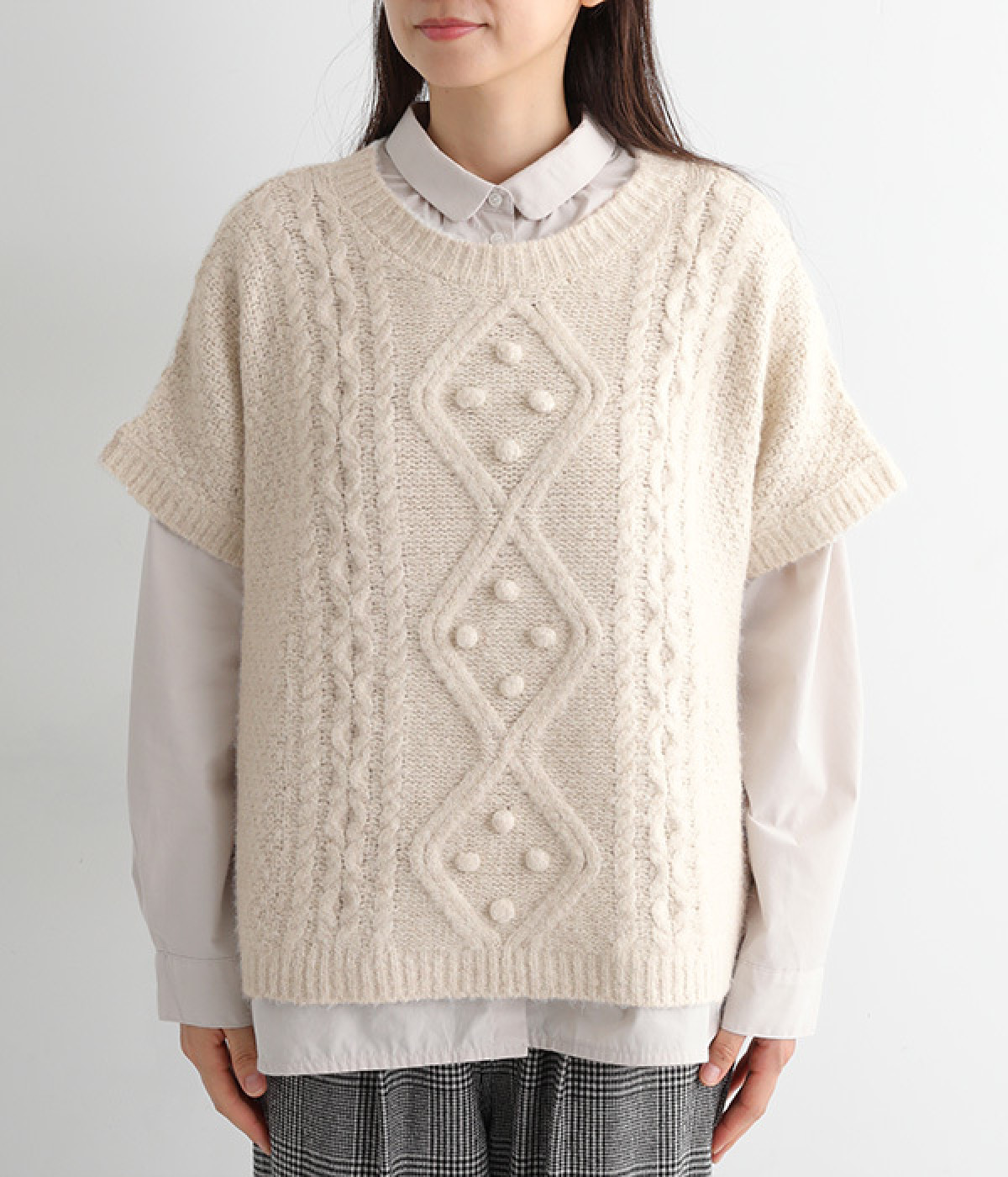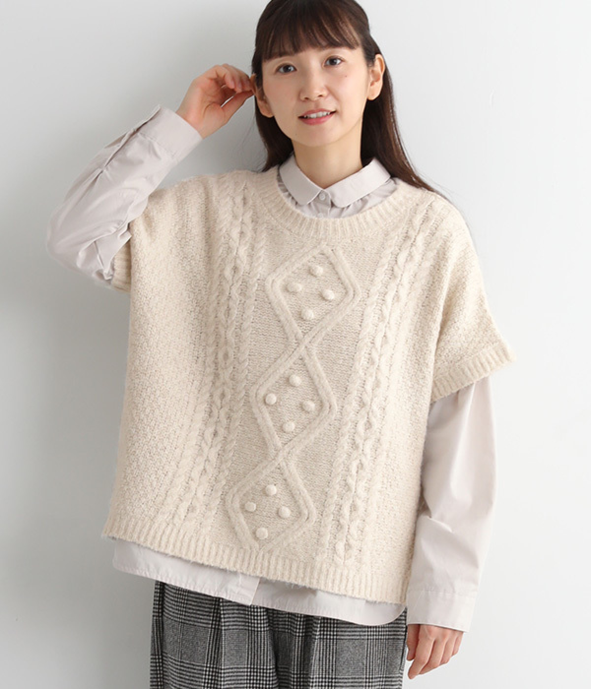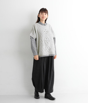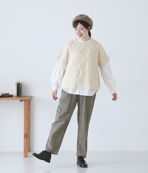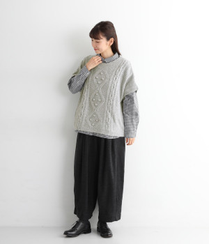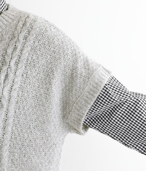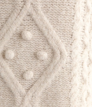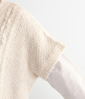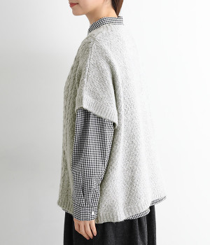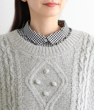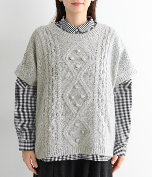 フロントのぽこぽこ立体編みが季節感をアピール