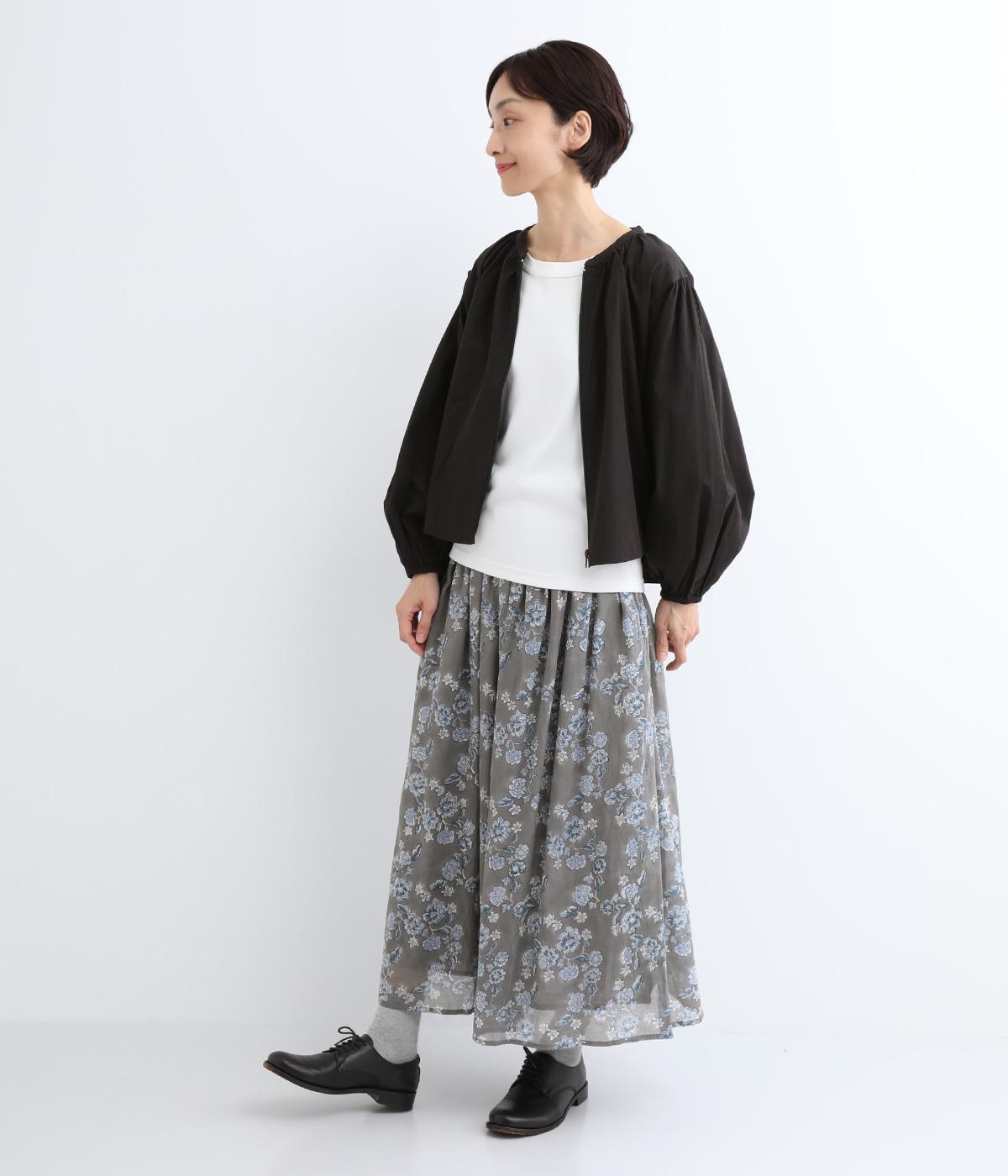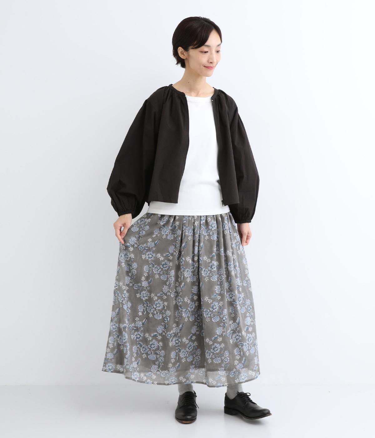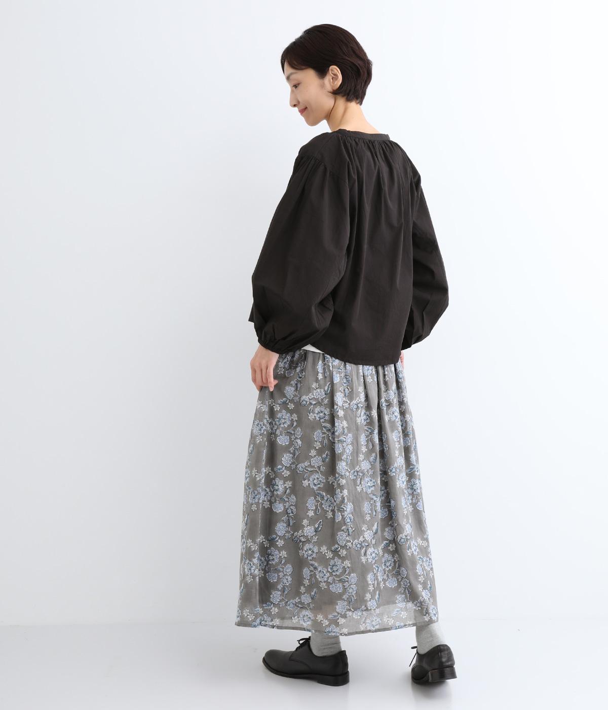 総ゴム仕様のウエストから広がるギャザーとドレープが美しいスカート。やわらかく落ちる生地がボリューム感と甘さをおさえてくれます。動きや風によって軽やかに揺れる生地感が素敵。サイドにはデザインを邪魔しないポケットを配しています。