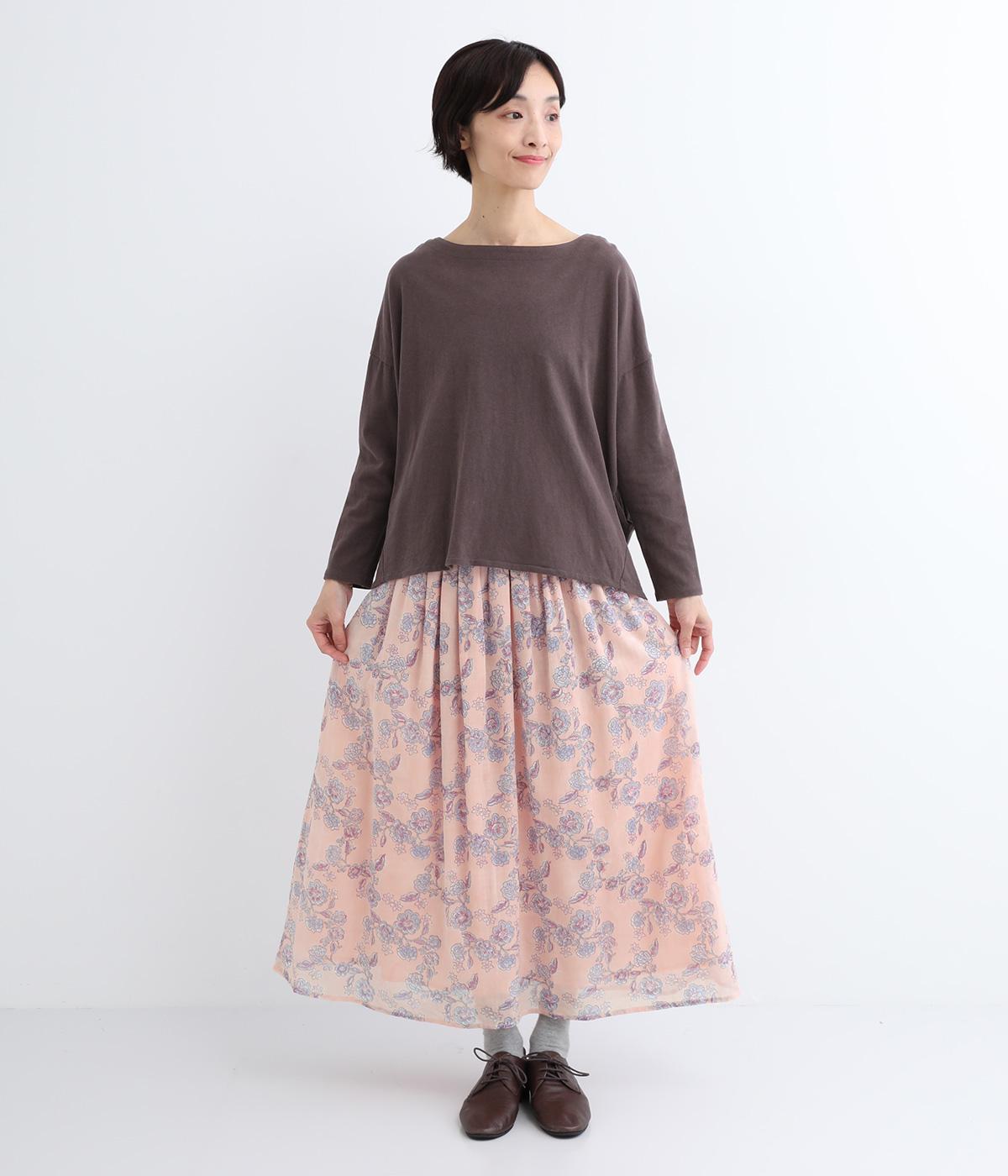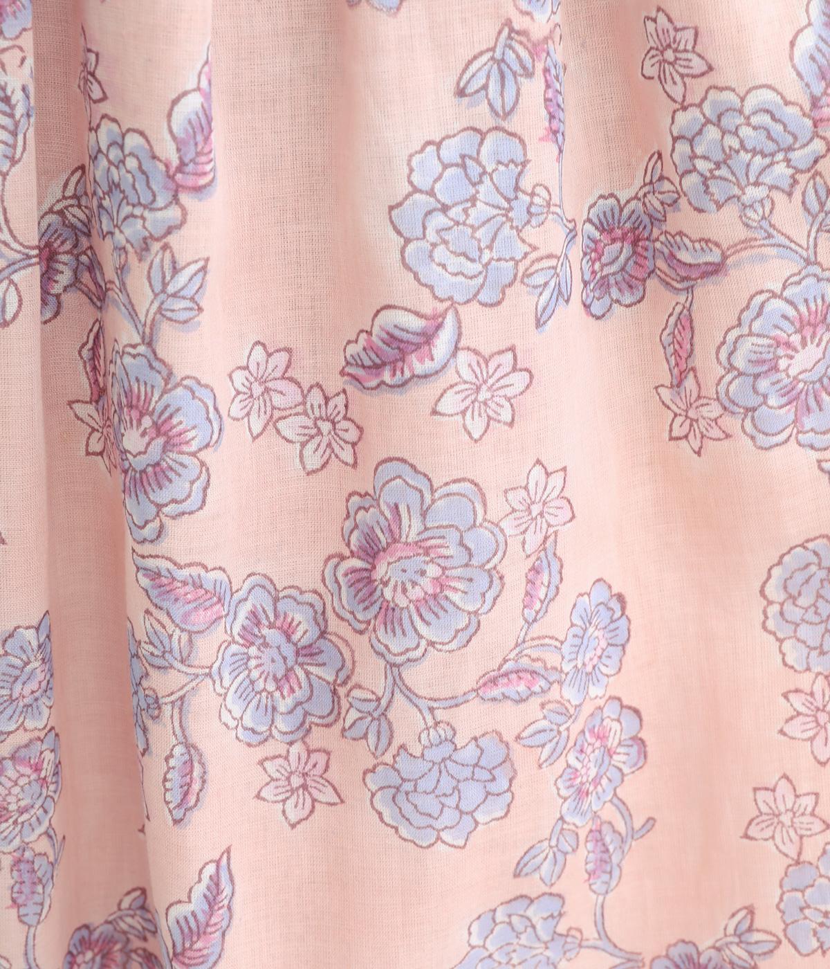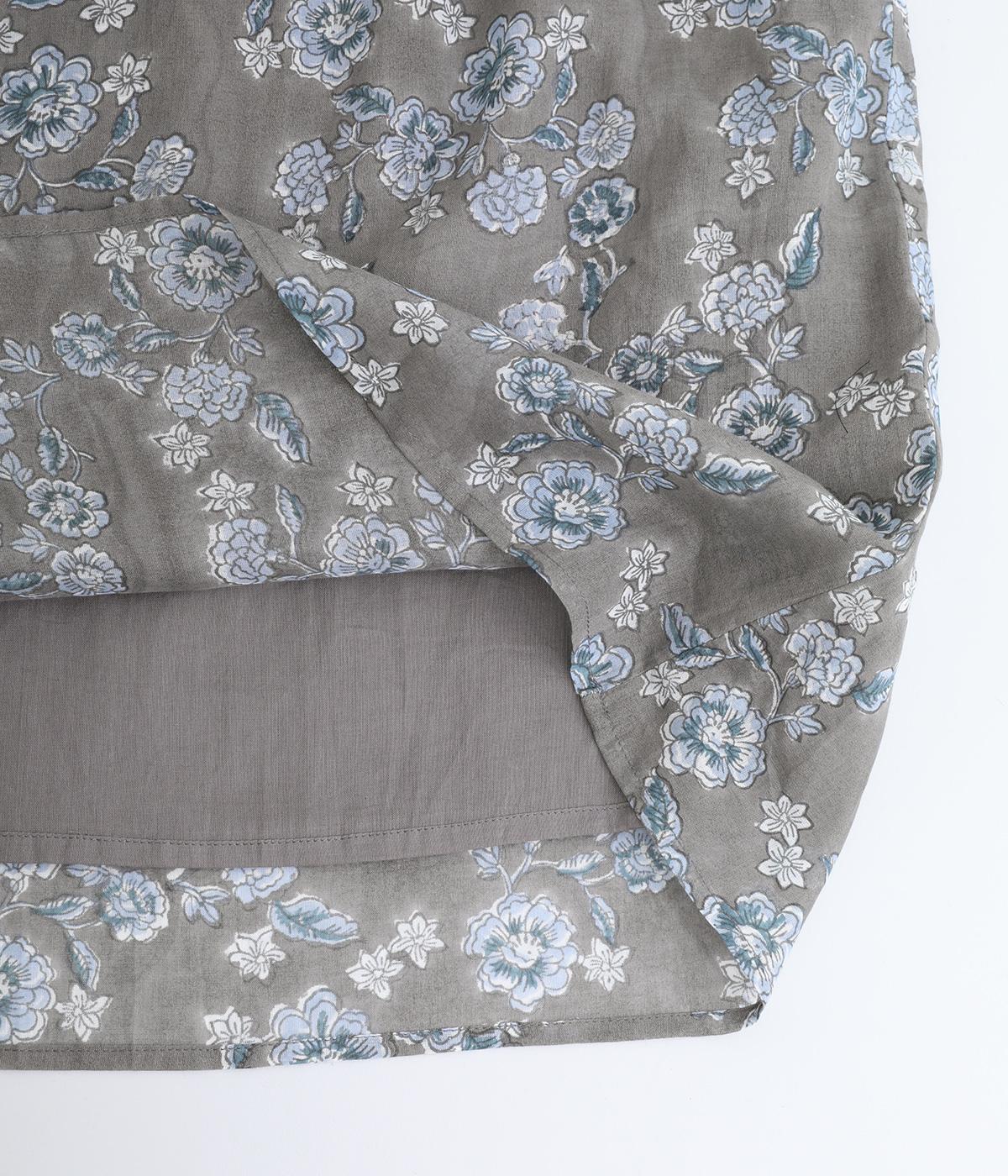 女性らしいシアー感をたのしめる軽やかなコットン生地です。インド伝統の技法を使用した職人さんの手作業によるブロックプリントに注目を。かすれや色ムラなど、ひとつとして同じもののない味わい深さが魅力です。透け感をおさえる裏地つき。