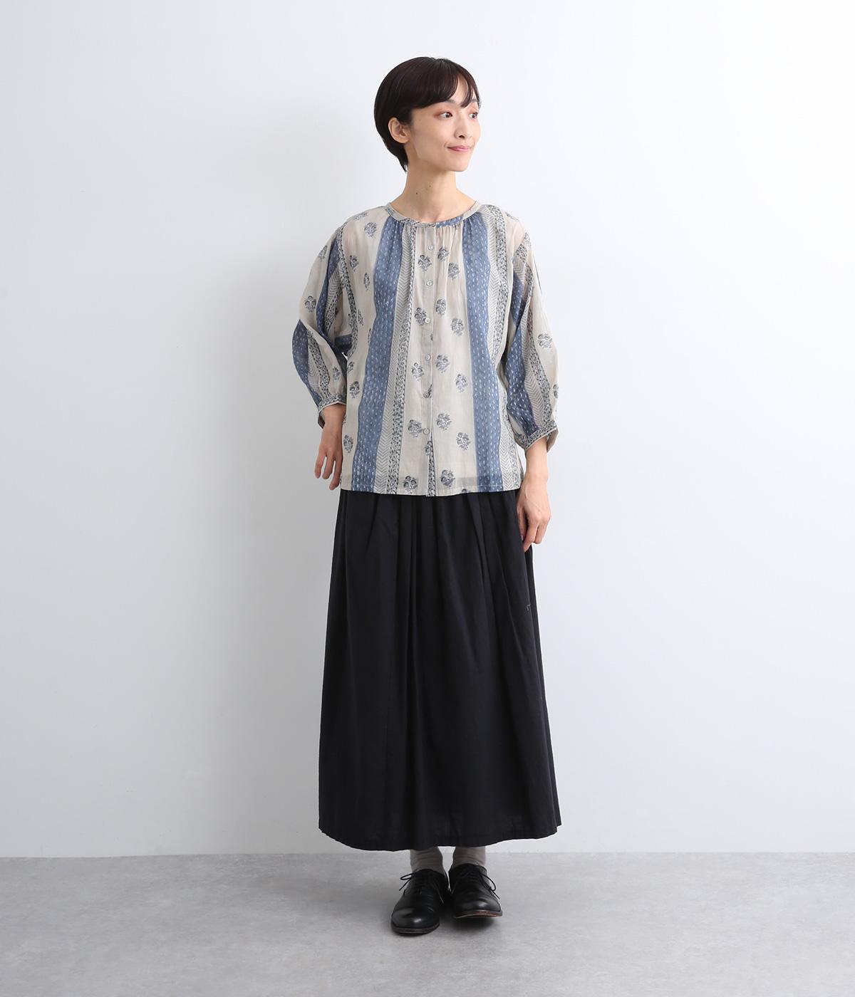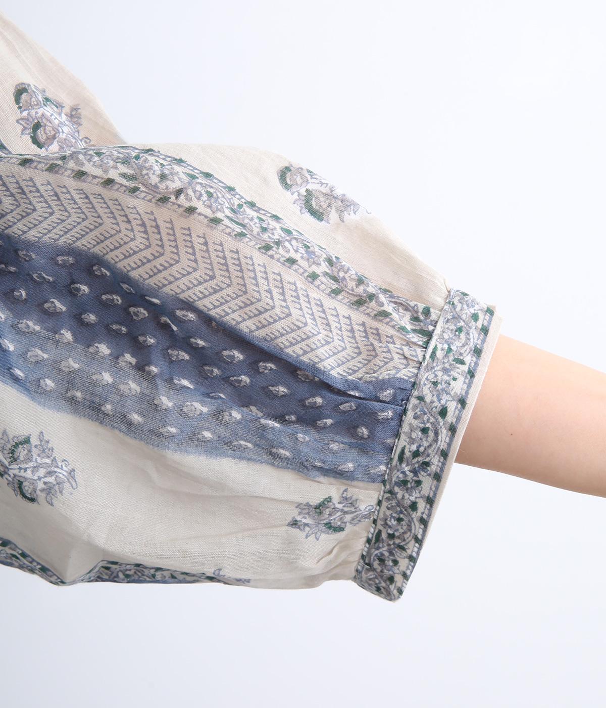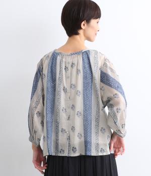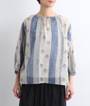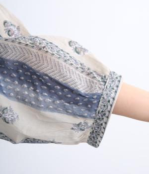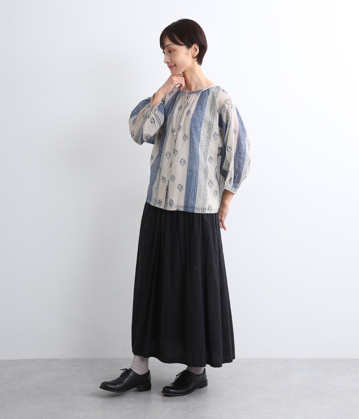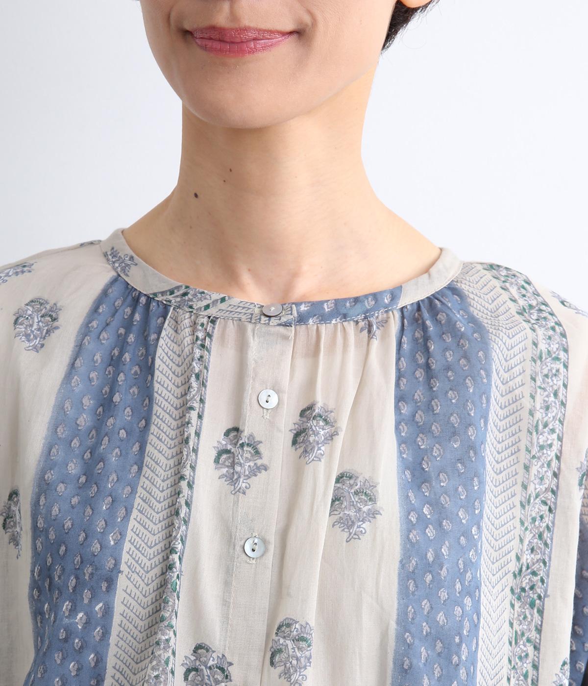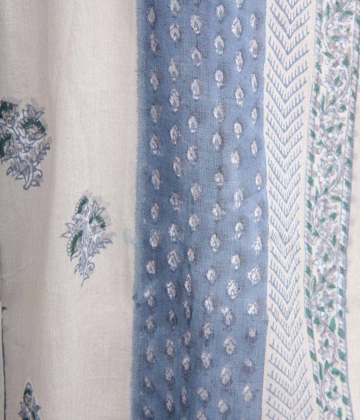 シアー感のある薄手のコットン素材。一つ一つ丁寧に手作業でおこなっている、インド伝統技法のブロックプリントを用いています。