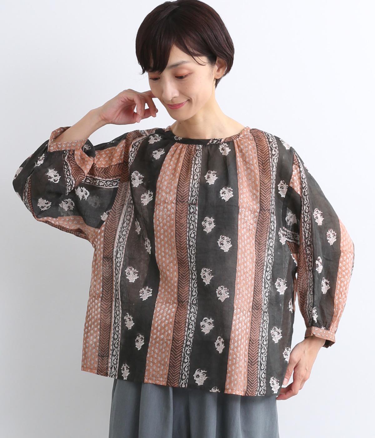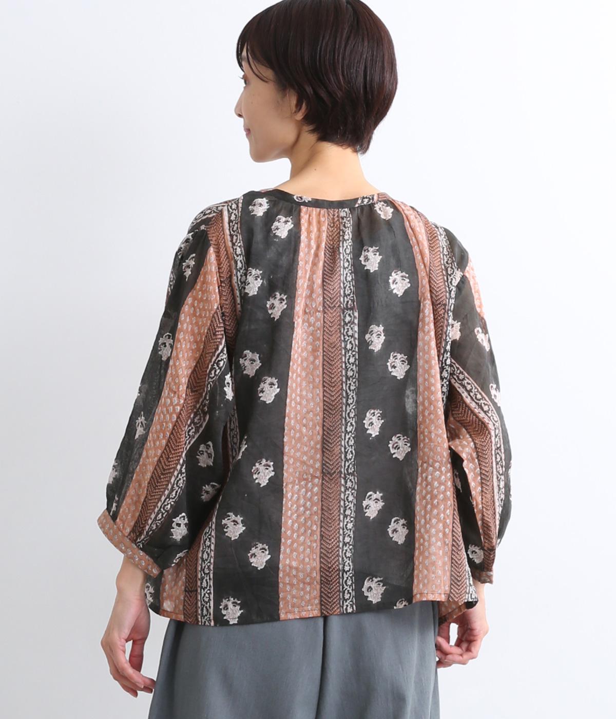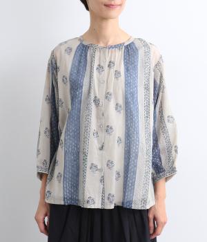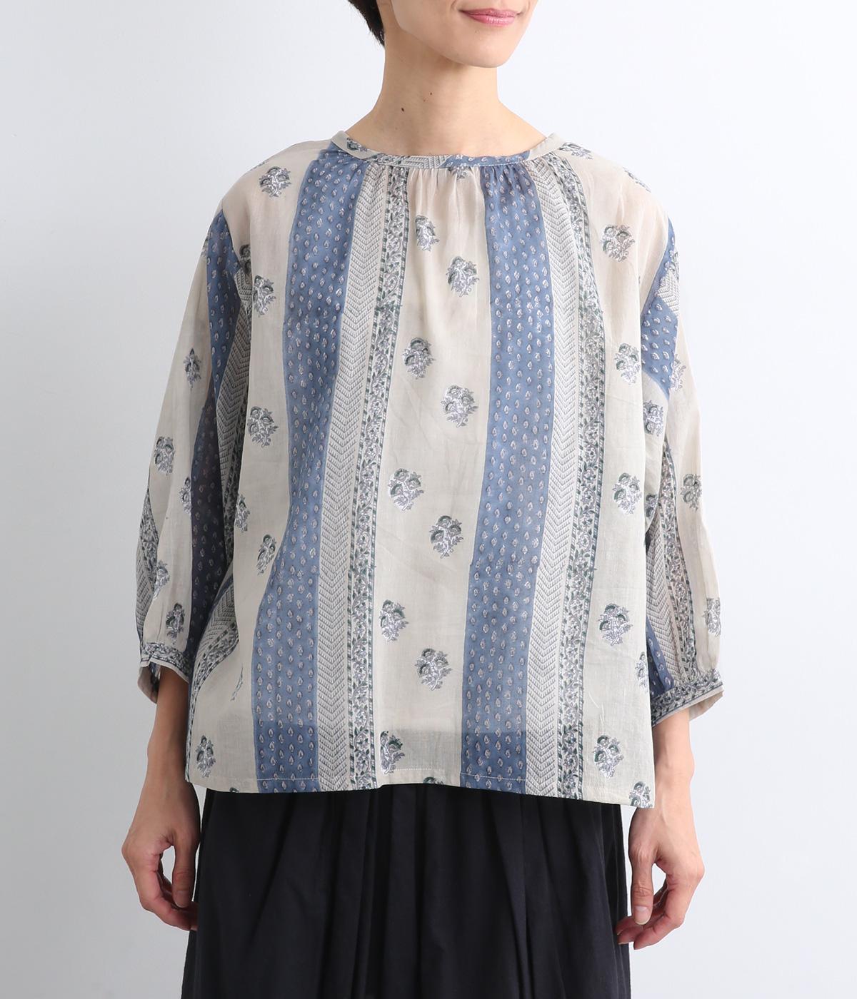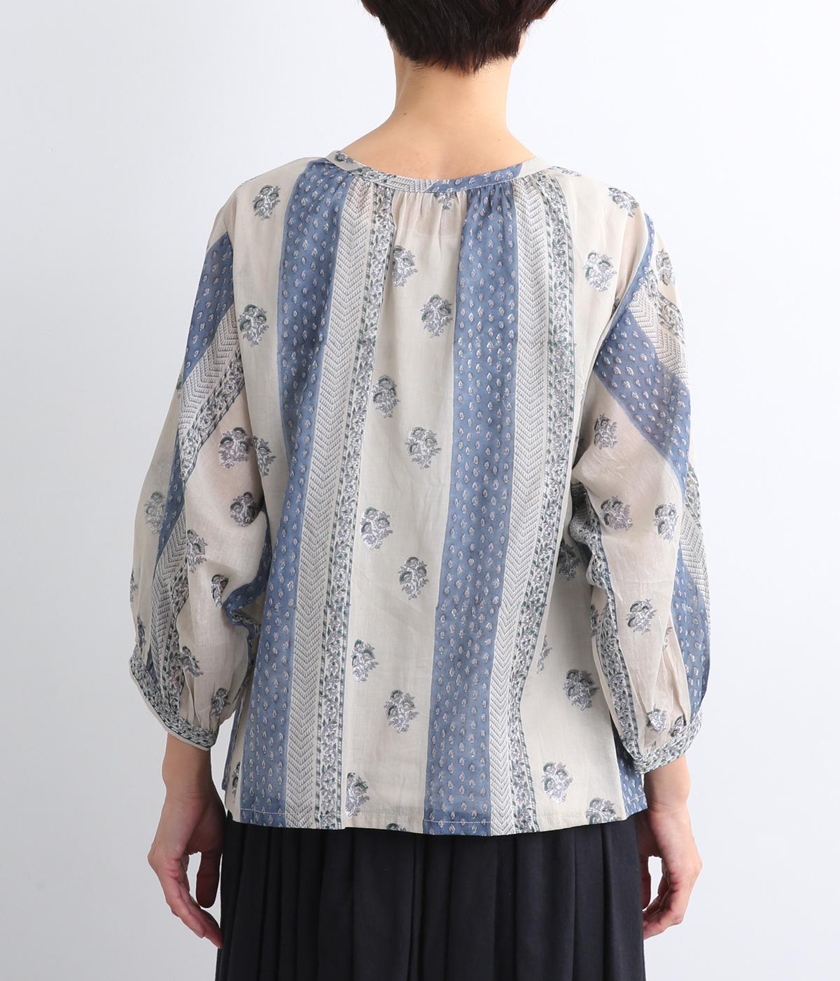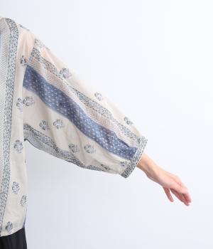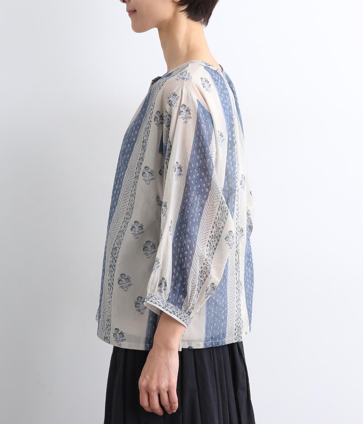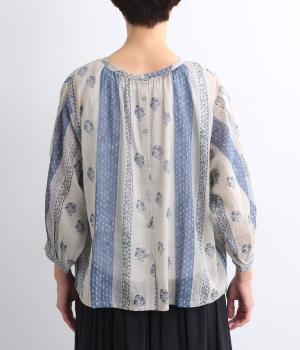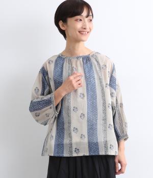 シアー感のある薄手のコットン素材。一つ一つ丁寧に手作業でおこなっている、インド伝統技法のブロックプリントを用いています。