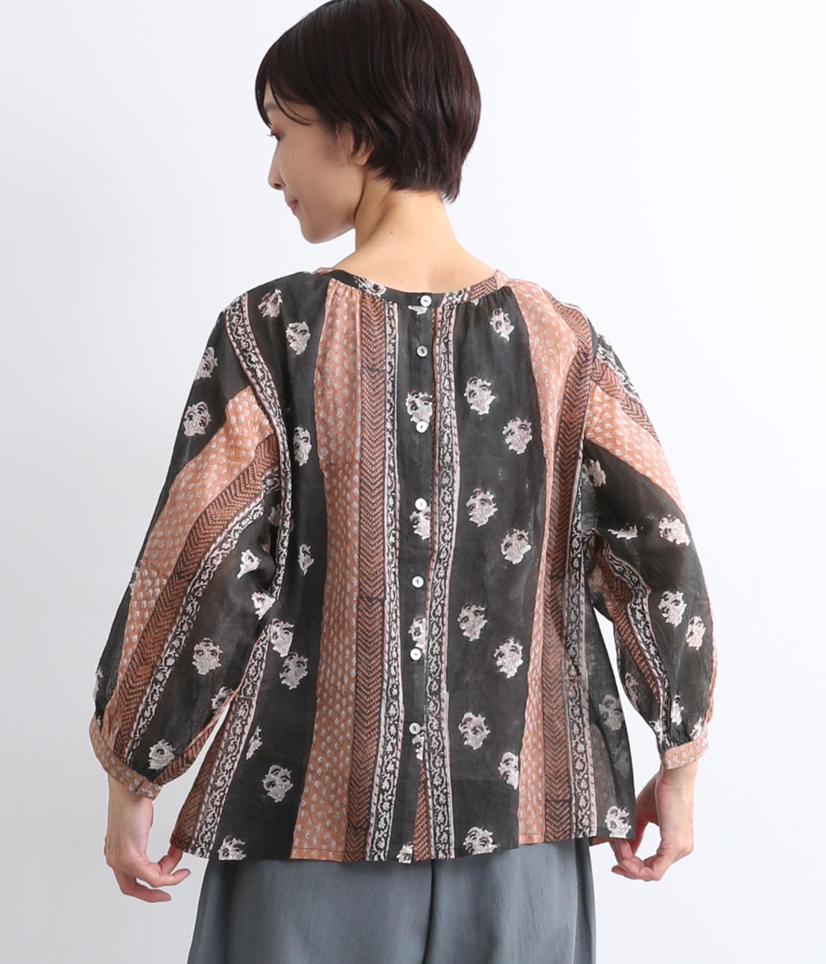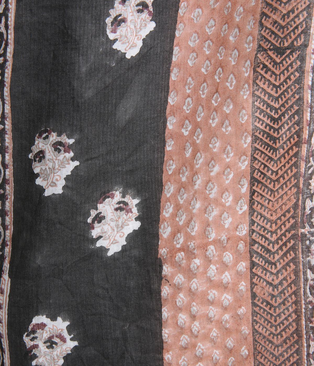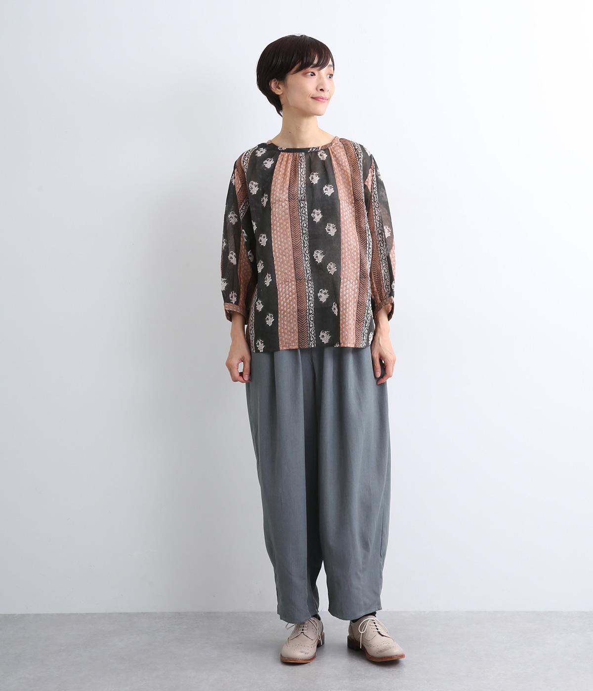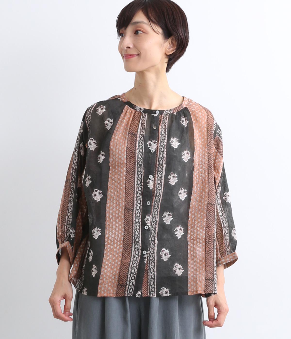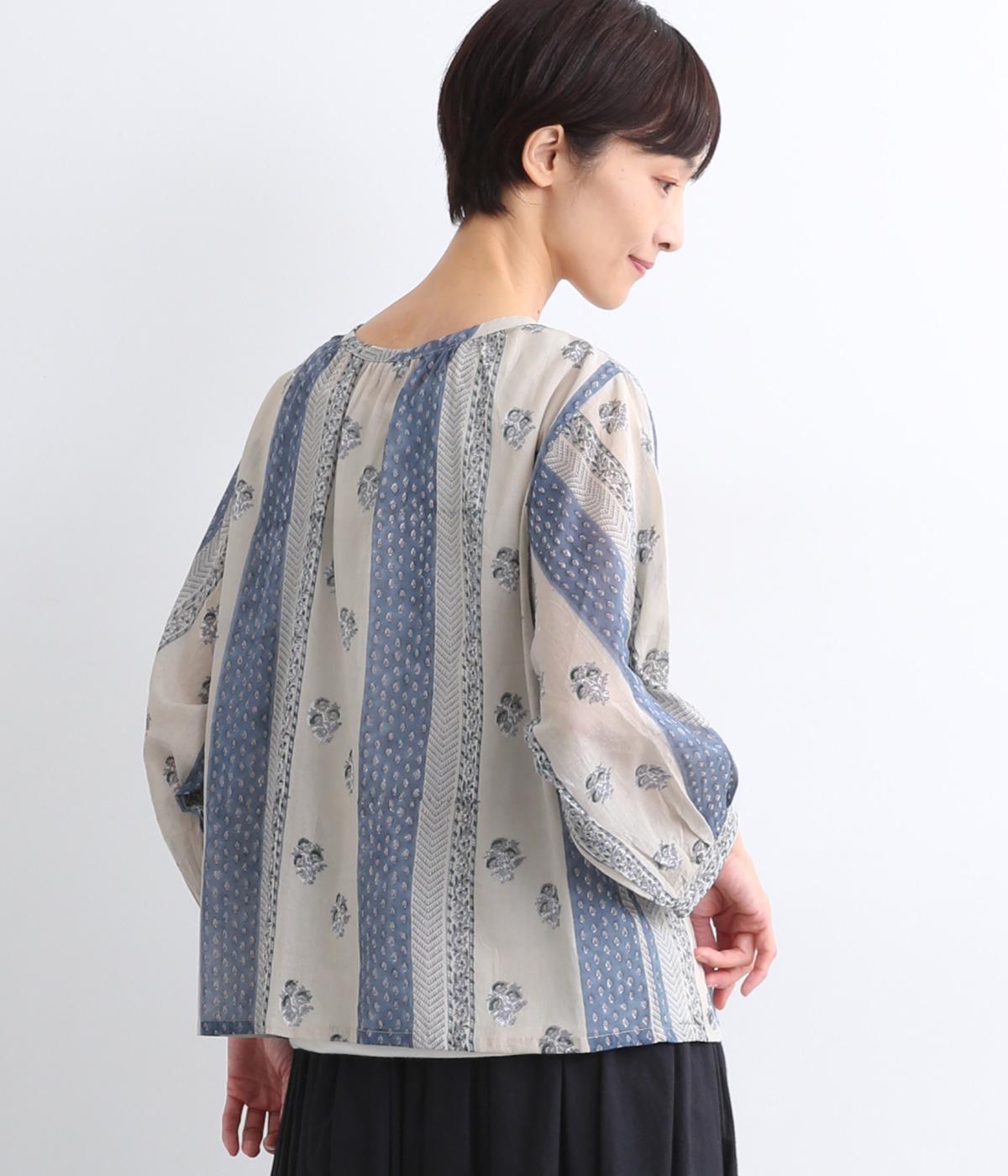 シアー感のある薄手のコットン素材。一つ一つ丁寧に手作業でおこなっている、インド伝統技法のブロックプリントを用いています。