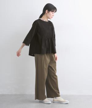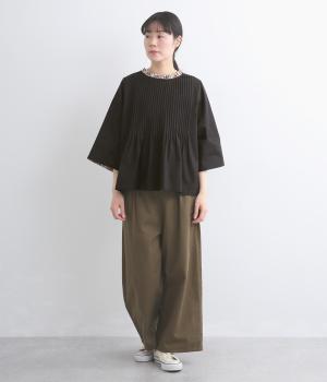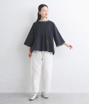 コットンとリネンをブレンドした、しなやかでほどよいハリを備えた生地をセレクトしました。かたさが少なく優しい肌あたりで、さらりと快適に着られます。
