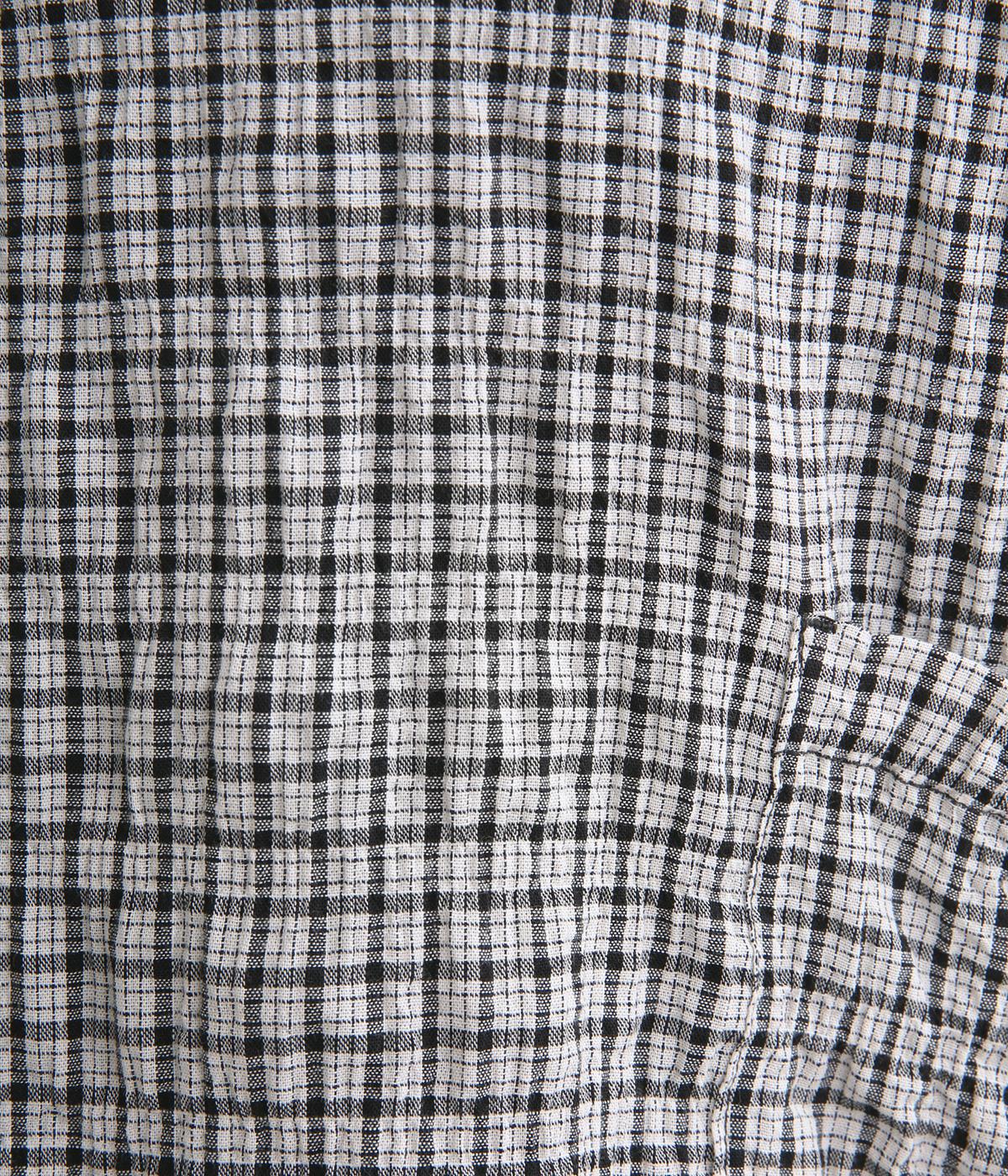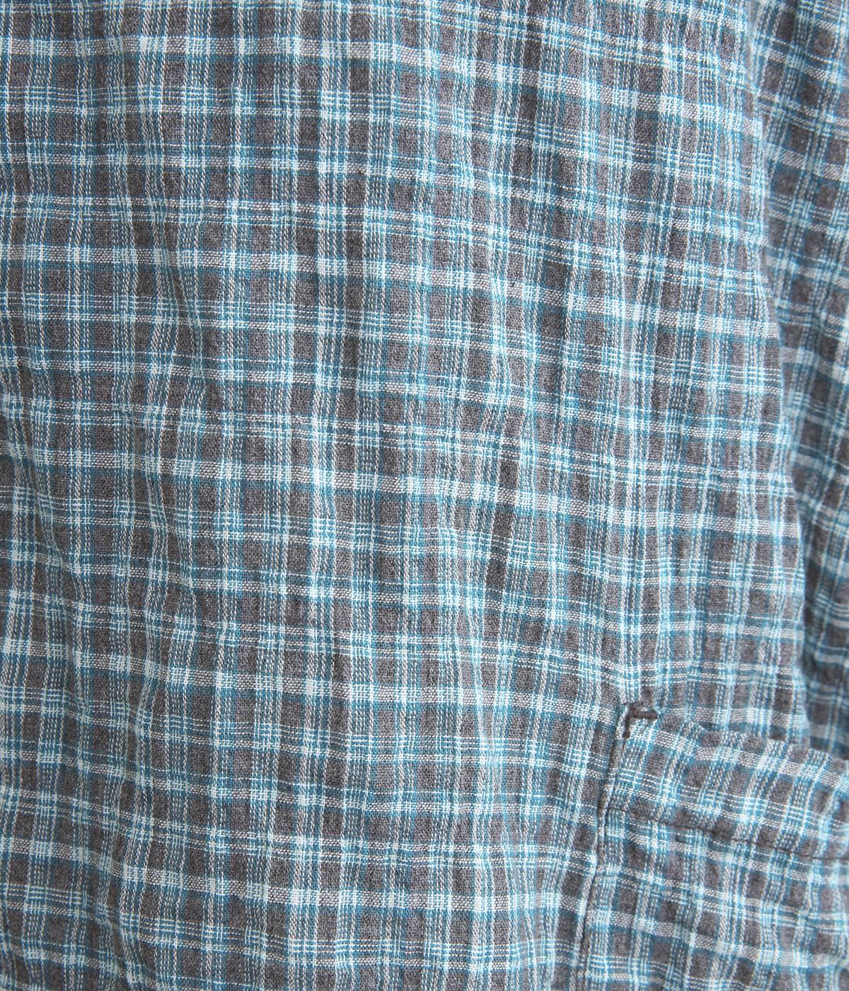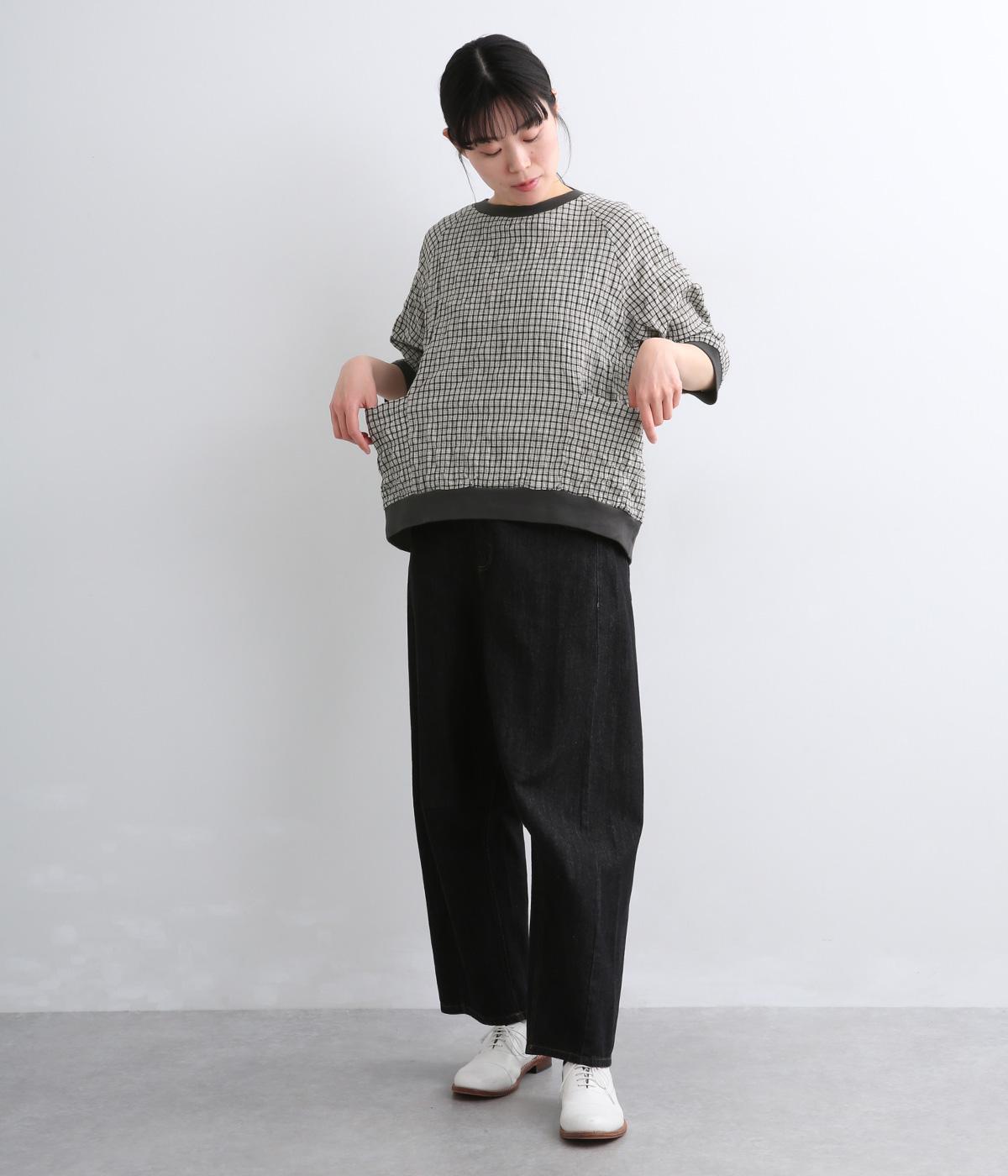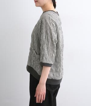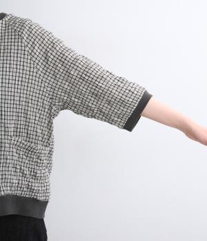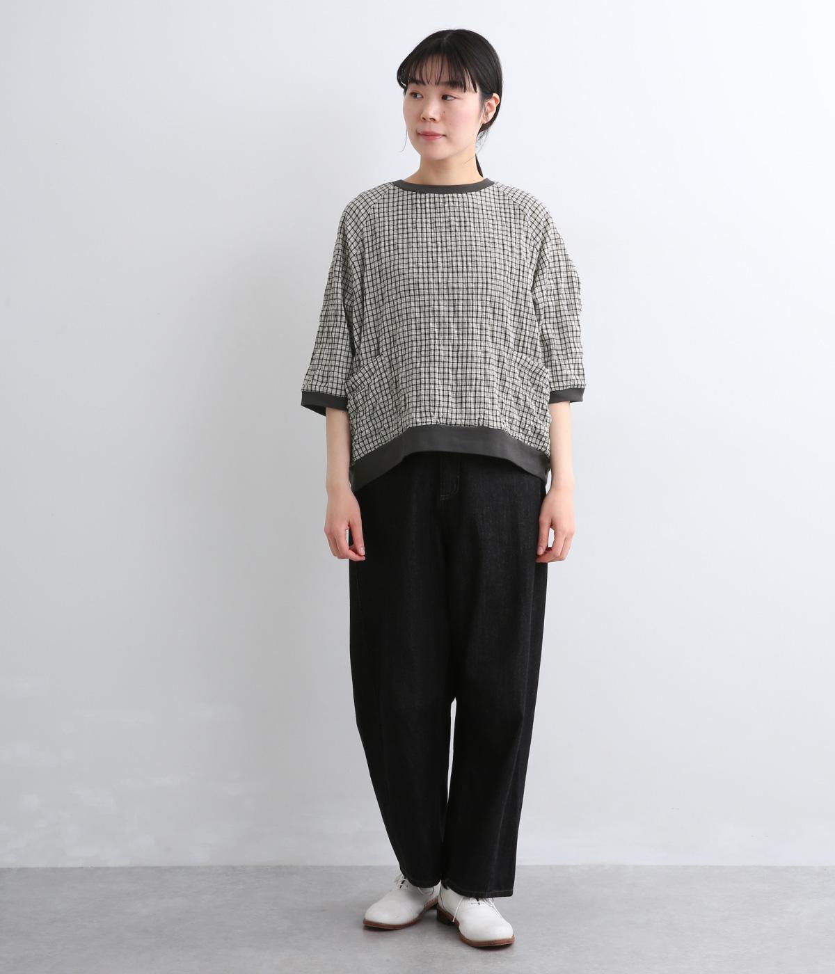 シワ感のあるナチュラルな生地にシックなチェック柄をあしらったブラウス。肩まわりが楽なラグランスリーブでなだらかなラインを描き、七分袖で抜け感を演出。便利なポケット付きで、機能性とこなれ感を兼ね備えた一着です。