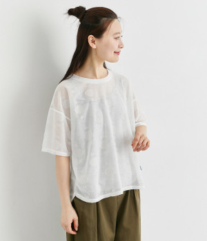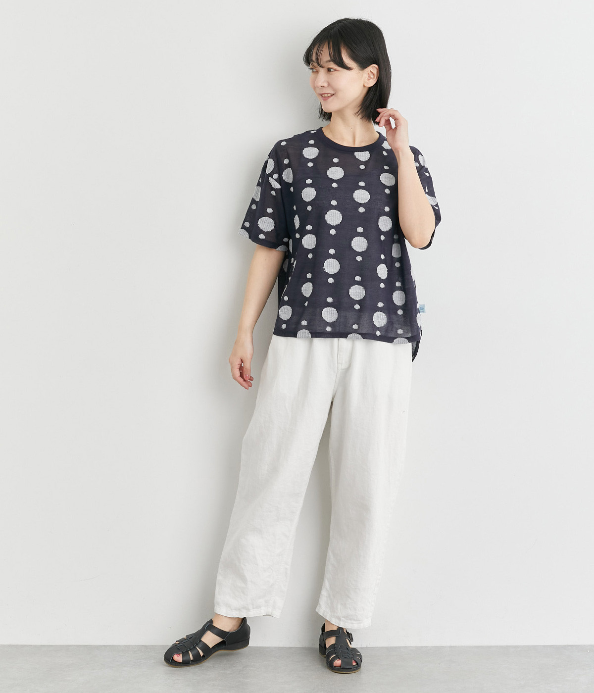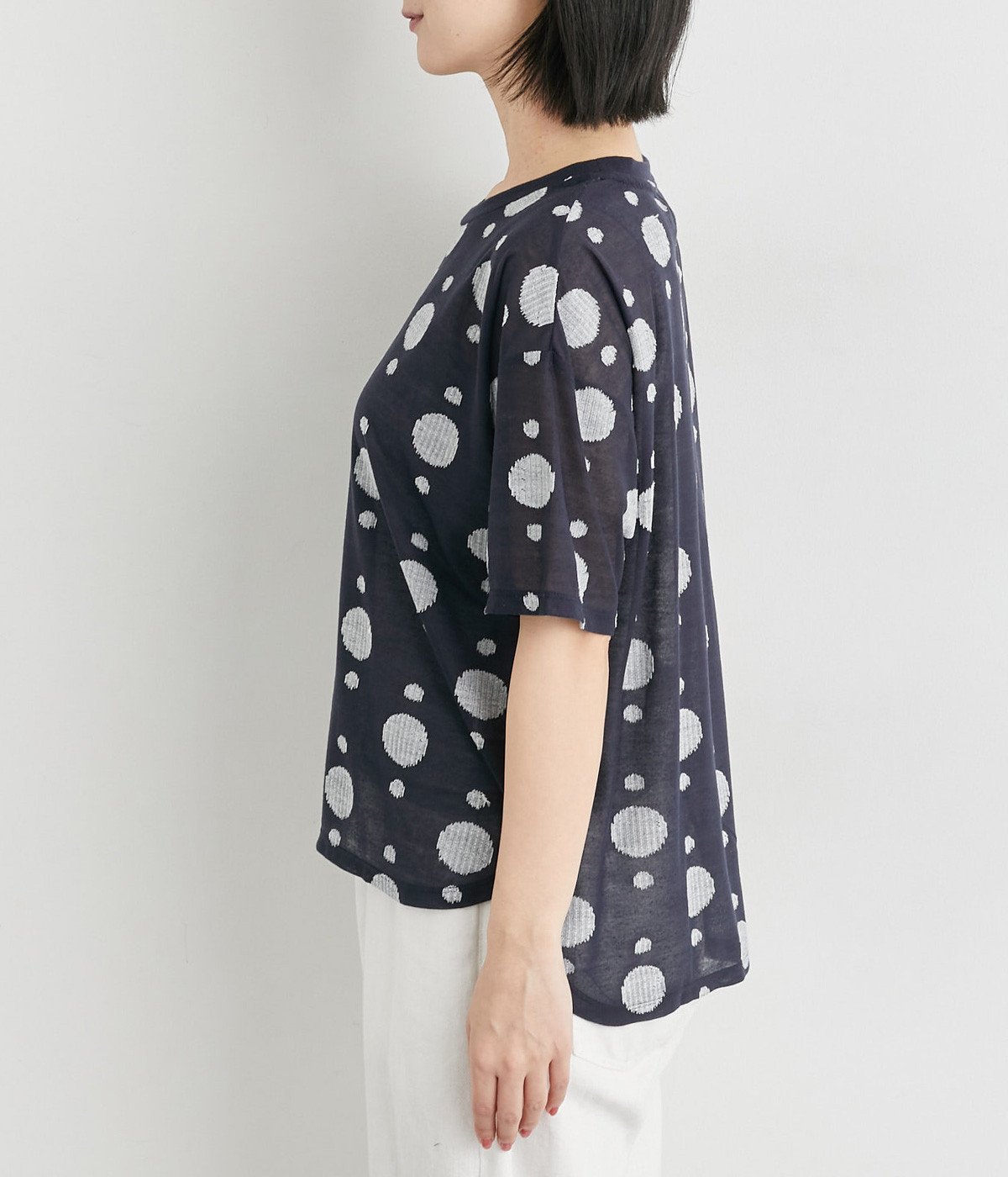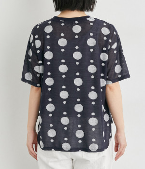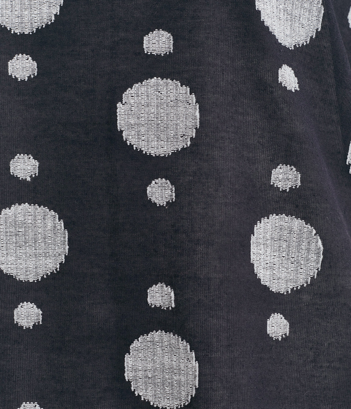 ランダムなドット柄のシアー生地が特徴的なカットプルオーバーです。やわらかでほのかに伸縮性があり、透け感があるので見た目も涼しく着用できます。