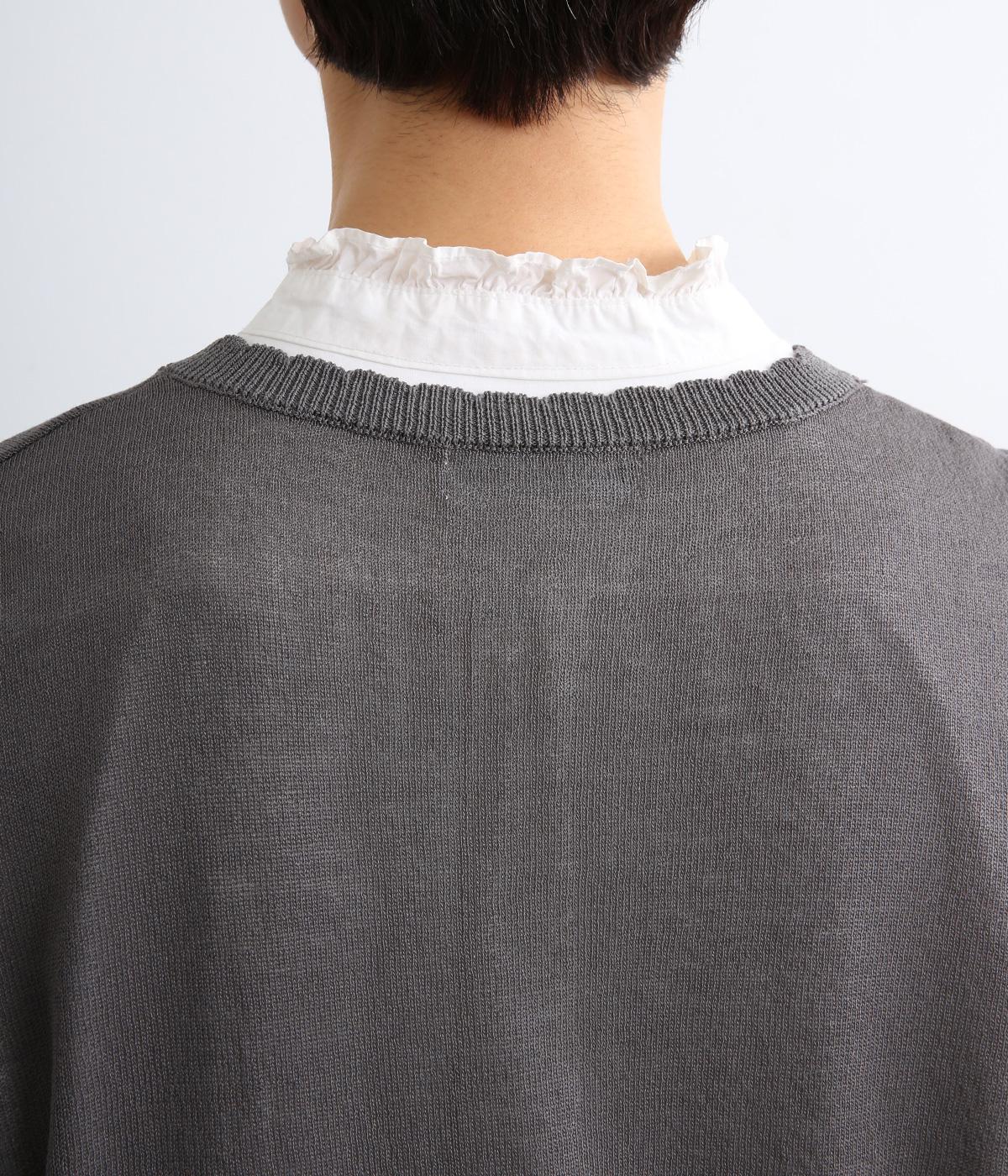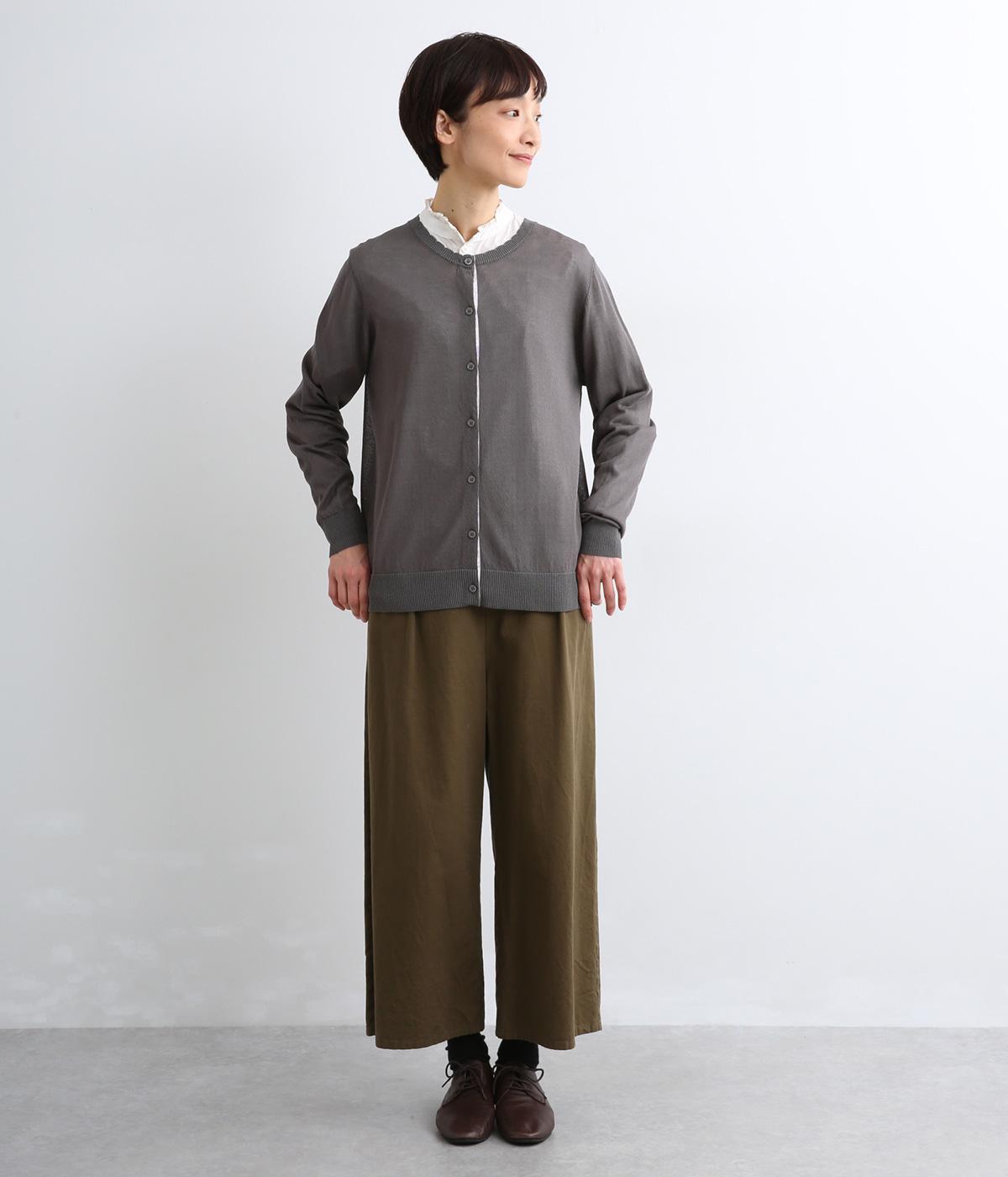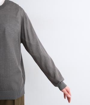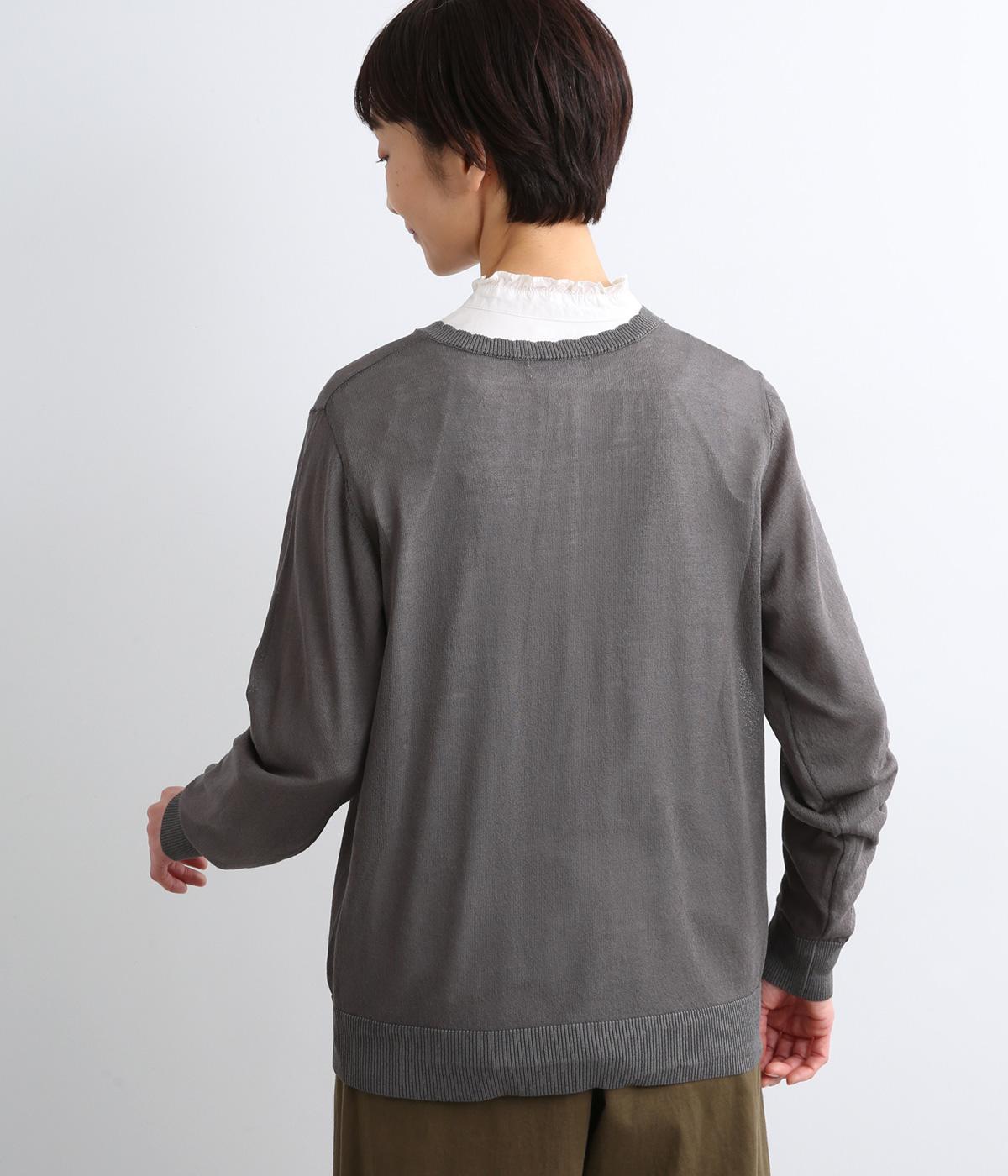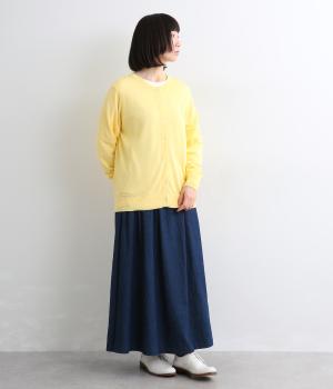 薄手でほんのりとした透け感が特徴の混紡ニットを採用。肌触りがやわらかくなめらかな落ち感が特徴のレーヨンにナイロンをまぜて軽やかさをプラスしています。