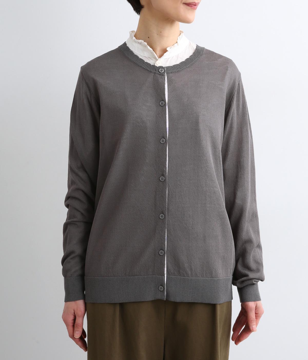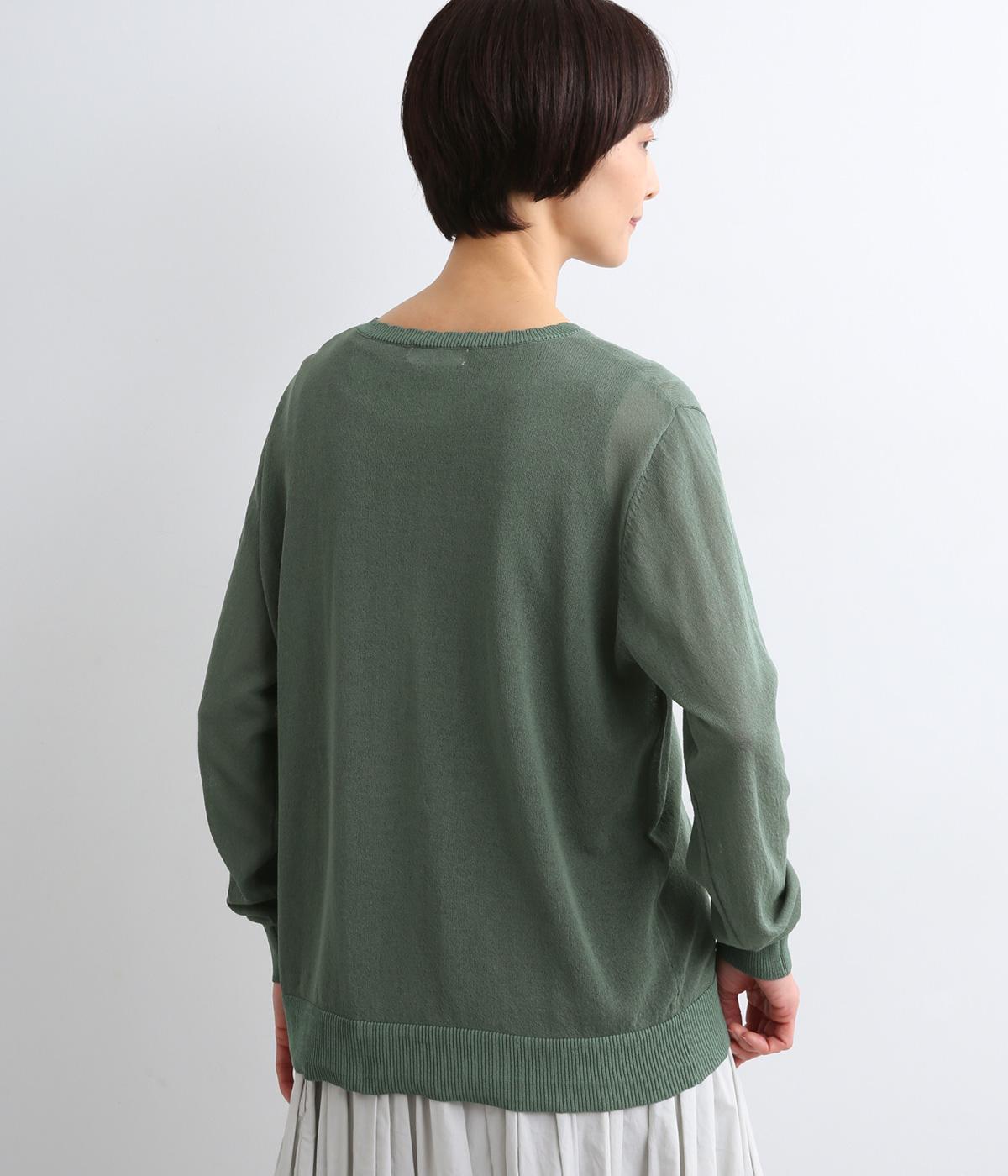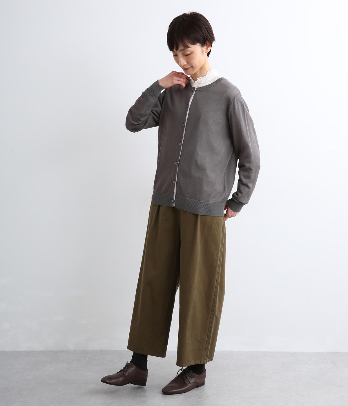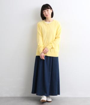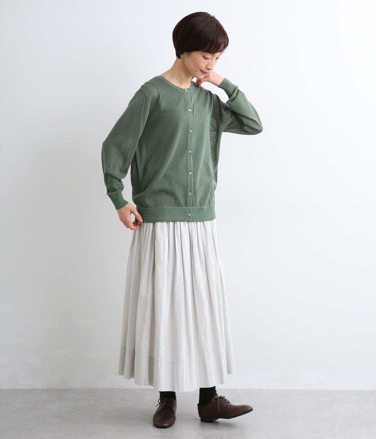 薄手でほんのりとした透け感が特徴の混紡ニットを採用。肌触りがやわらかくなめらかな落ち感が特徴のレーヨンにナイロンをまぜて軽やかさをプラスしています。