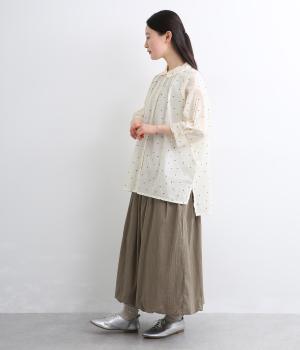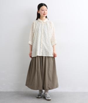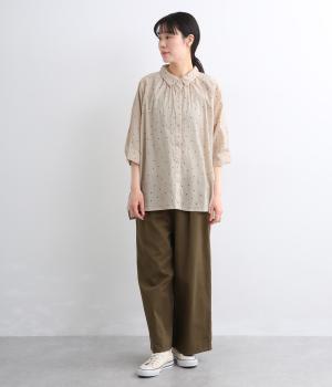 ふんわりとやわらかく、薄手で透け感のあるコットンボイル生地をセレクトしました。肌に密着せず、サラサラした肌ざわりで、暑い季節でも快適に着られる素材感です。