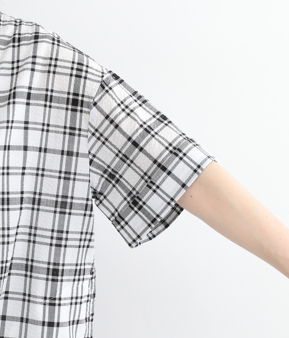 コットン素材にリップル加工でストライプの凹凸と適度なハリ感を持たせた、ドライタッチの生地です。肌離れがよく、軽くて涼しい着心地が魅力です。