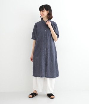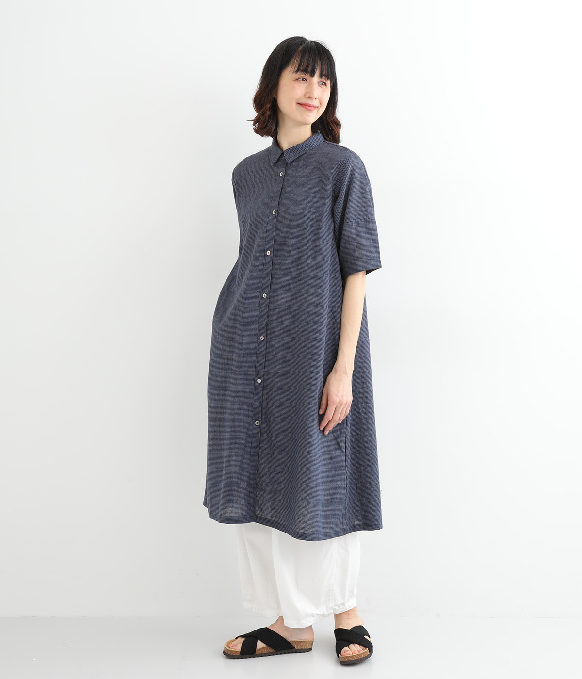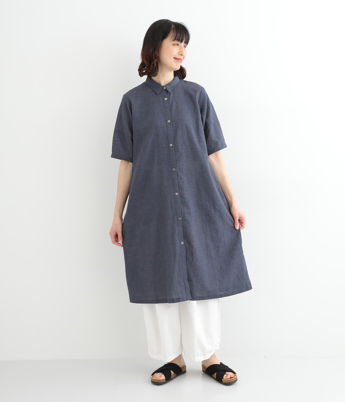 コットンのやわらかさとリネンが持つドライな質感肌ざわりを併せ持つ薄手の素材です。素肌にはりつきにくい、軽やかな質感も魅力です。