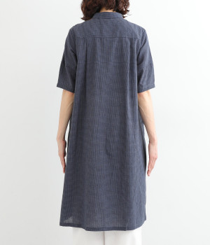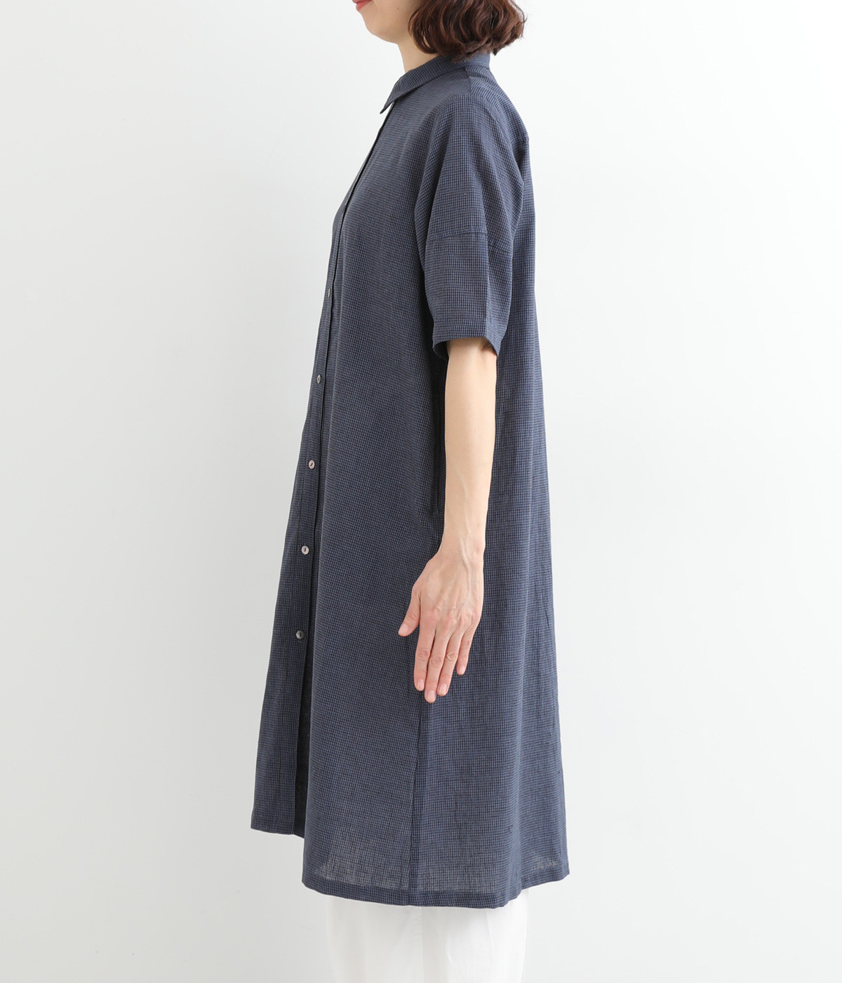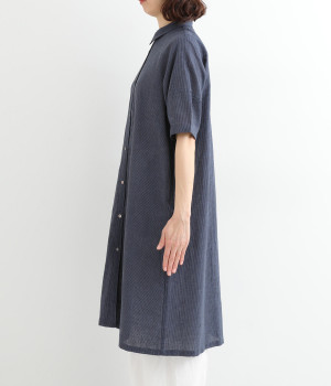 丸みをもたせた立体的なフォルムの袖がかわいらしさを添えるシャツワンピースです。セットインスリーブで肩まわりをすっきりと見せながらも、袖幅にゆとりがあるので羽織りとしてTシャツとの重ね着もしやすい一枚に。