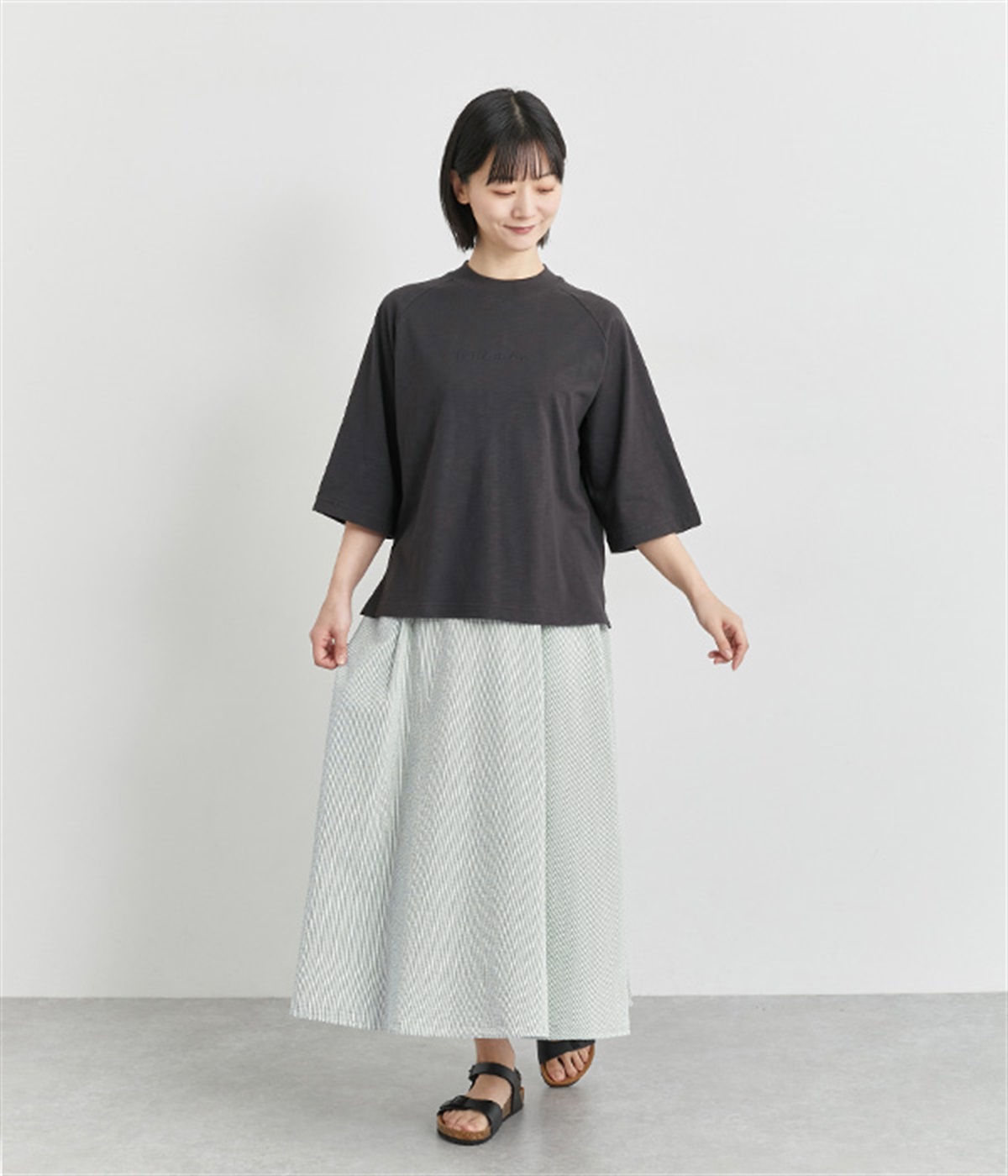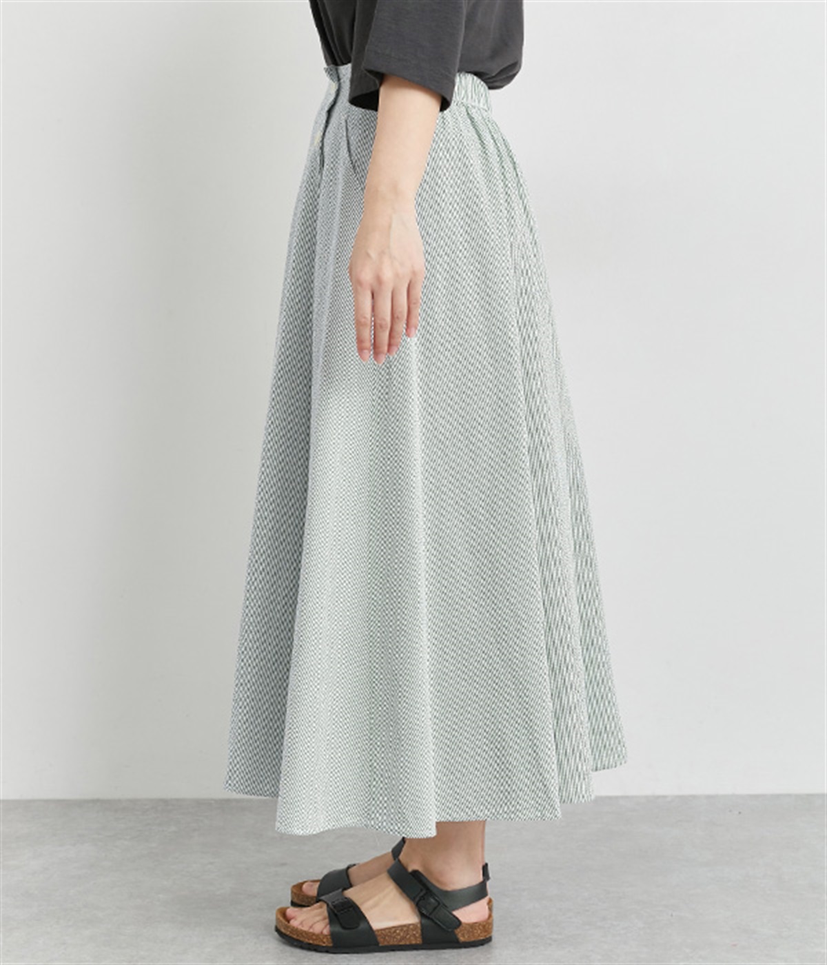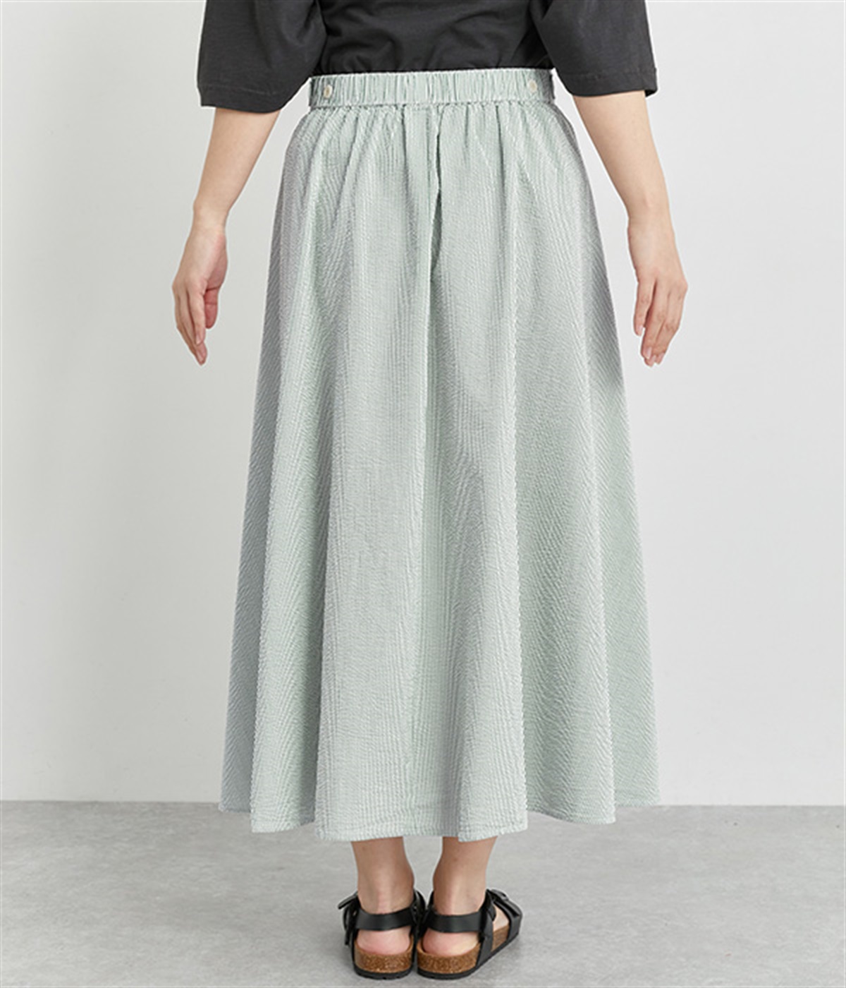 凹凸のある風合いが特徴のサッカー素材を使用しています。ぽこぽことした立体感によって生地が肌に触れる面積が少なくなるので、さらりとした肌触りに。軽くてさわやかな生地になっています。