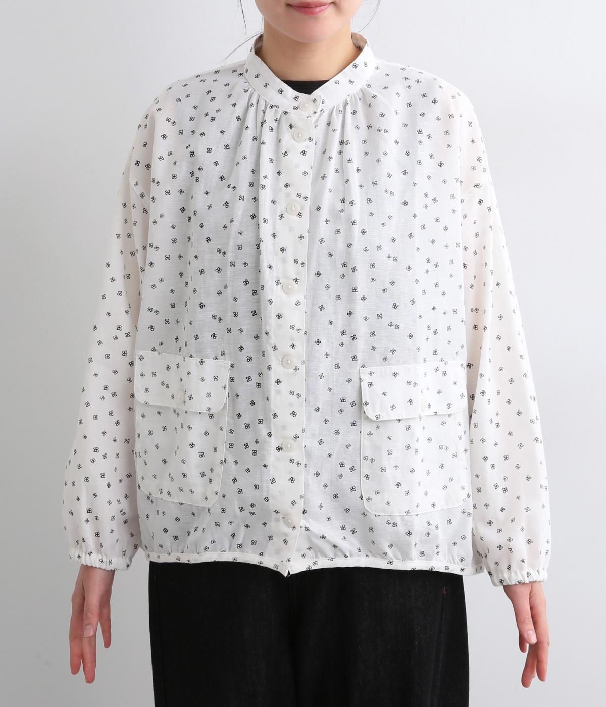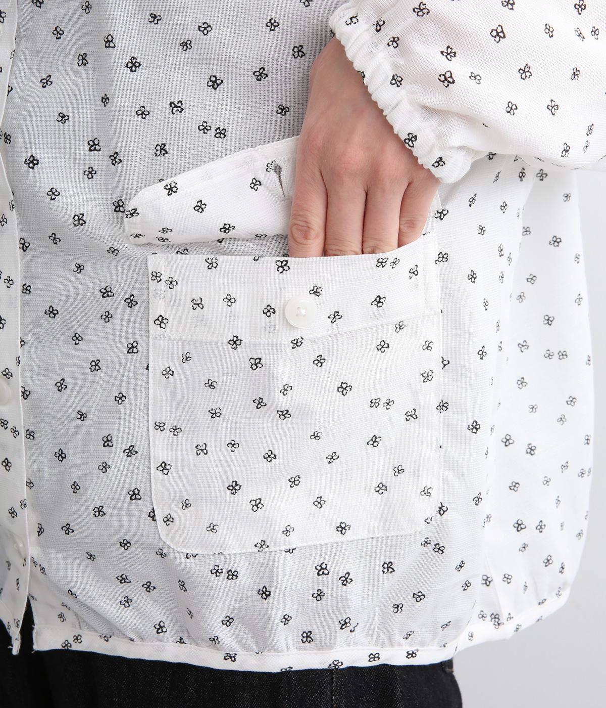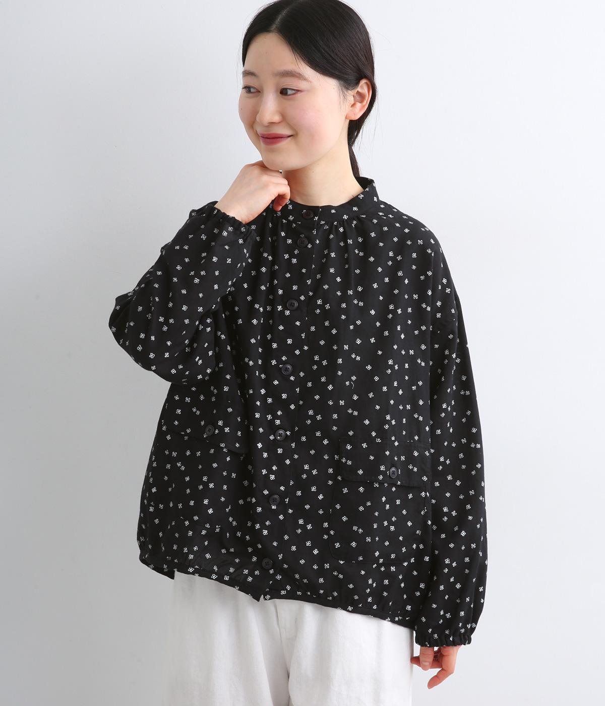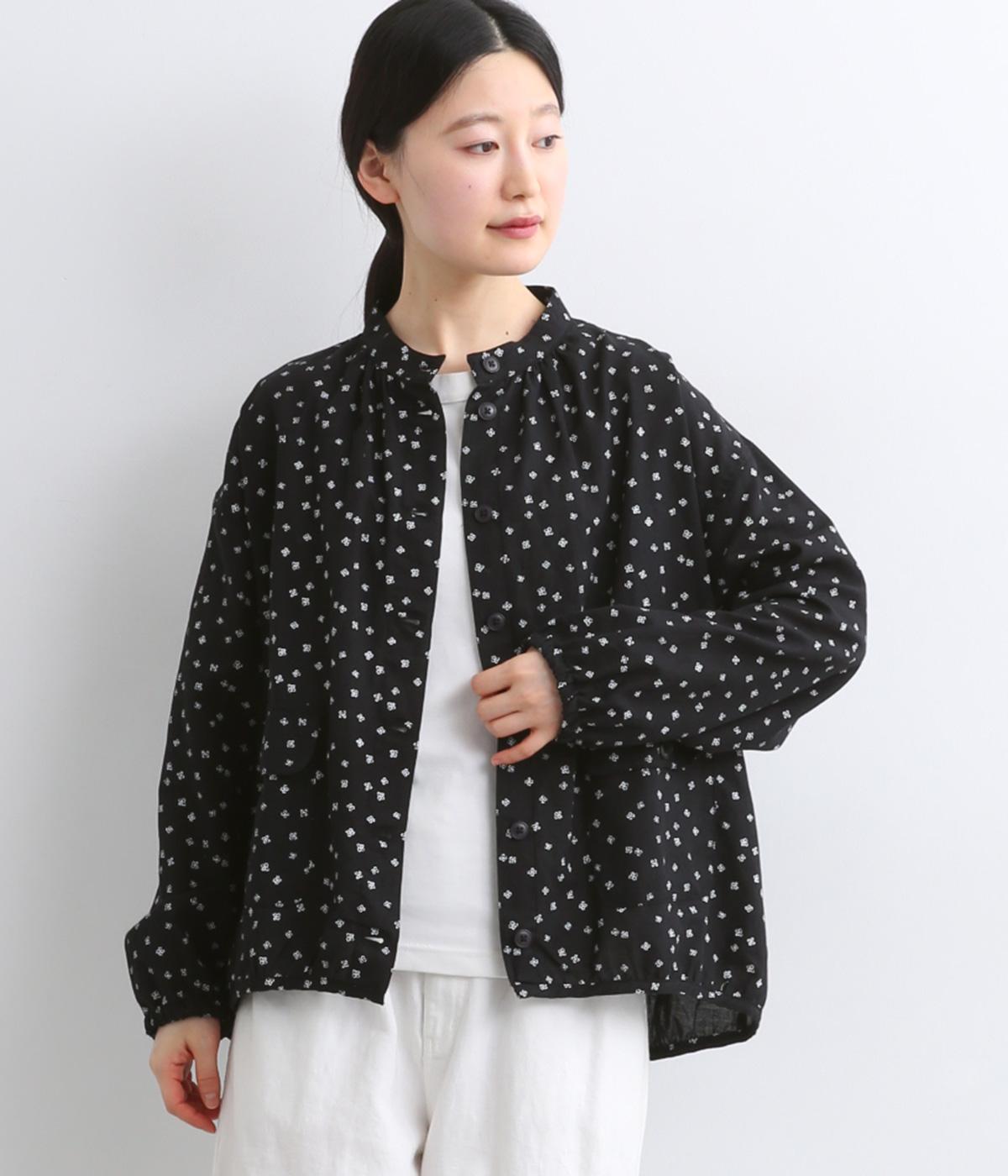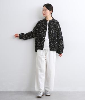ラフなタッチの小花柄が、かわいらしい個性を添えるブルゾン。パイピングで仕上げた裾が軽やかさを引き立てます。袖口はたくしあげにも便利なゴム仕様。ポケットも備えて機能性も十分なライトアウターです。