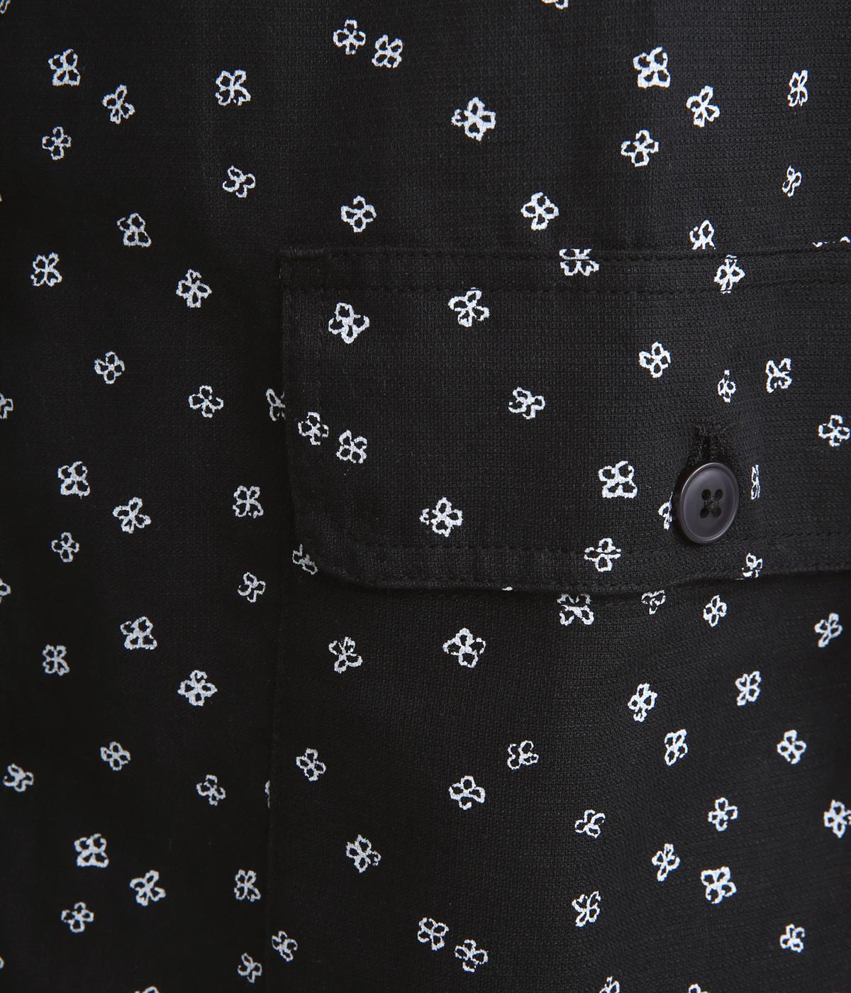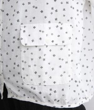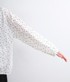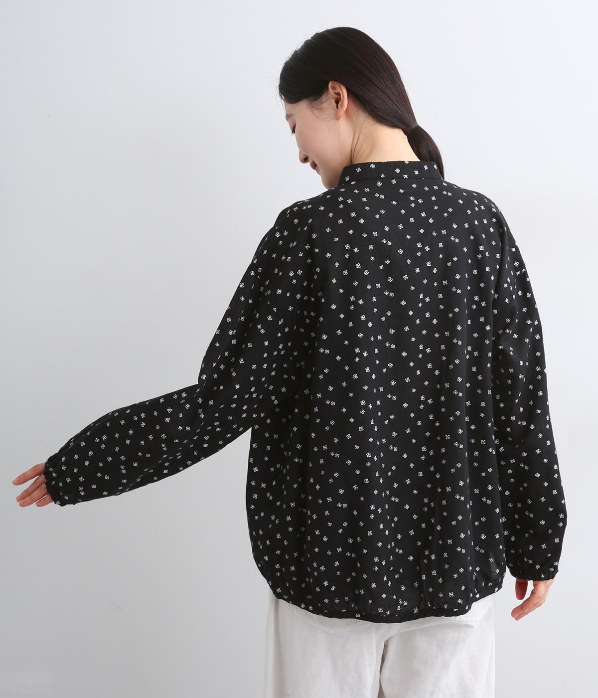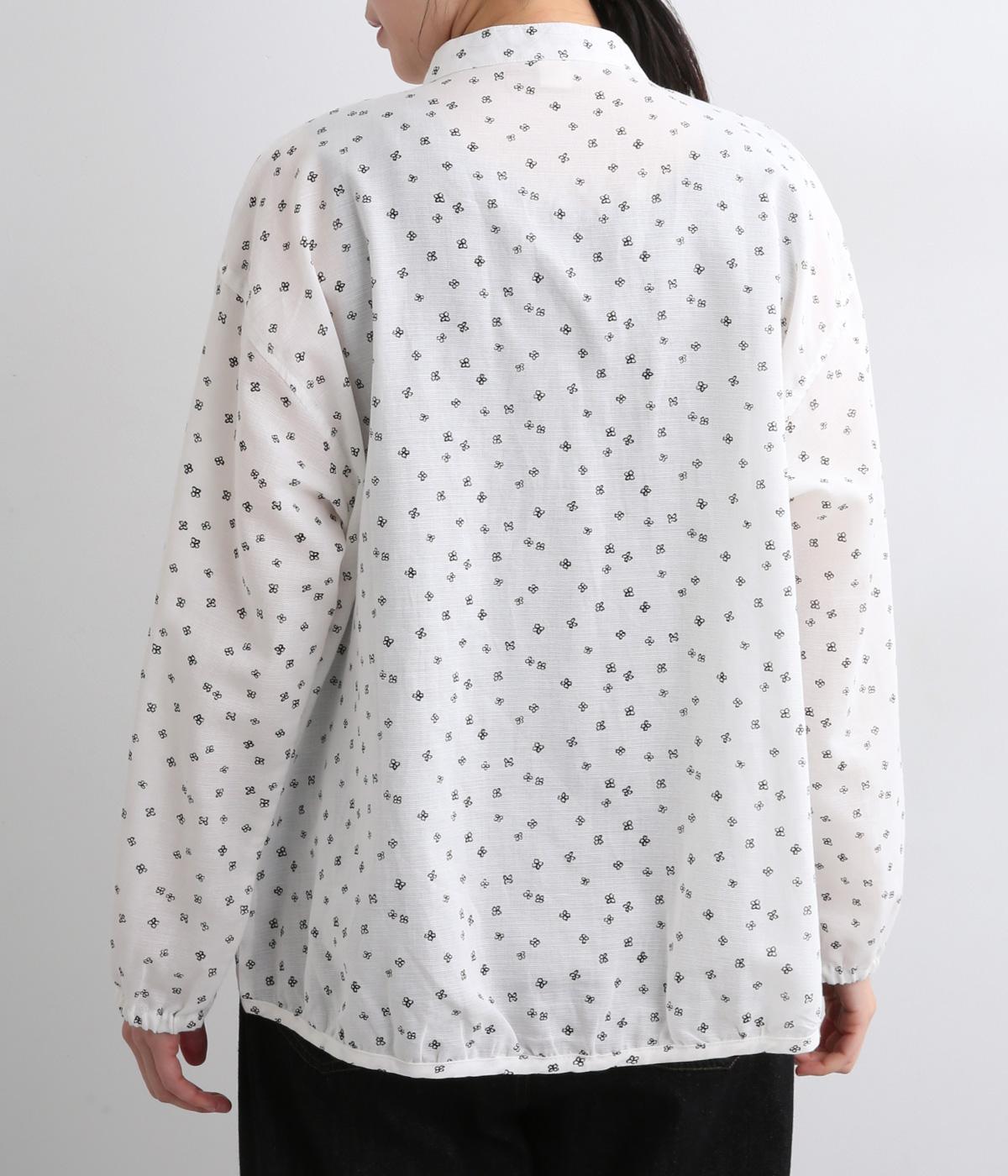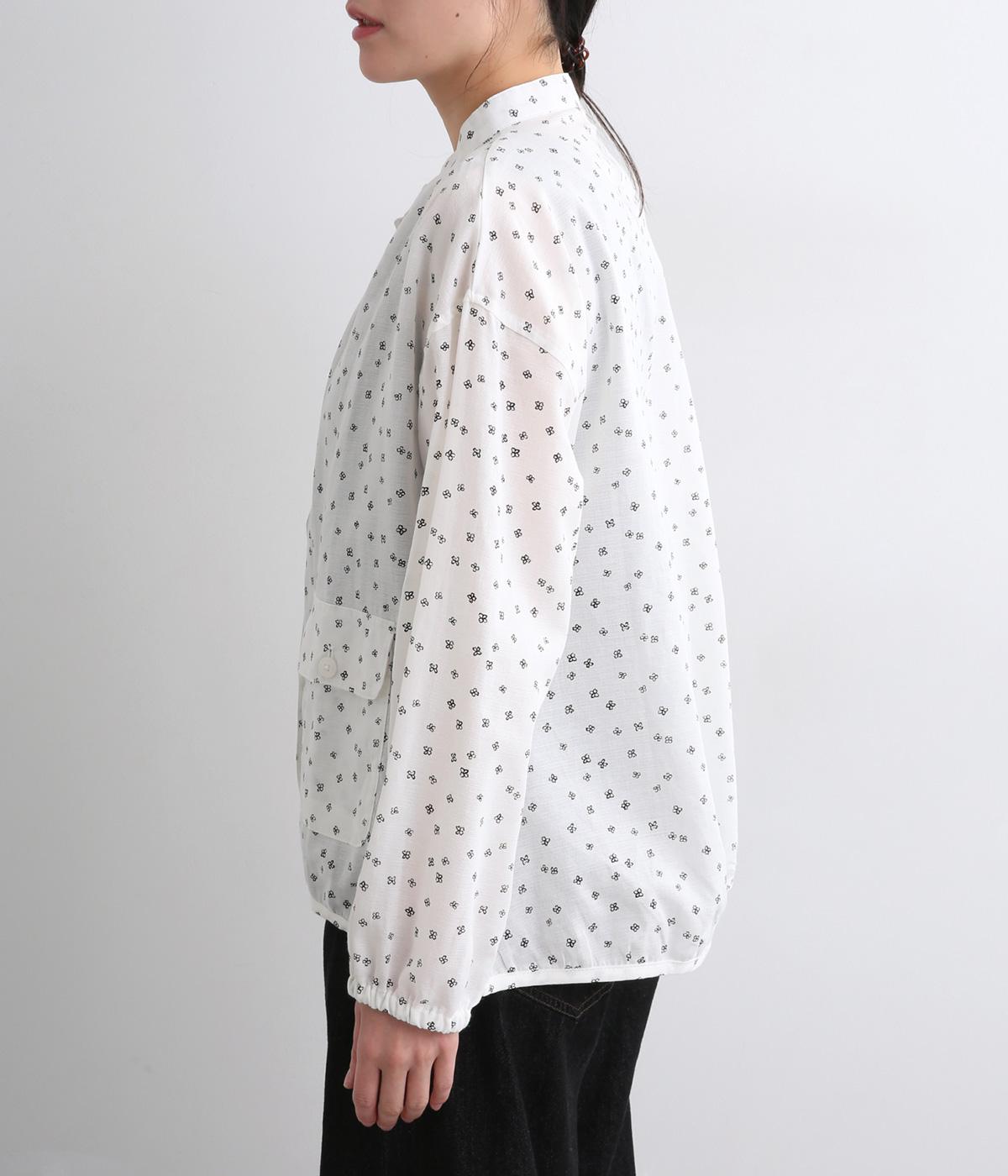ラフなタッチの小花柄が、かわいらしい個性を添えるブルゾン。パイピングで仕上げた裾が軽やかさを引き立てます。袖口はたくしあげにも便利なゴム仕様。ポケットも備えて機能性も十分なライトアウターです。