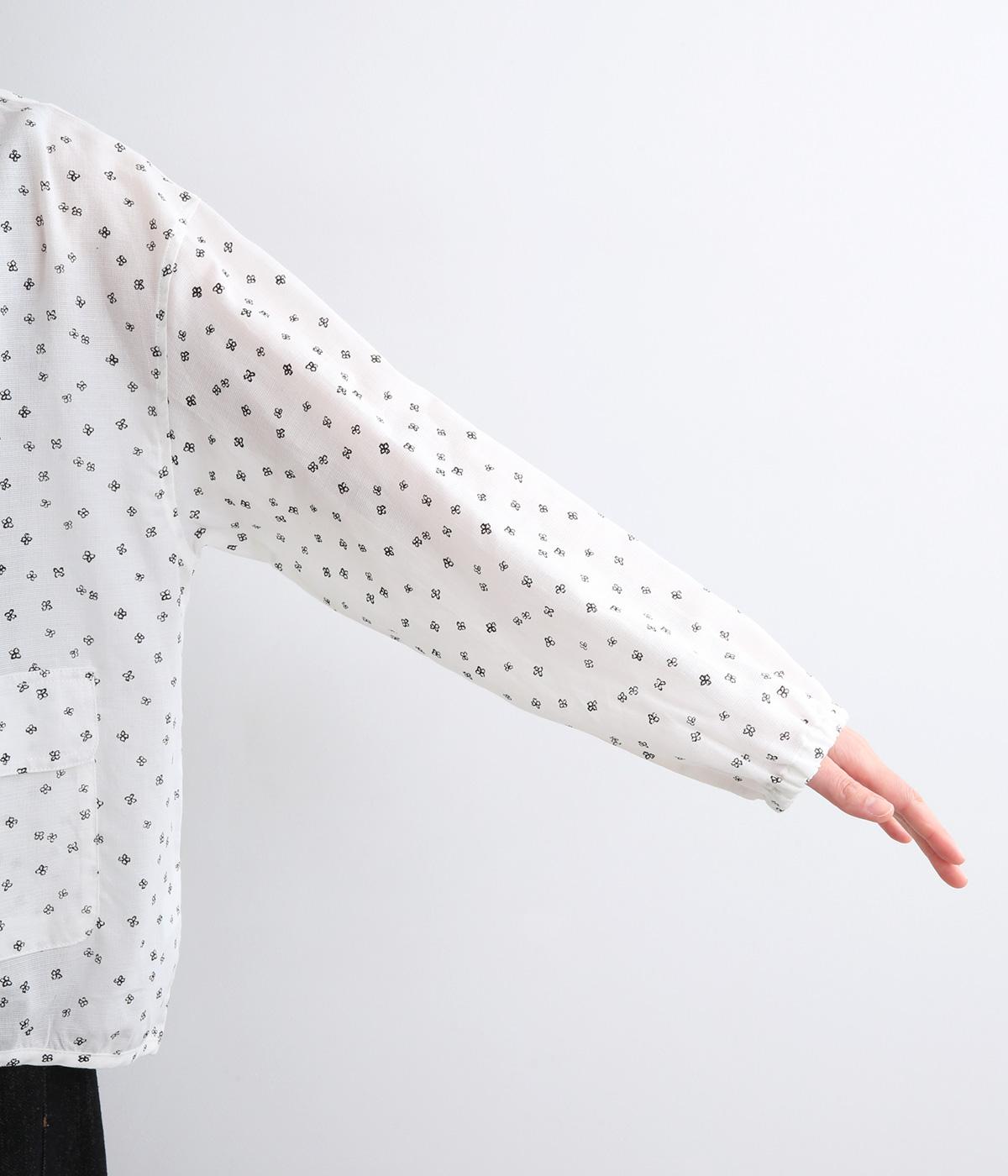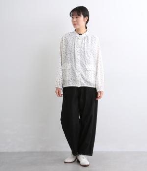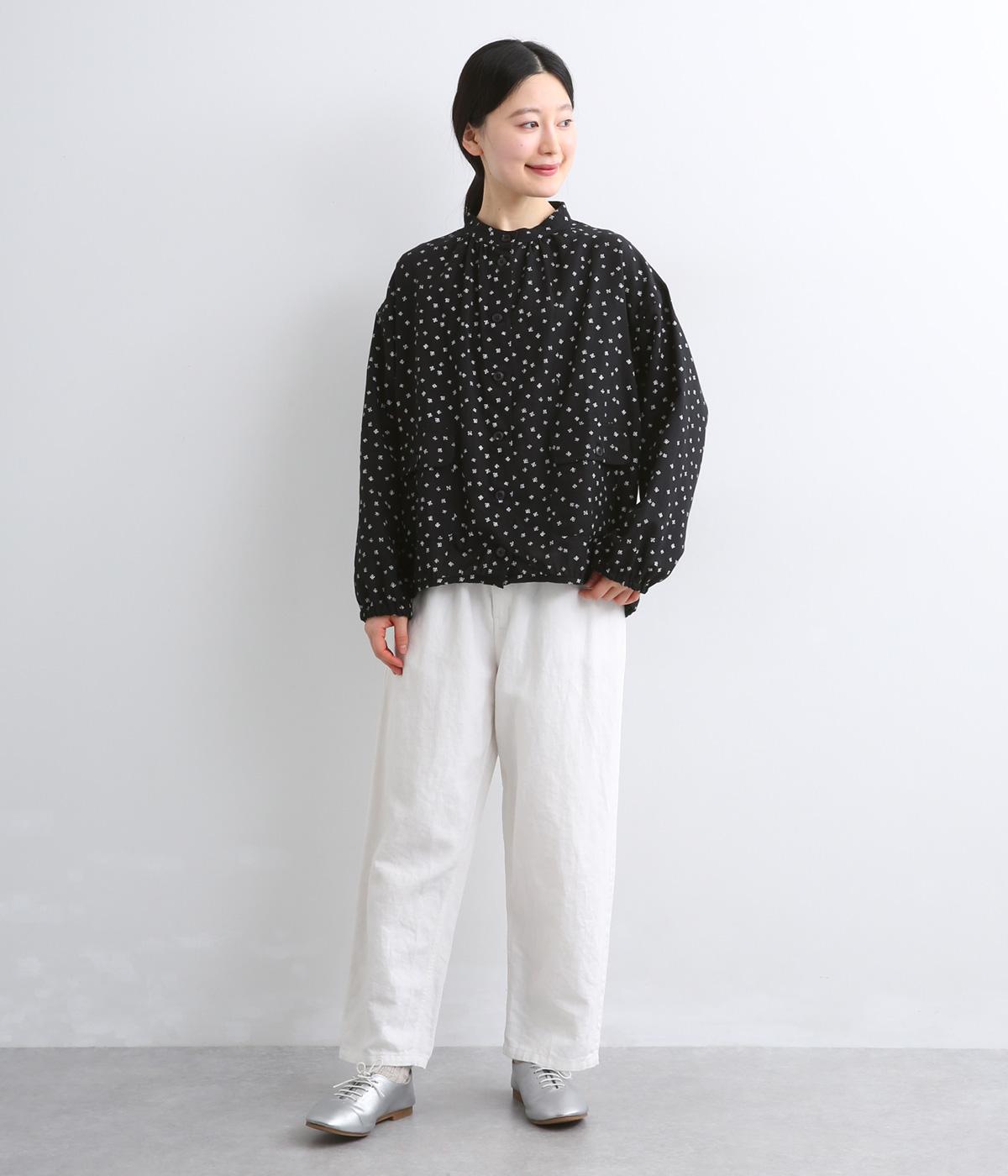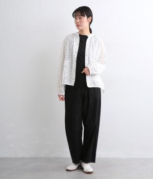さらりとドライタッチでやわらかな肌ざわりのコットンリネン生地を使用しています。ほどよいハリ感がシルエットをきれいに保ちます。季節の変わり目にさっと羽織れる軽やかな素材です。