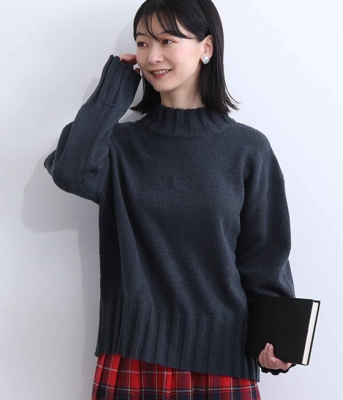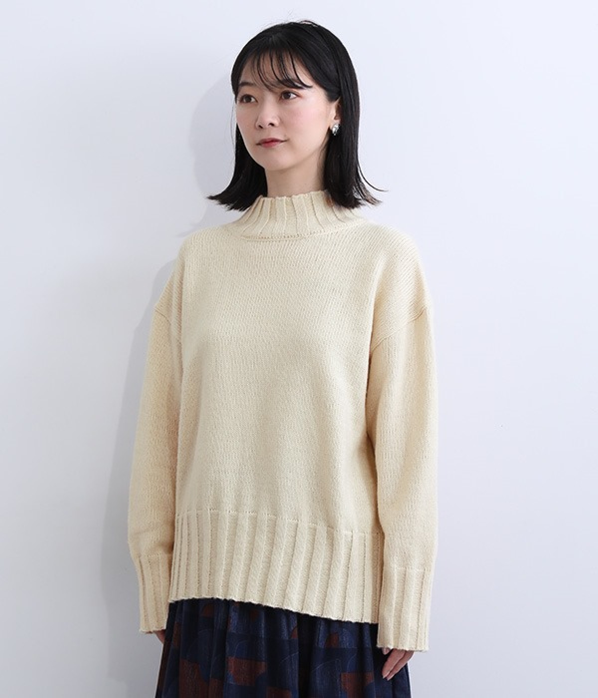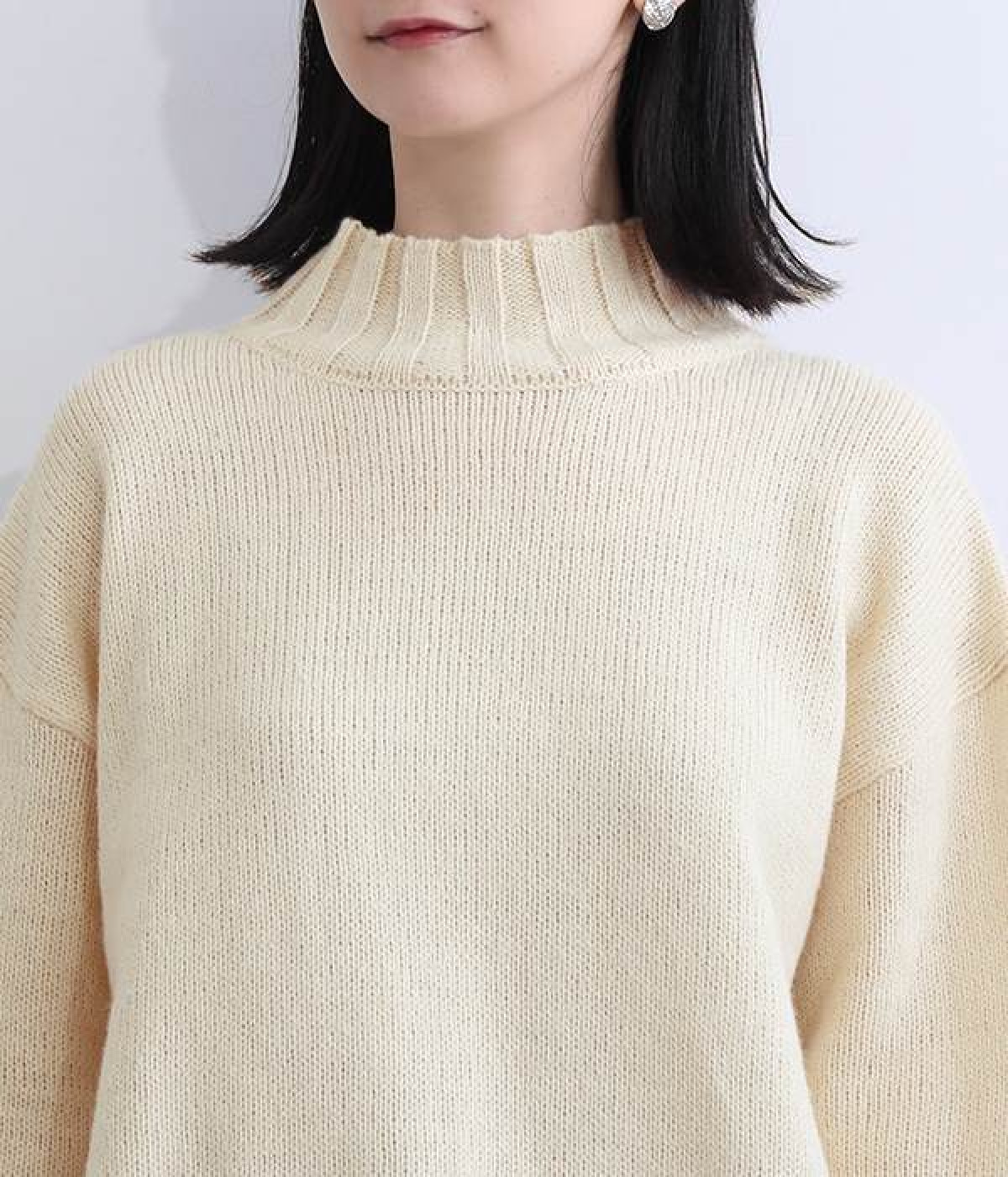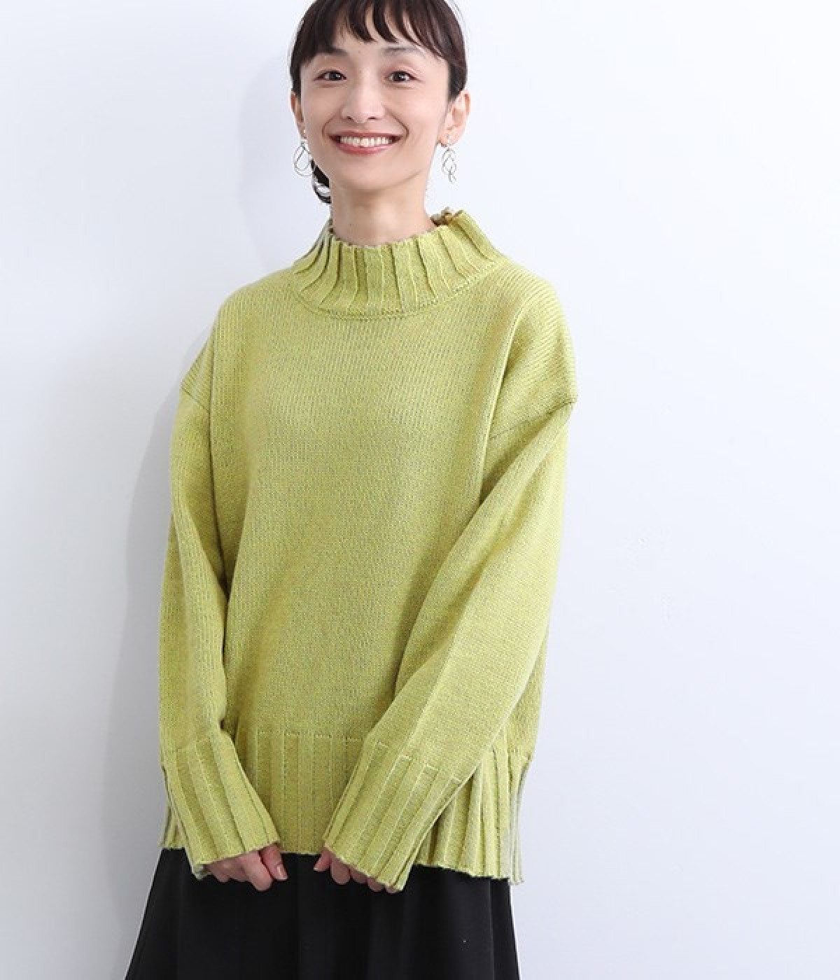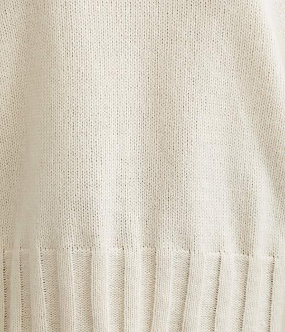 各パーツに入った幅広リブが抜群の存在感を放つプルオーバー。保温性に優れたバルキーアクリル×やわらかなピーチヤーンを組み合わせることで強度が増し、型崩れしにくい仕立てです。中肉厚でさほど厚みを感じないため、コートインのしやすさも◎。バックにはぱっくりとスリットを入れて、フロントとの見た目に変化をつけました。大きめのシルエットで華奢さが引き立つ工夫もしています。
