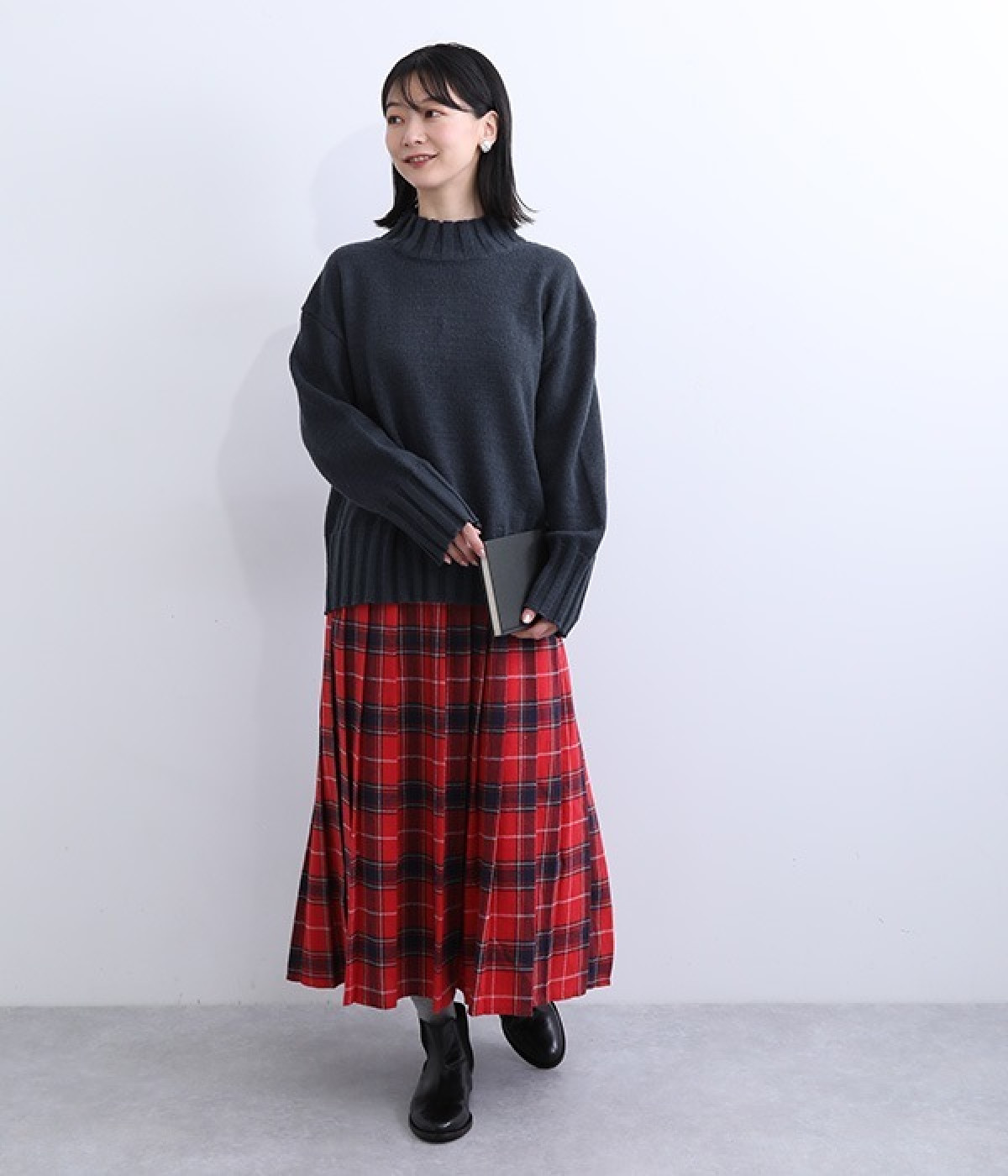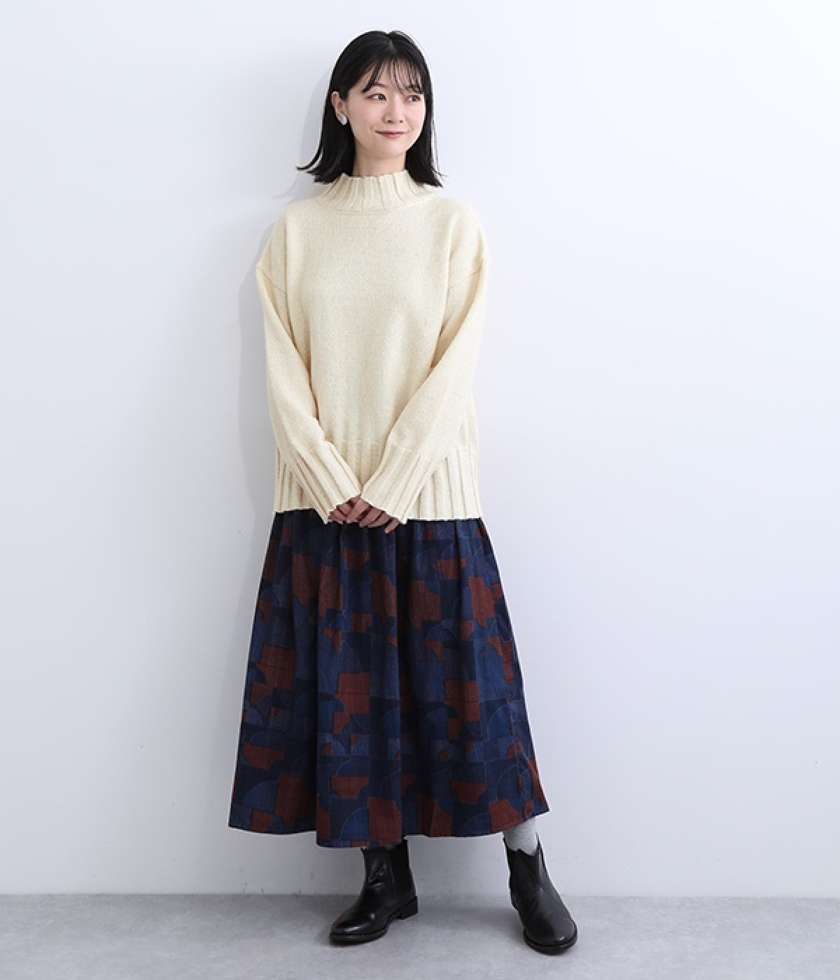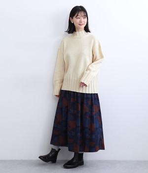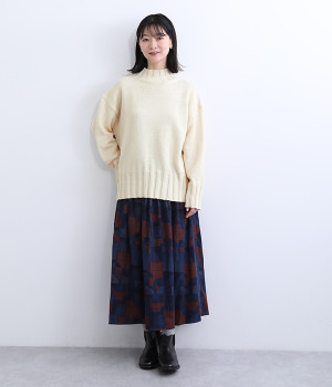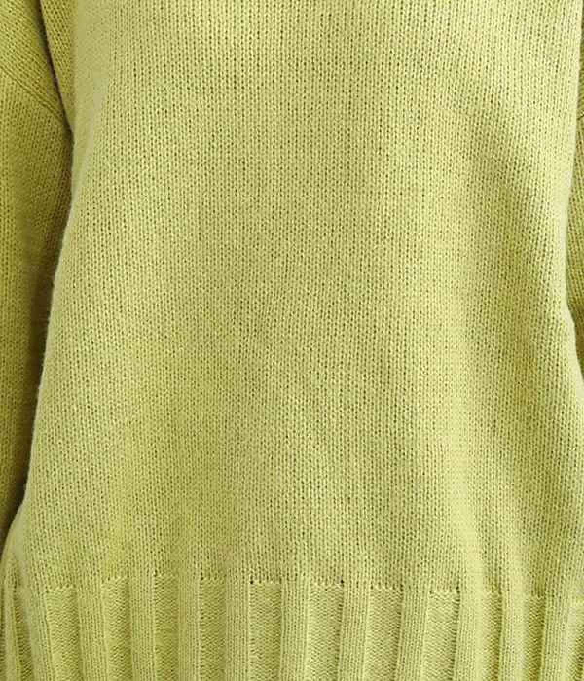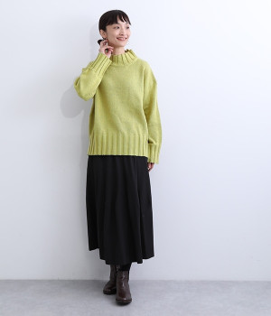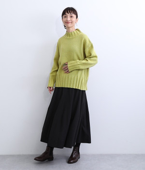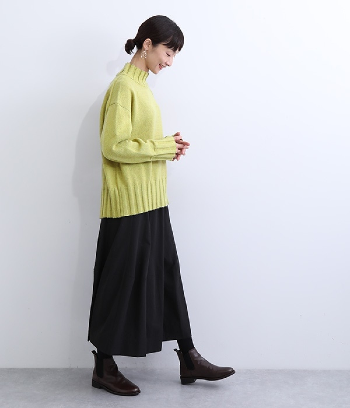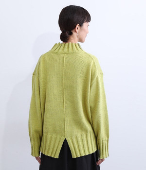 各パーツに入った幅広リブが抜群の存在感を放つプルオーバー。保温性に優れたバルキーアクリル×やわらかなピーチヤーンを組み合わせることで強度が増し、型崩れしにくい仕立てです。中肉厚でさほど厚みを感じないため、コートインのしやすさも◎。バックにはぱっくりとスリットを入れて、フロントとの見た目に変化をつけました。大きめのシルエットで華奢さが引き立つ工夫もしています。