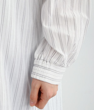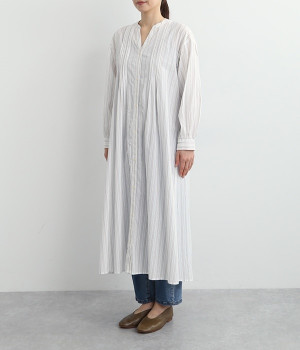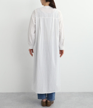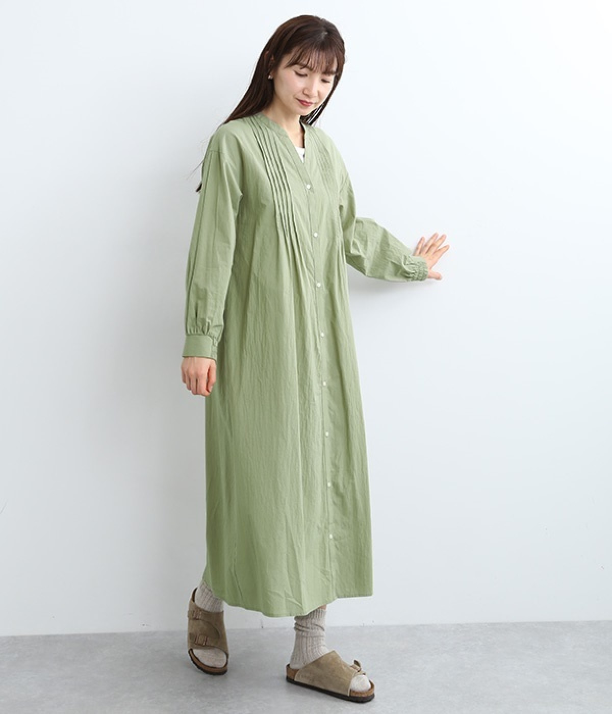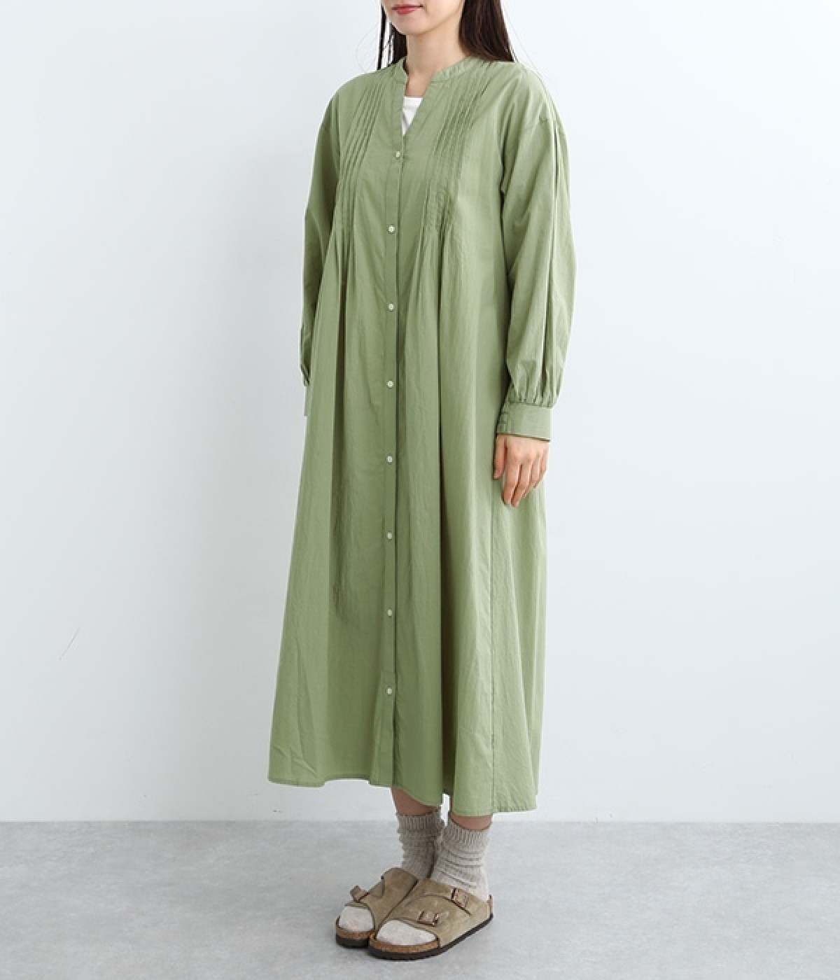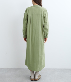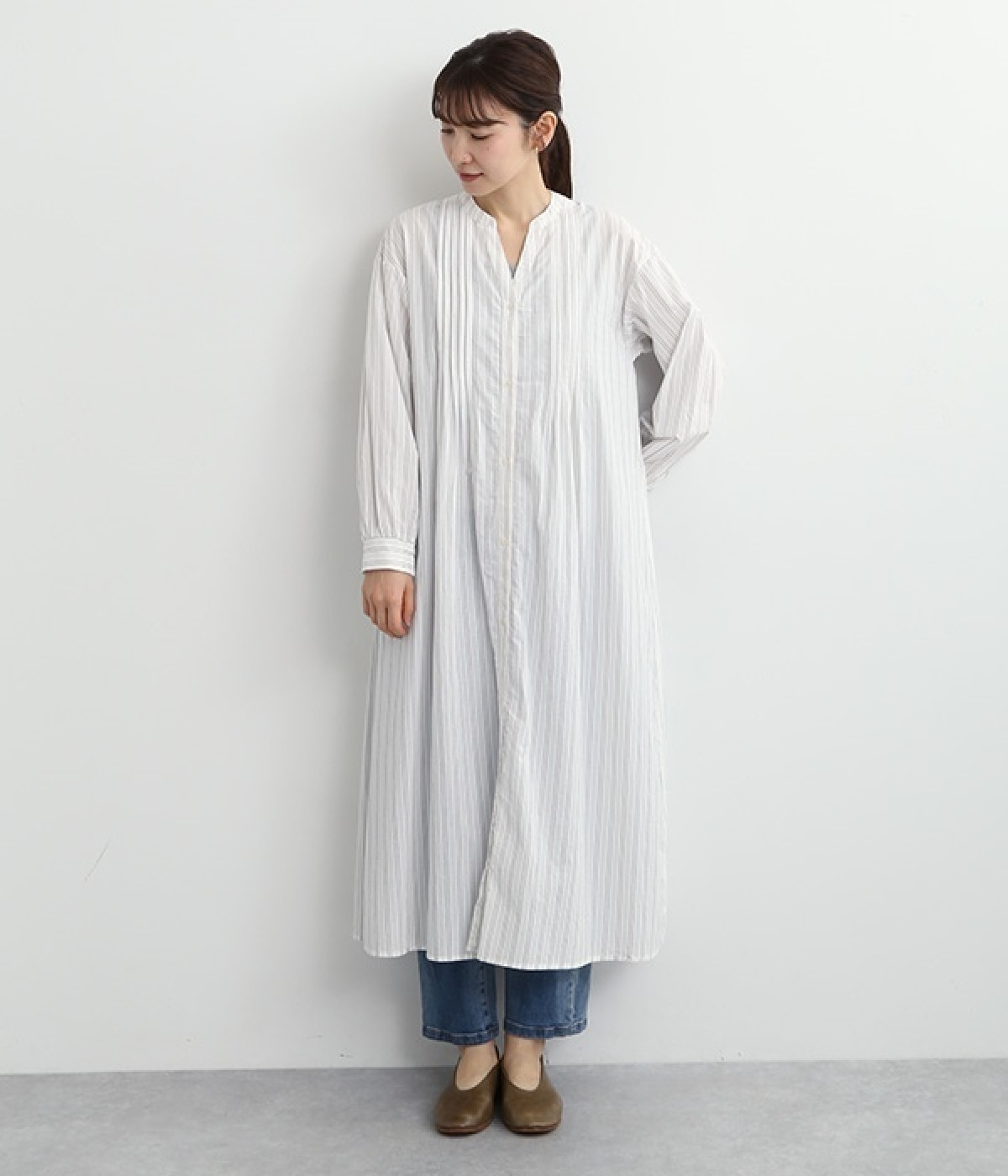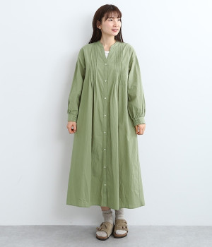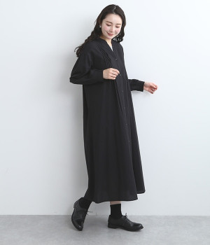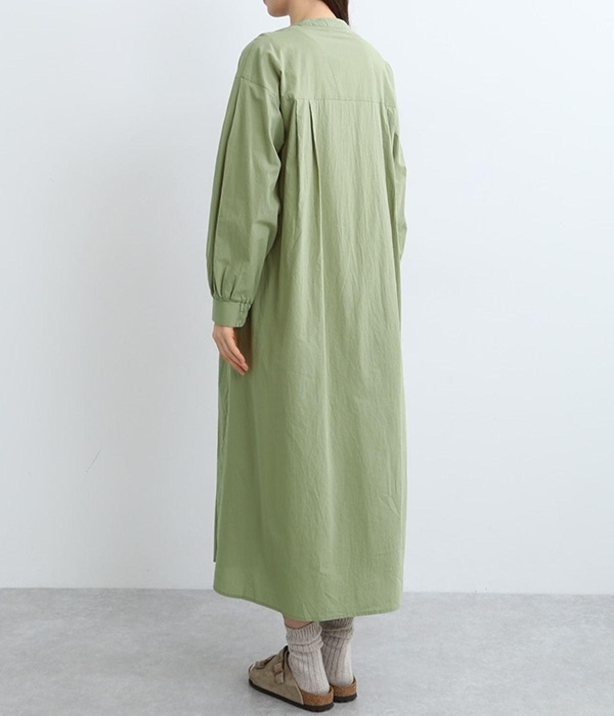 サンドウォッシュ加工という特殊な洗い加工を施した、細やかな凹凸のあるコットン生地を使用。やわらかくナチュラルな素材の表情が、ニュアンスたっぷりの着こなしに仕上げてくれます。ネックの開きとタック使いが大人っぽく、抜け感のある印象に。袖口には部分的にゴムを入れているので、たくし上げたアレンジも楽しめます。ゆったりとしたシルエットで着心地がよく、羽織りものとしても着まわすことができます。