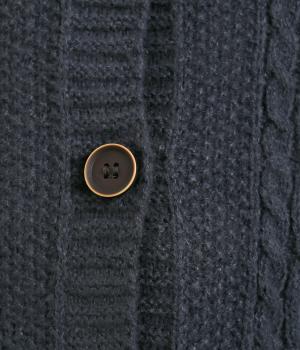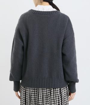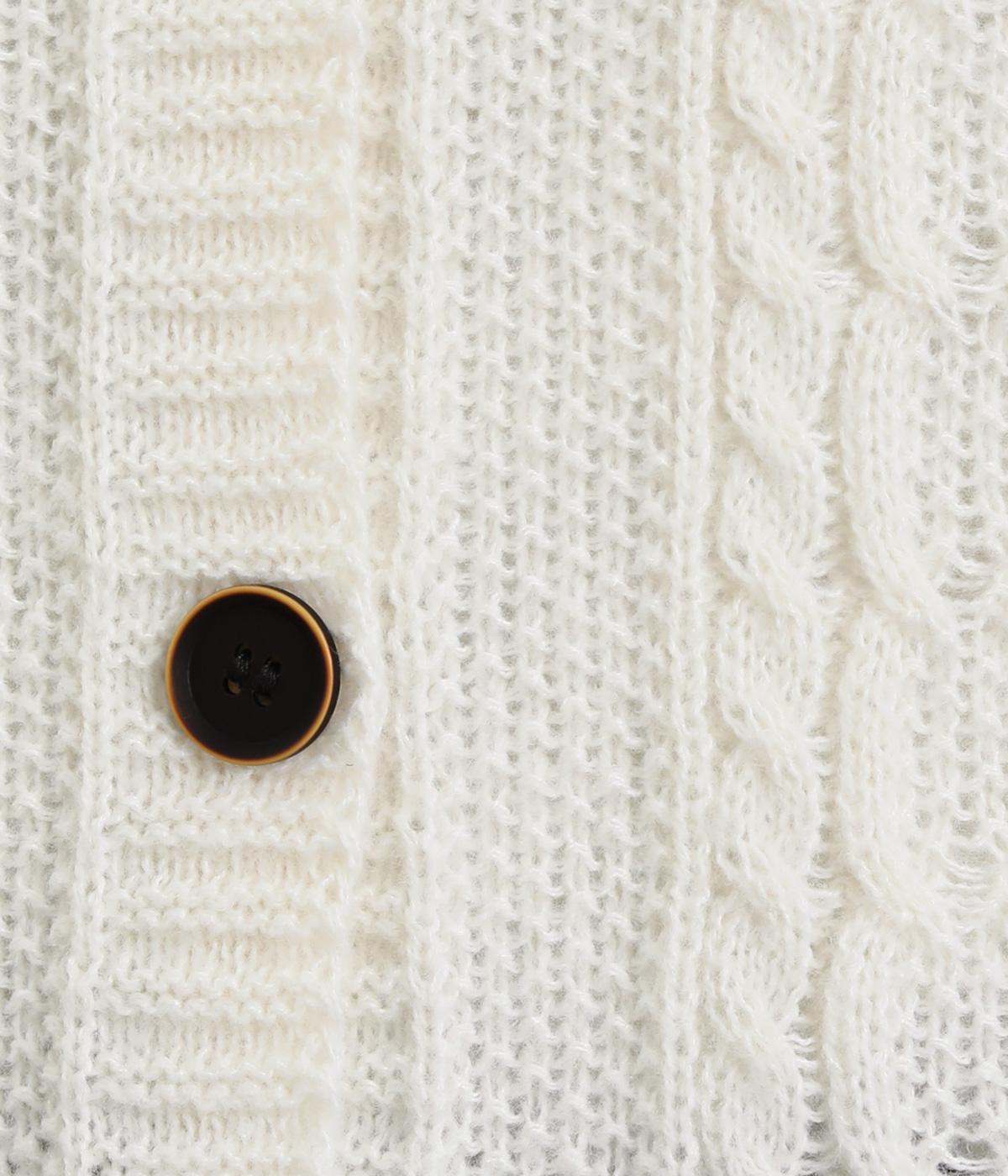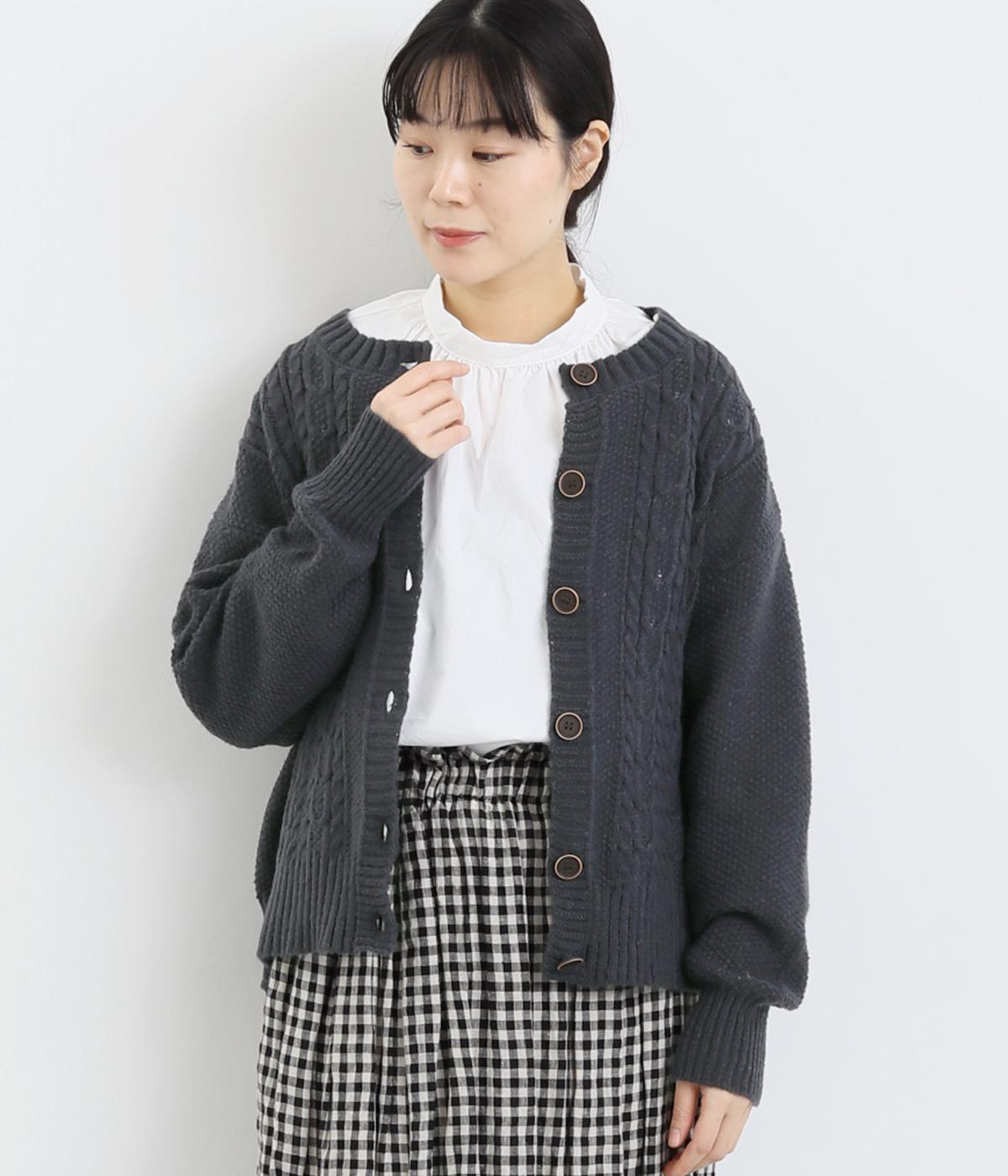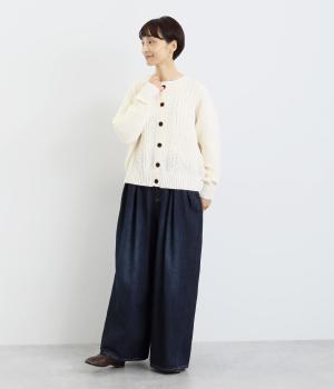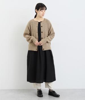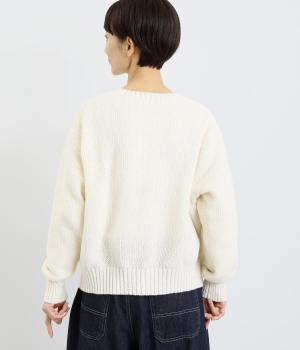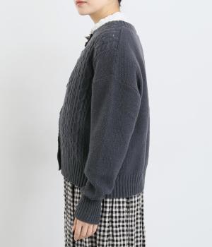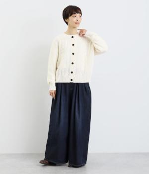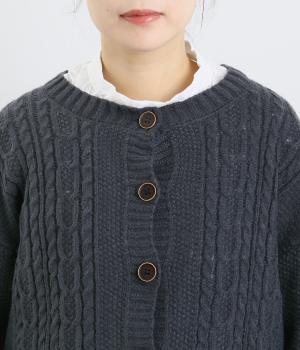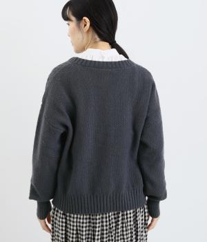 クラシカルでスイート、さまざまなスタイルに合わせやすいカーディガンです。ネックラインにはほどよいゆとりがあり、インナーとの重ね着が楽しめるデザイン。ドロップショルダーで着心地がよく、インナーを選ばないのもうれしいポイントです。