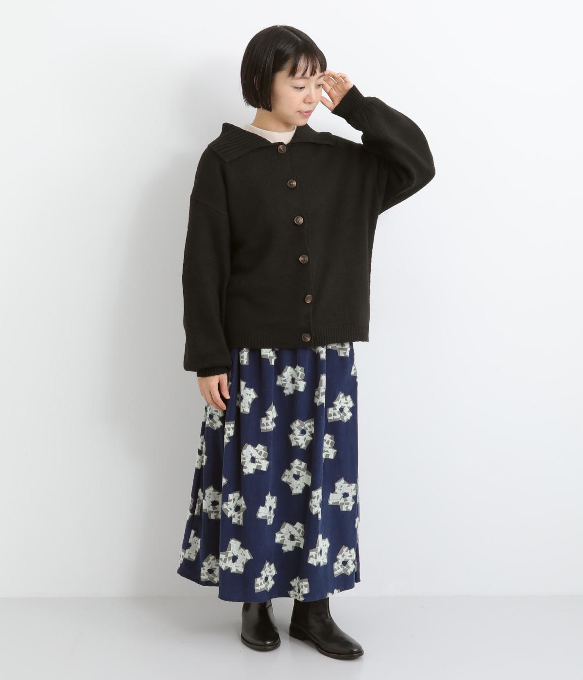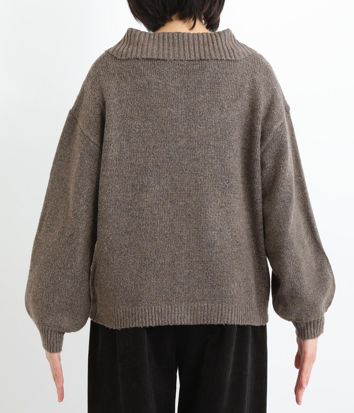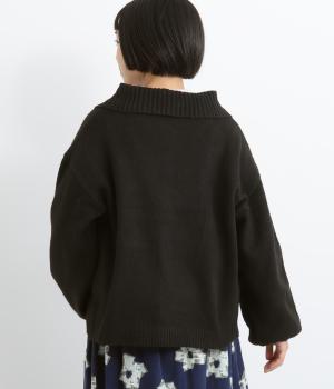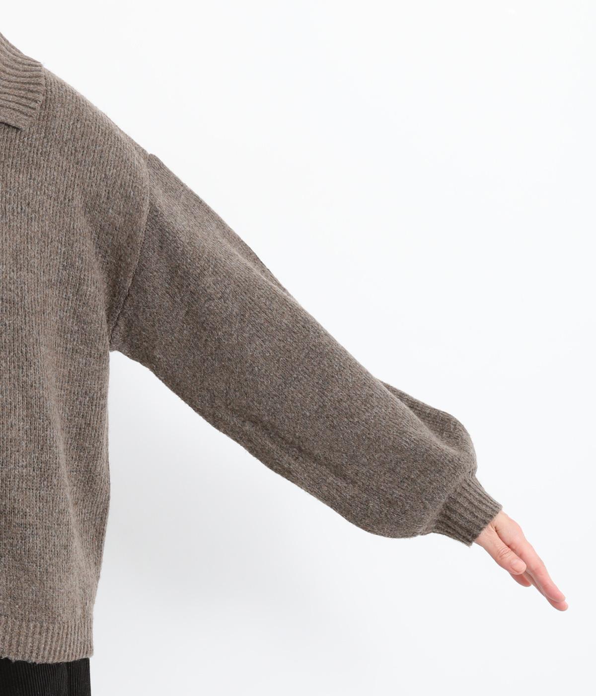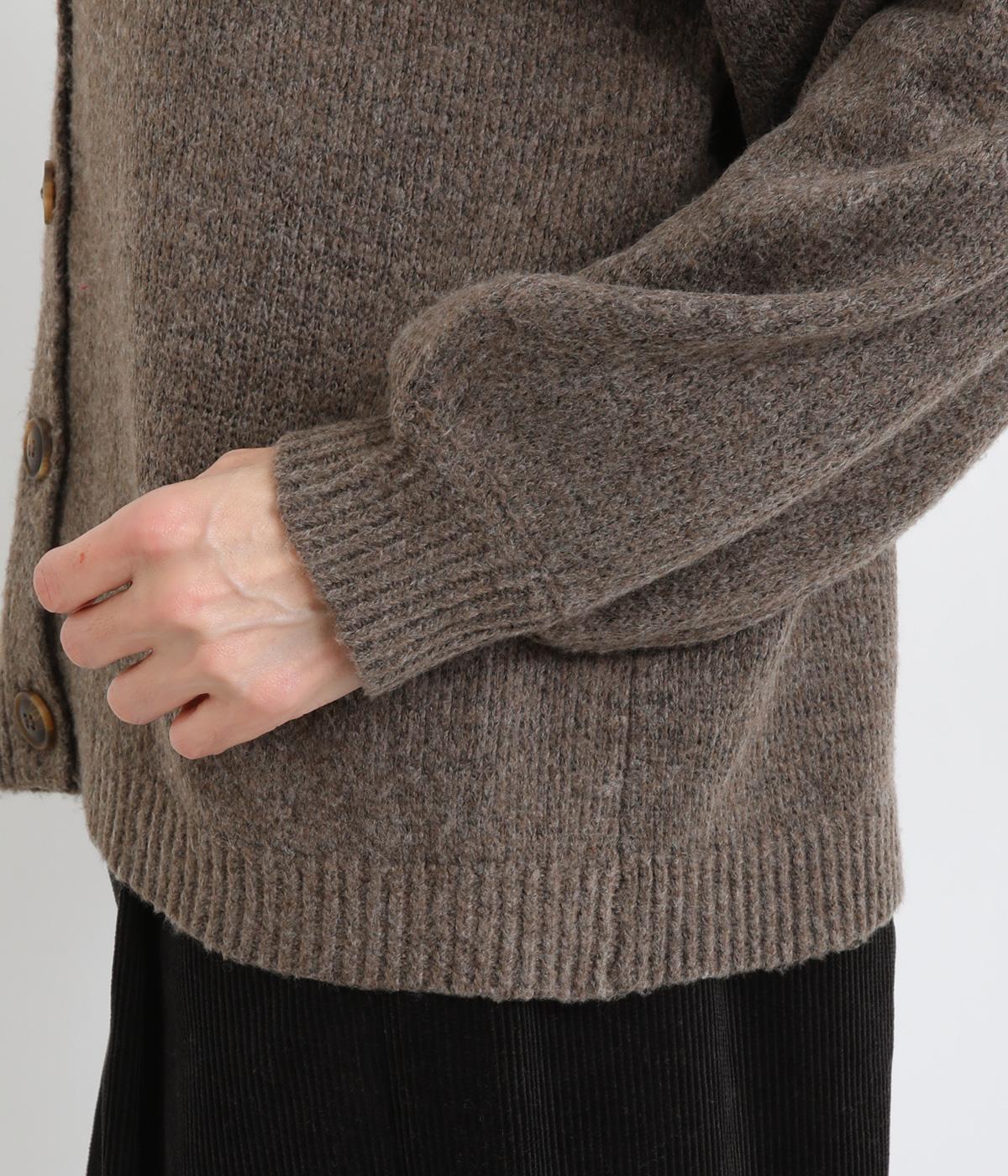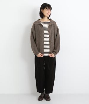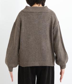 すっきりとした品のいい編み模様に襟つきで大人仕様に仕上げたカーディガン。自然とたぷっとなる袖口が可愛らしいニュアンスを生み、ボタンを留めてトップス感覚でメイン使いにするのもおすすめ。大きめのボタンもワンポイントに。