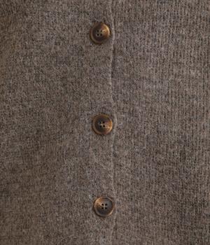 廃棄されたペットボトルをリユースした、エコなニットを使用しています。とてもやわらかで伸びが良く、ポリエステル製の軽やかな作りで羽織りやすくなっています。