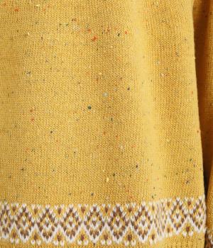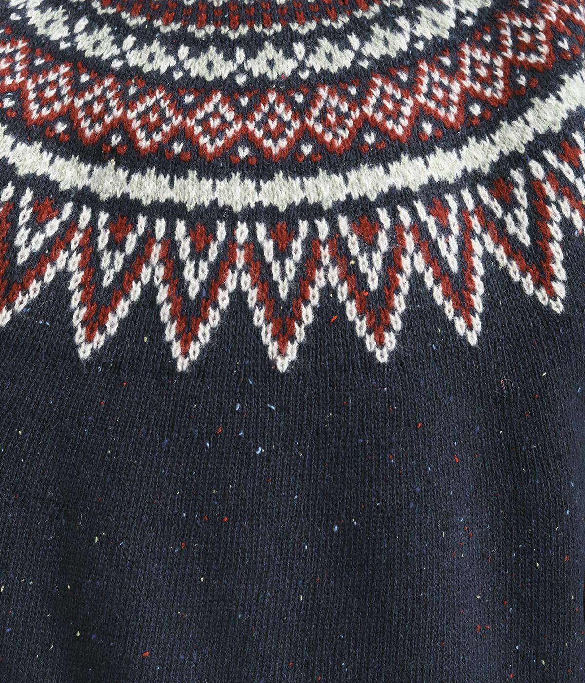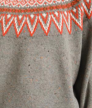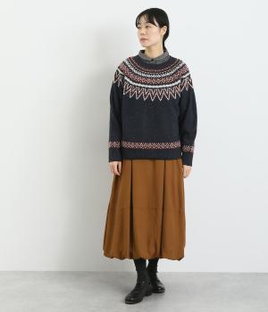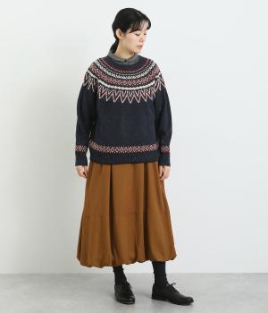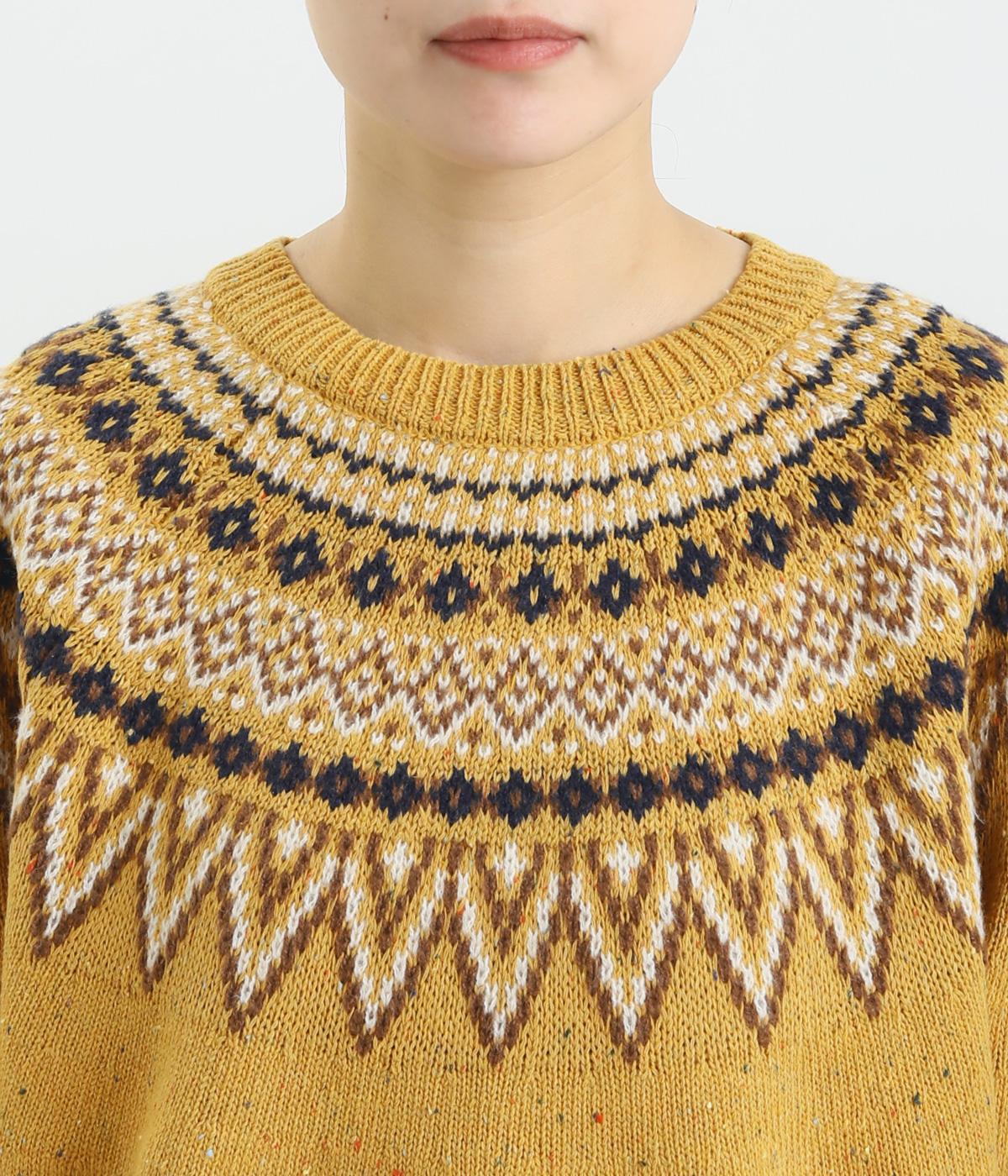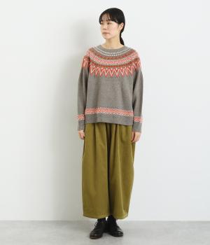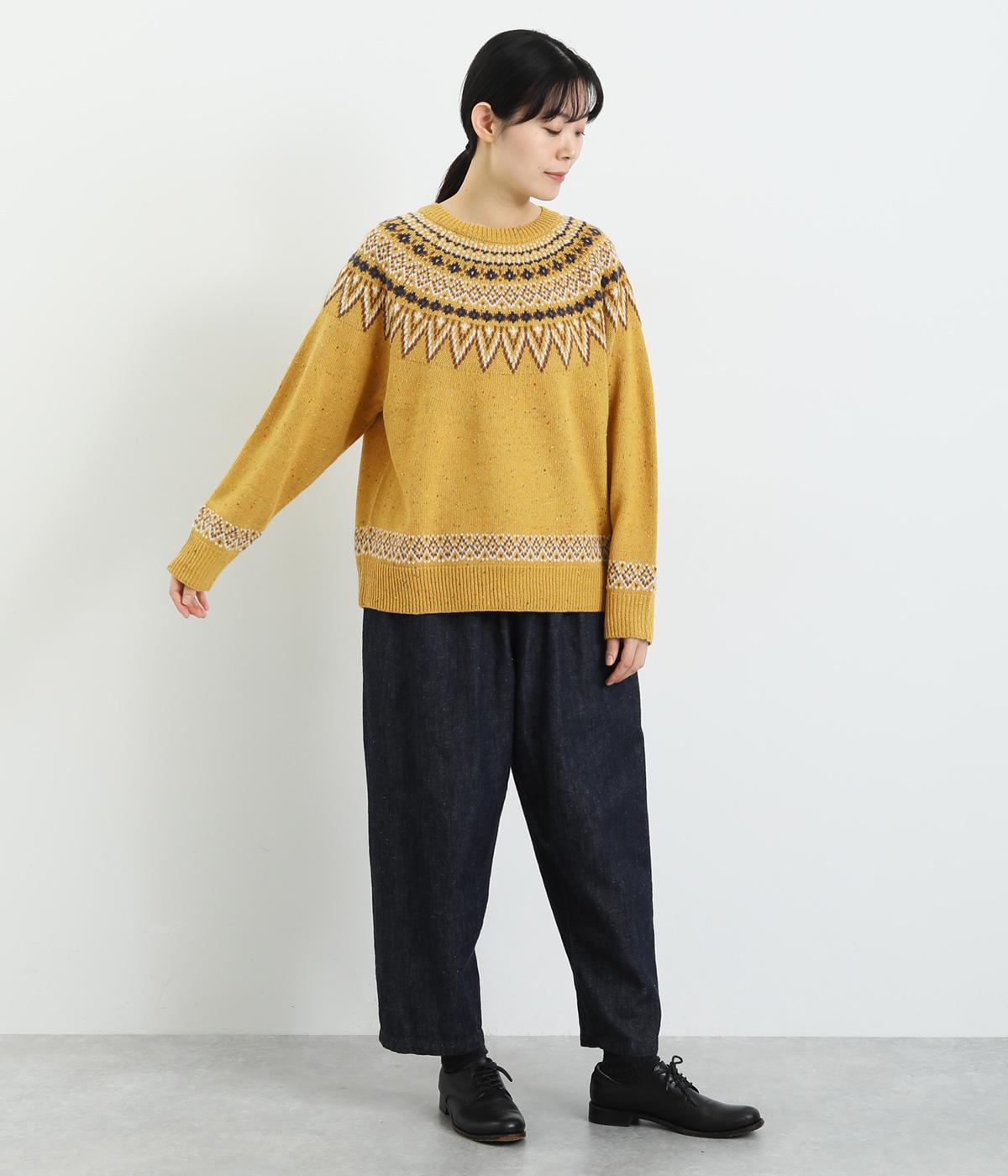 粒々としたネップ入りのニュアンスたっぷりのニット。ところどころに出ている色みがかわいらしく、編み柄のパターンともマッチしています。軽くやわらかなウール混素材で、デイリー使いにおすすめ。