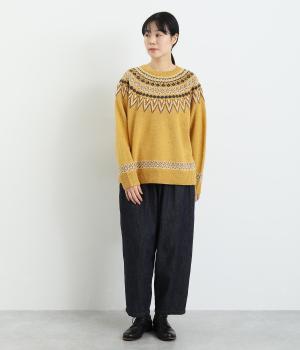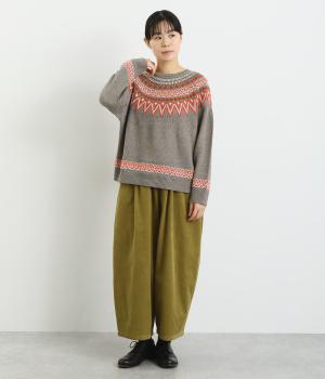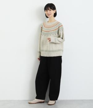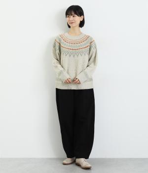 リラックス感がありながらも品よく着こなせるプルオーバー。かわいらしい柄のパターンとネップが遊び心を添えています。ややゆとりのあるシルエットで着心地のよさも抜群。カジュアルにもきれいめにも着こなせる一着です。