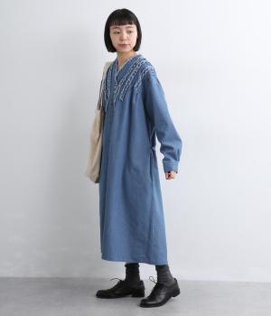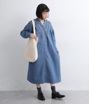 デニム特有の風合いを残しつつ、やわらかく仕上げたコットン混素材です。ハリがありながらも動きやすく、快適な着心地を叶えます。ロングシーズン活躍してくれる、便利な生地感です。