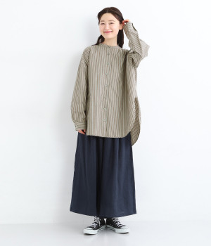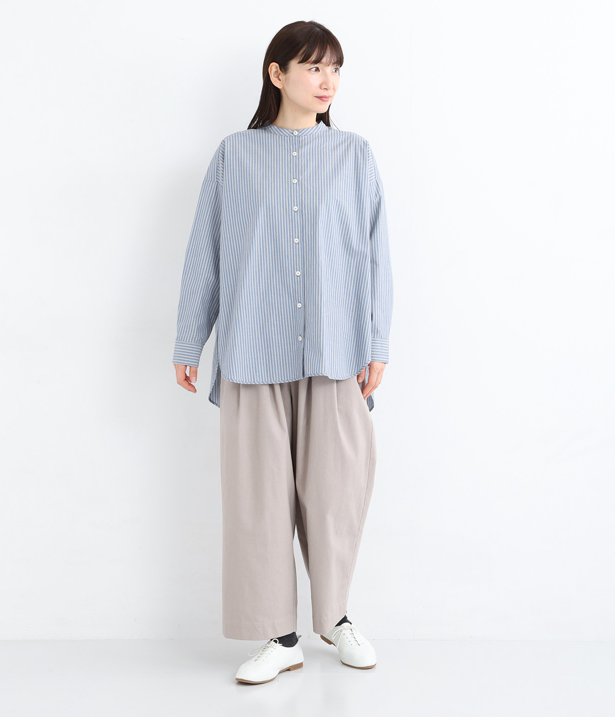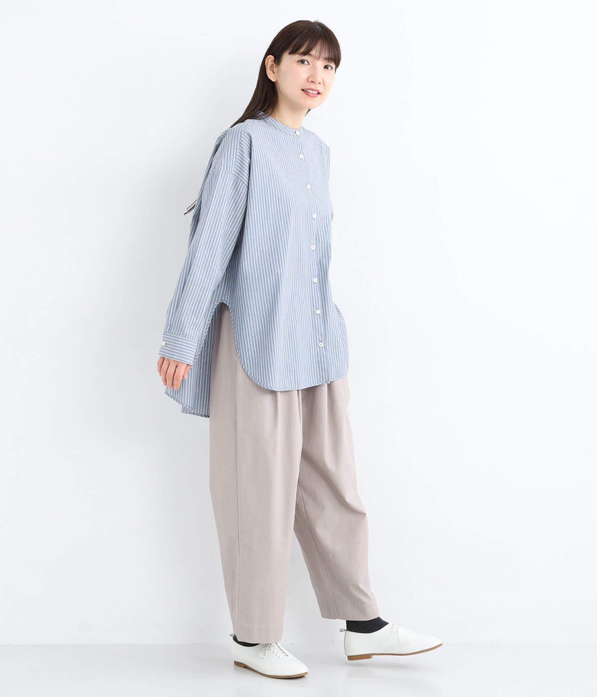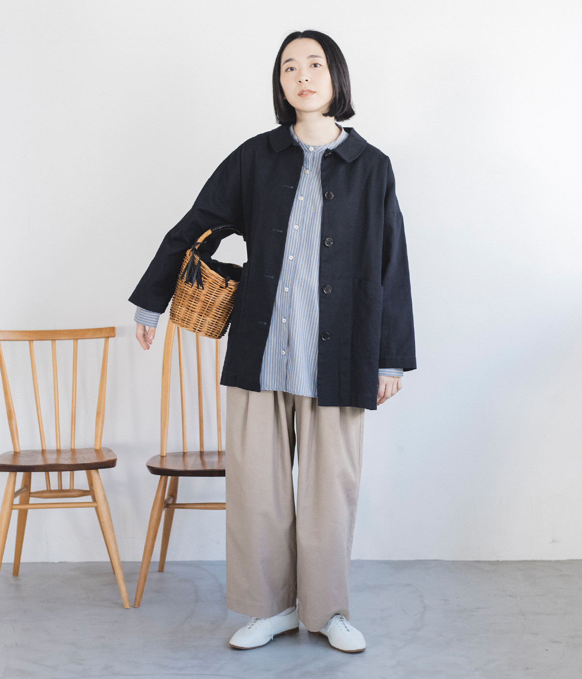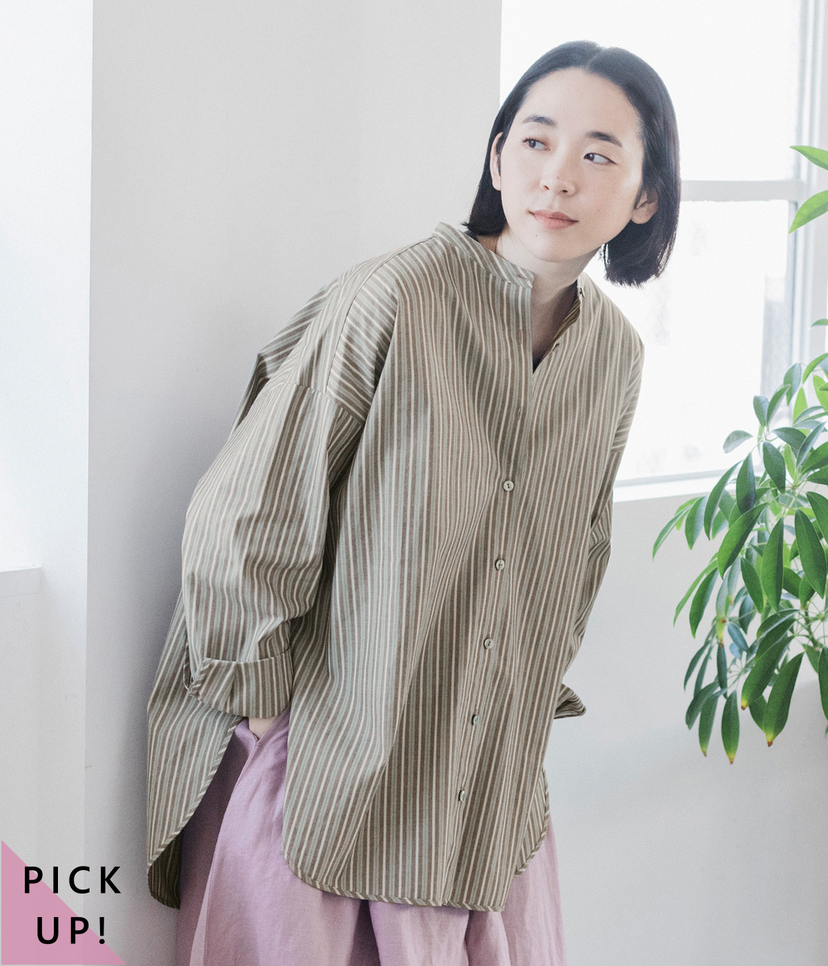 ほどよくハリがあり、きちんとした雰囲気をかもし出す素材。着こなしやすい軽めの風合いはデイリーにサッと合わせられるので重宝します。配色ストライプのさわやかな雰囲気も◎。