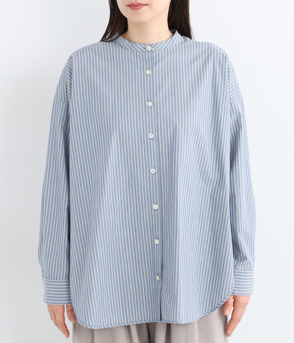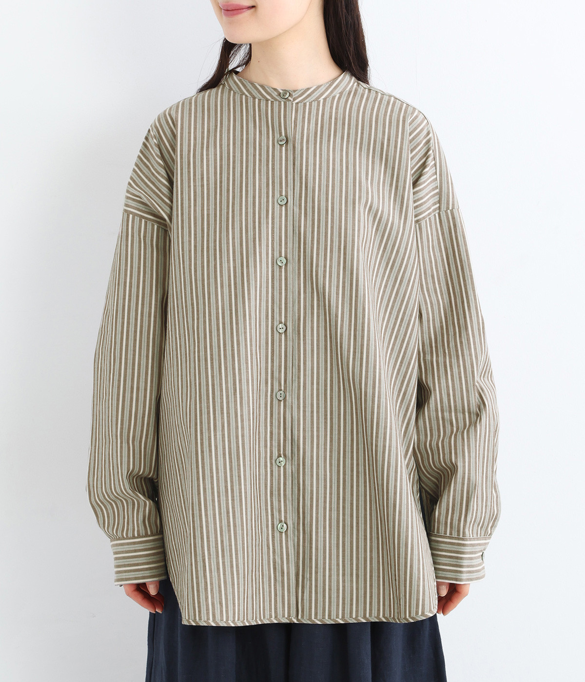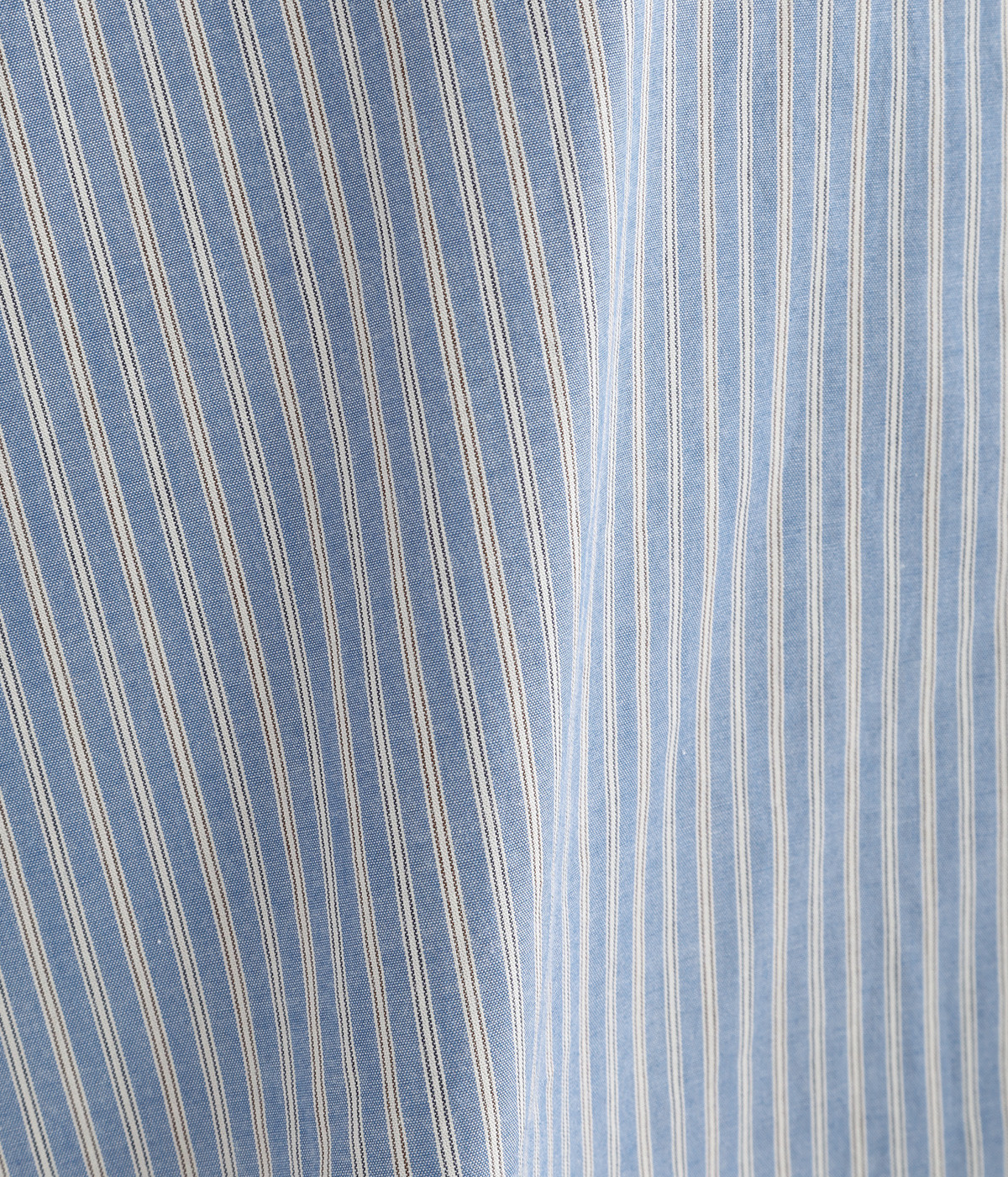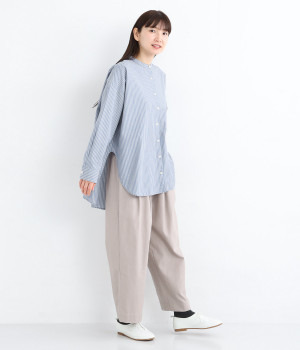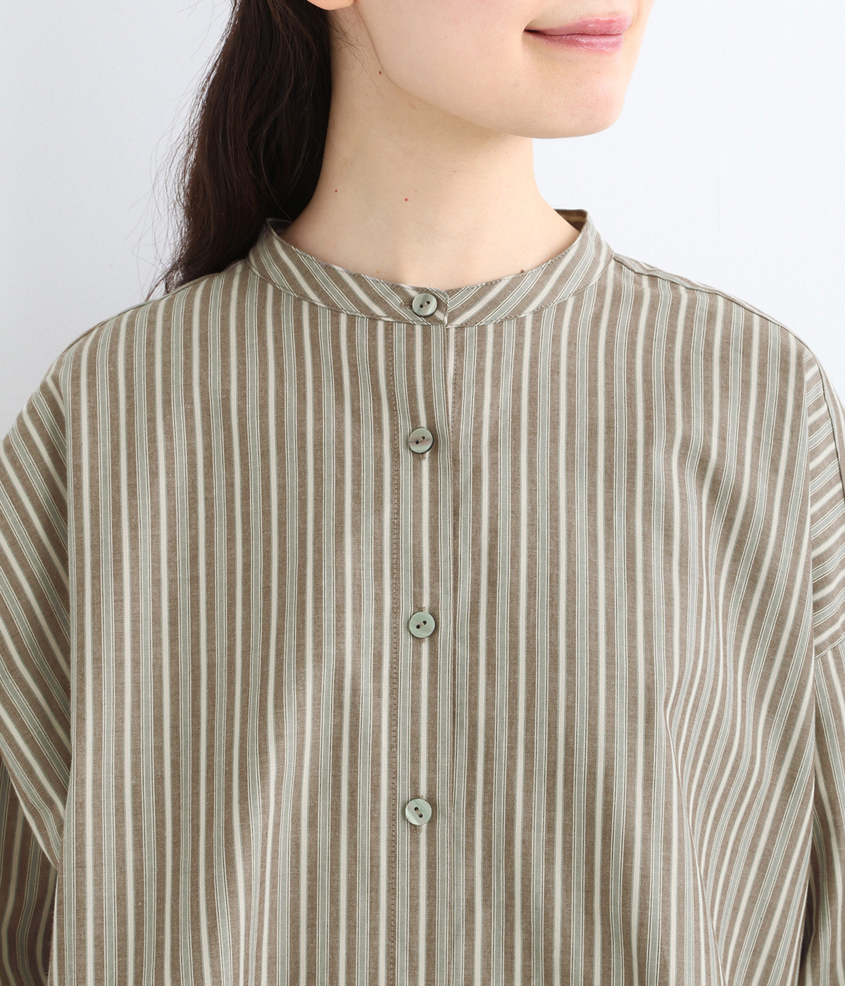 ほどよくハリがあり、きちんとした雰囲気をかもし出す素材。着こなしやすい軽めの風合いはデイリーにサッと合わせられるので重宝します。配色ストライプのさわやかな雰囲気も◎。