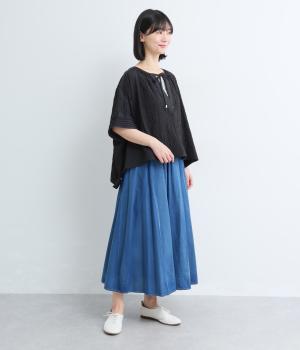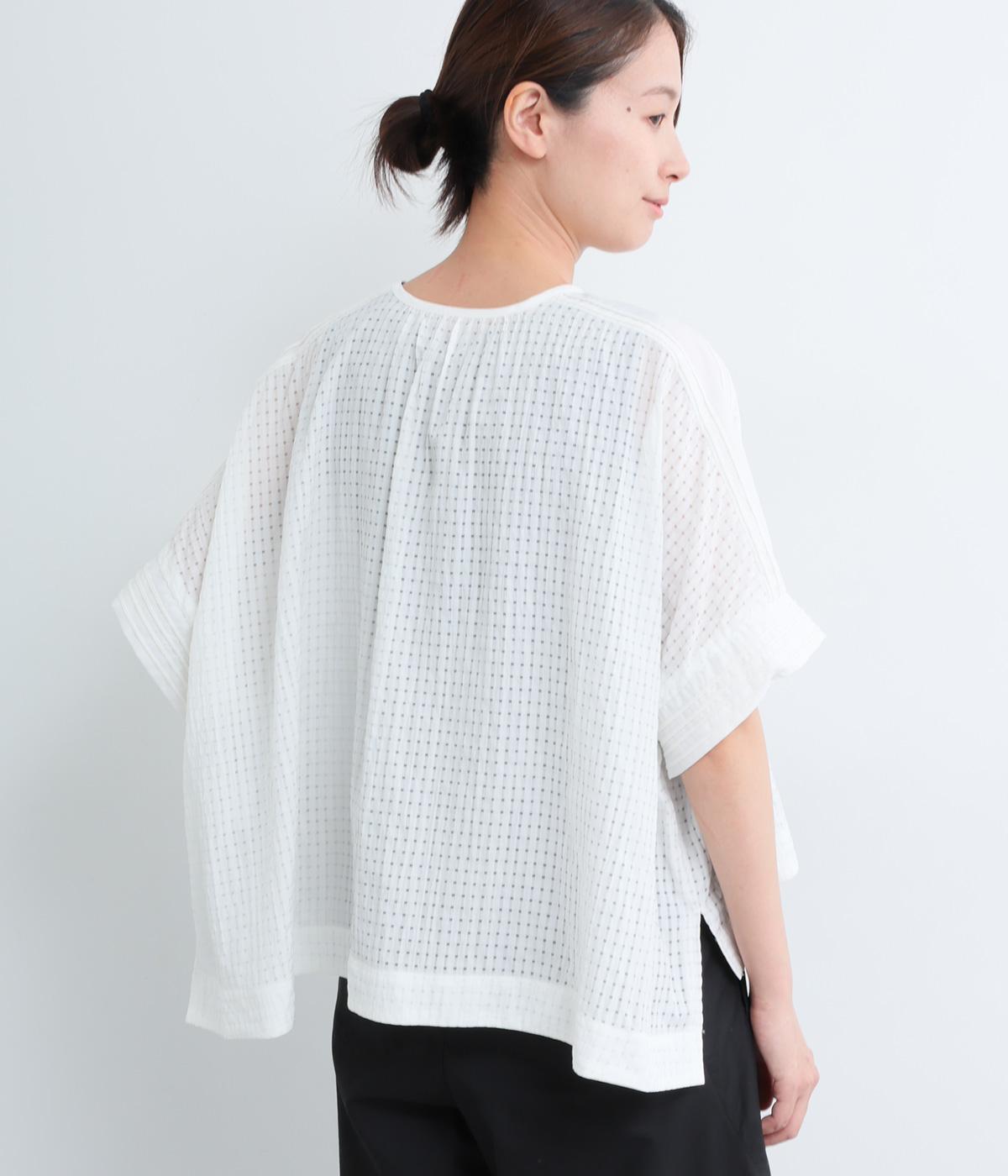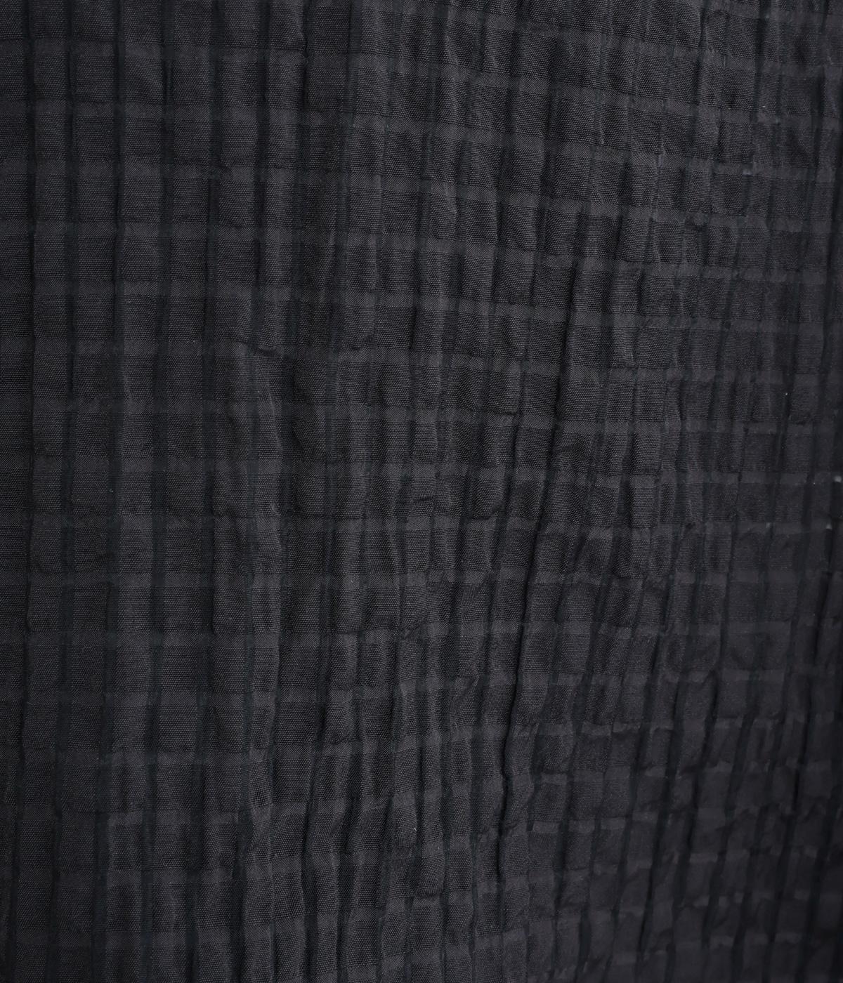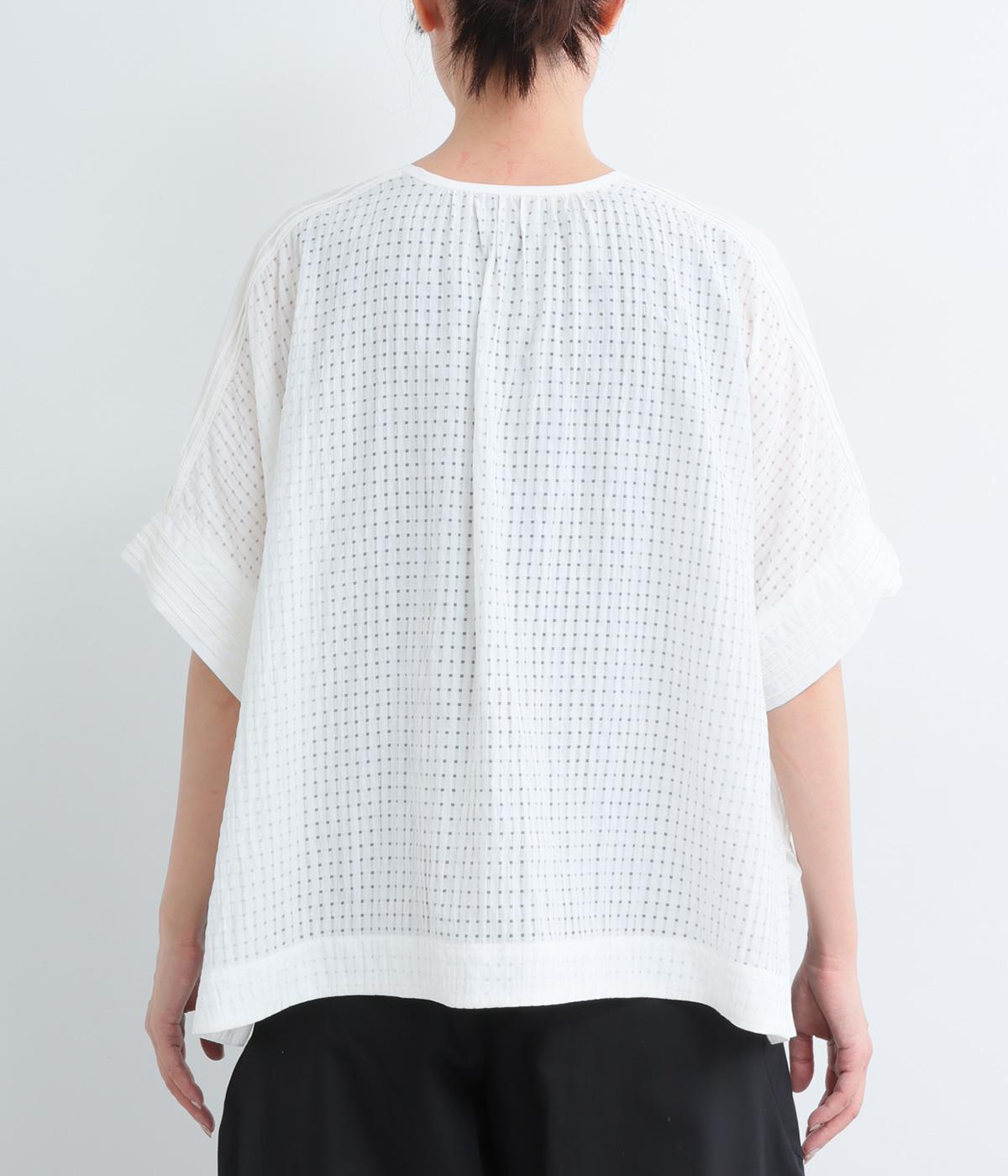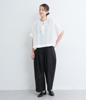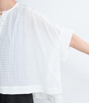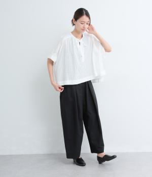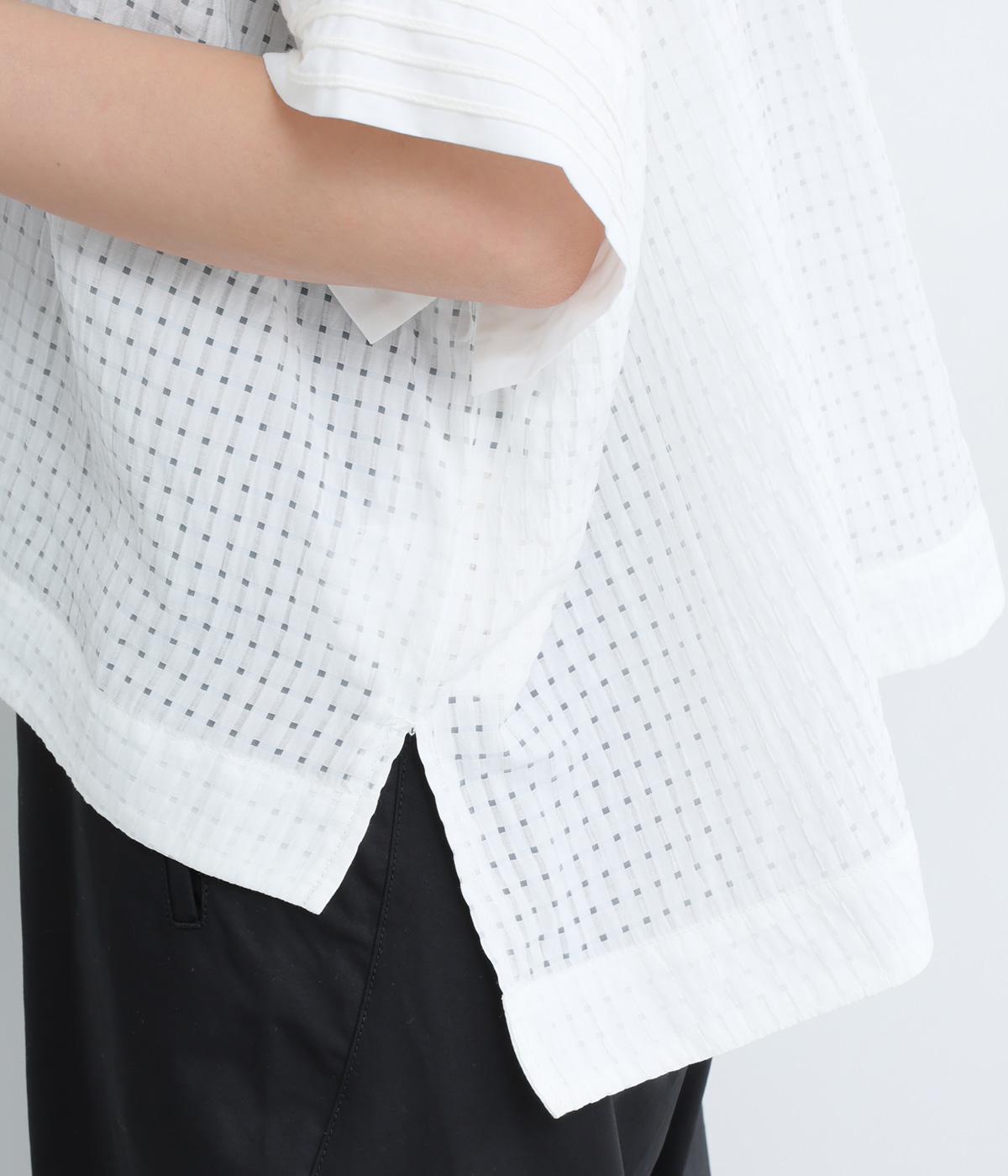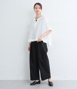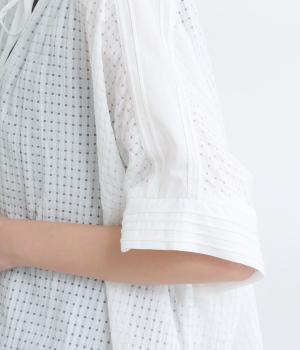 通気性の良さやなめらかな質感をもったポリエステルレーヨンの混紡素材を採用。シアーなチェック柄が涼しげで、袖の異素材も軽やかな薄手をチョイスしました。